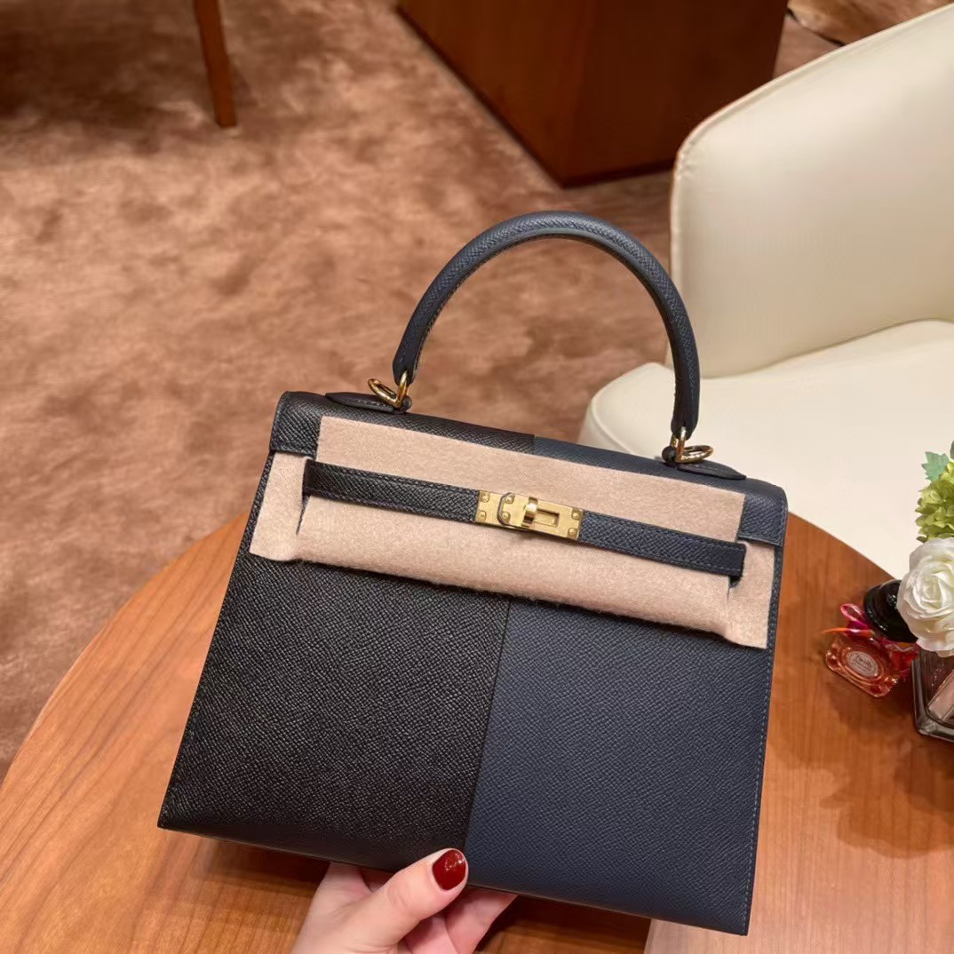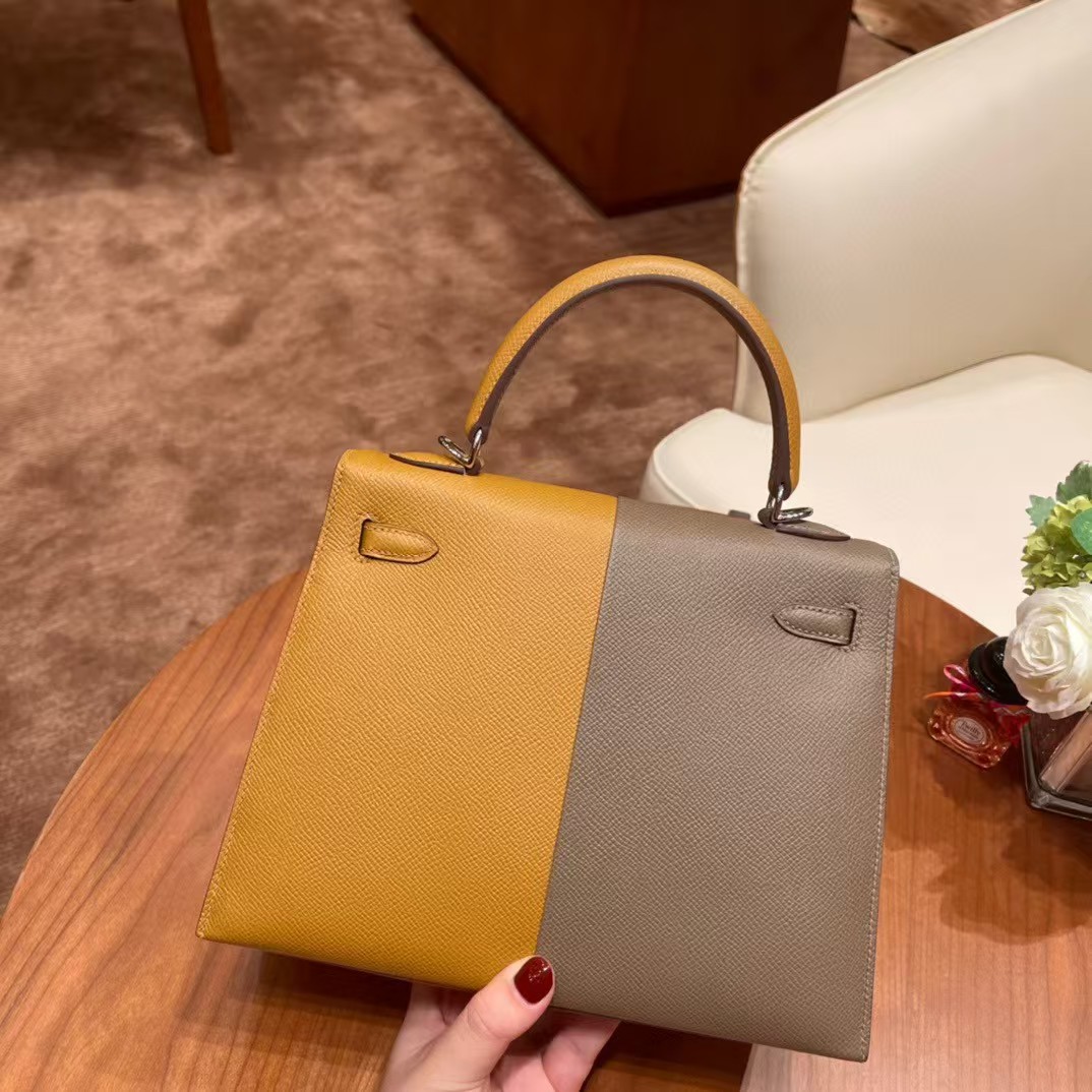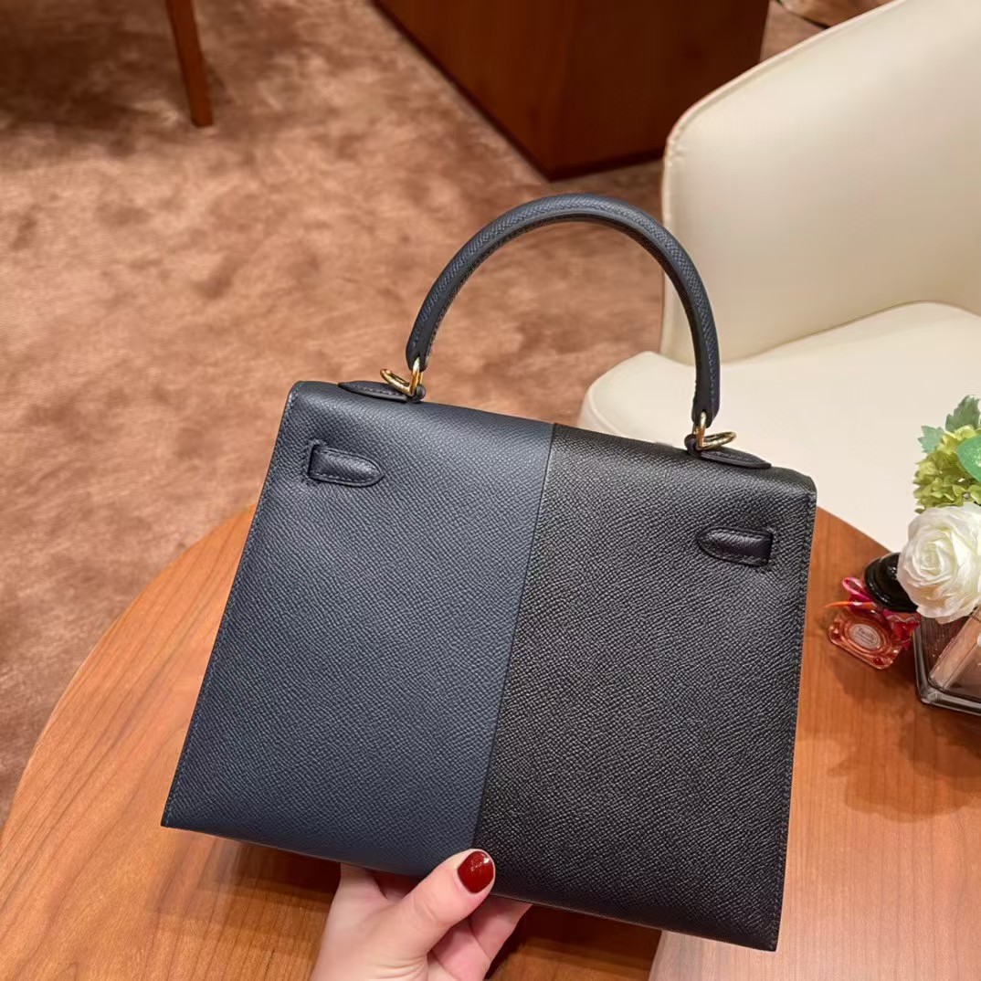 HERMES 爱马仕 手缝 Kelly 25cm 进口Epsom皮 限量款左右双拼