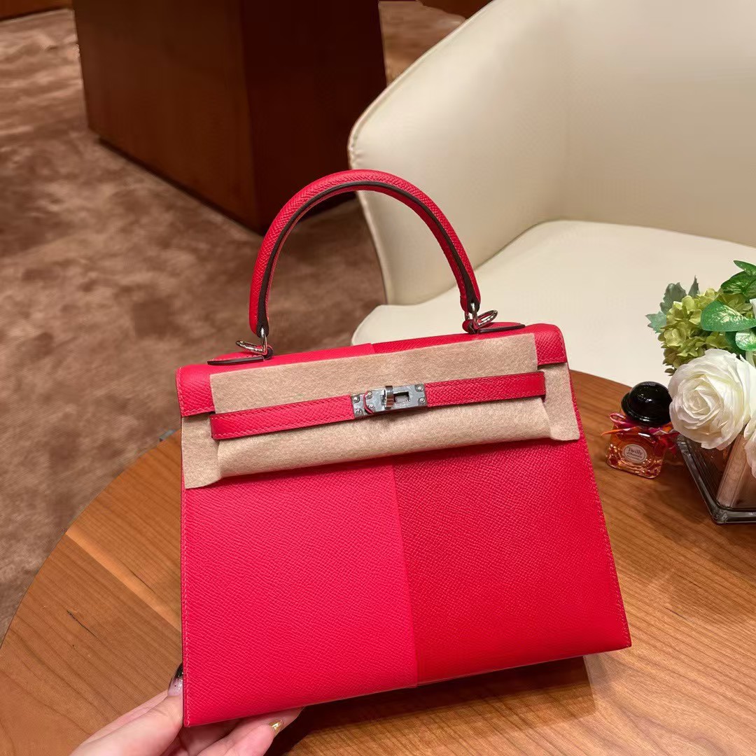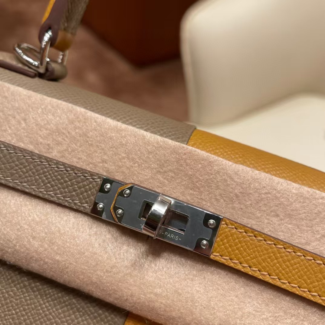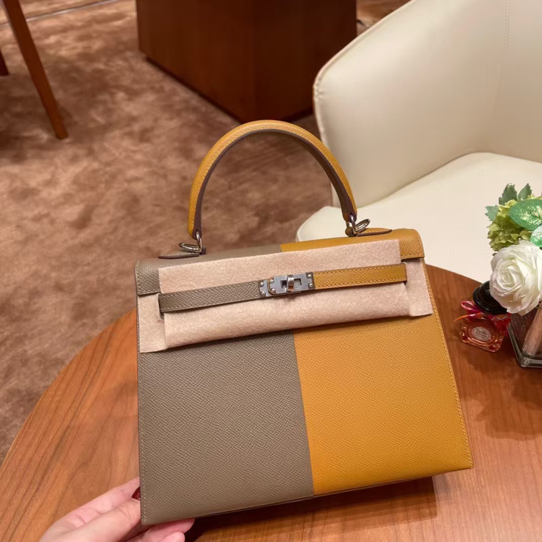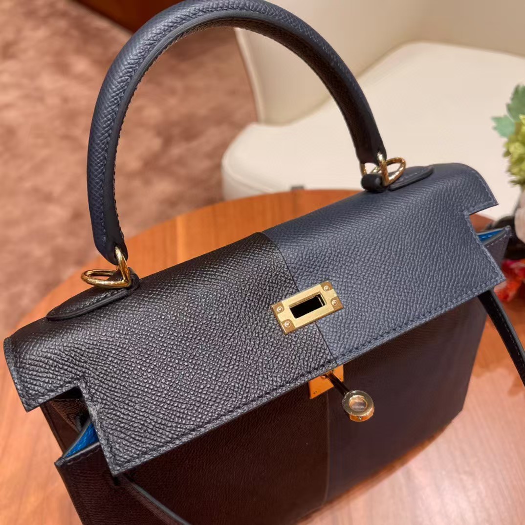 HERMES 爱马仕 手缝 Kelly 25cm 进口Epsom皮 限量款左右双拼
