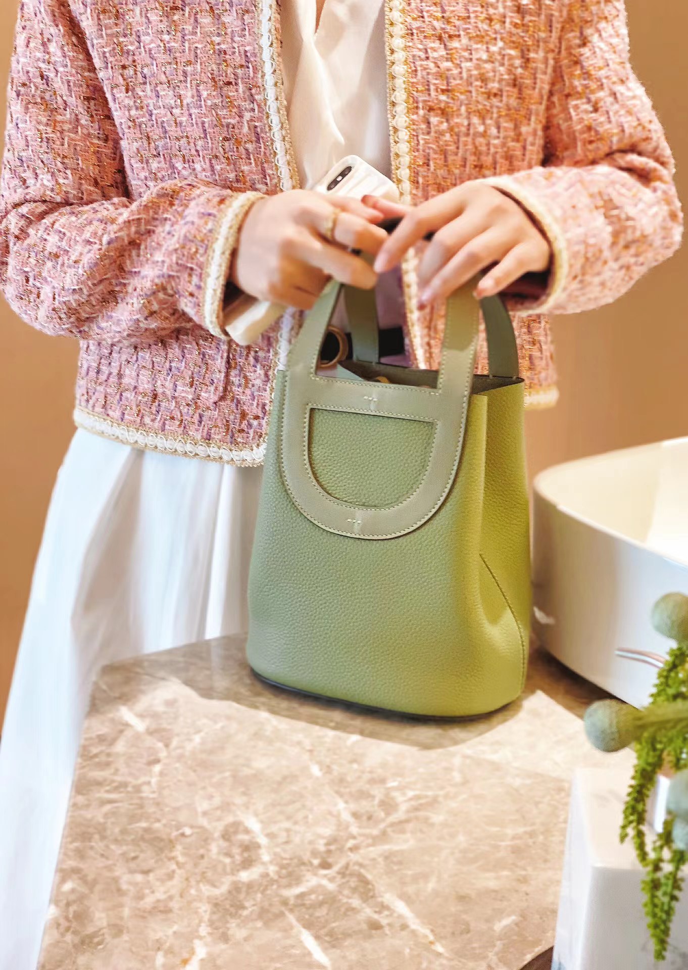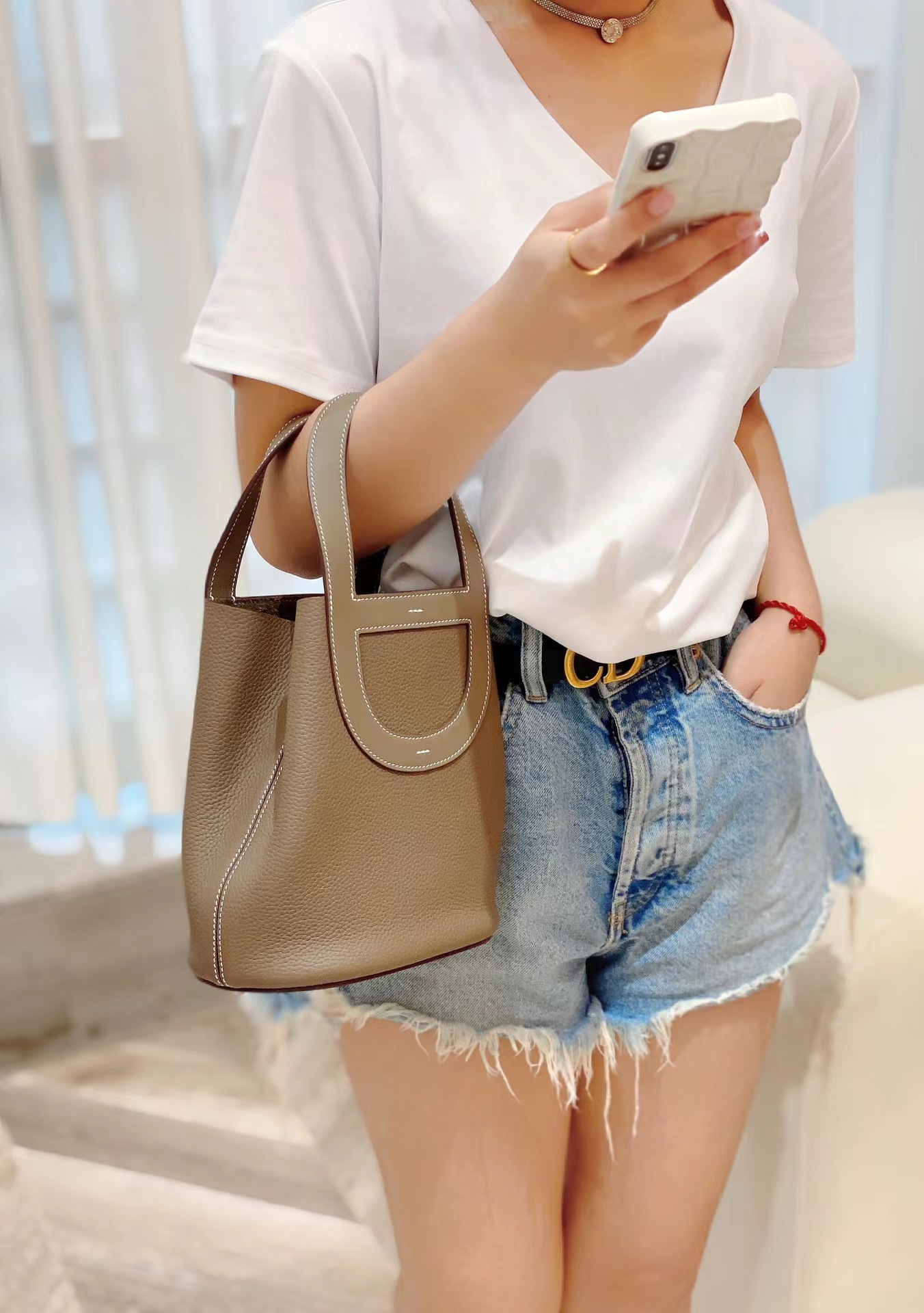 收到包包就打开包装,全方位拍照看看有没有瑕疵,品相完美,感谢!