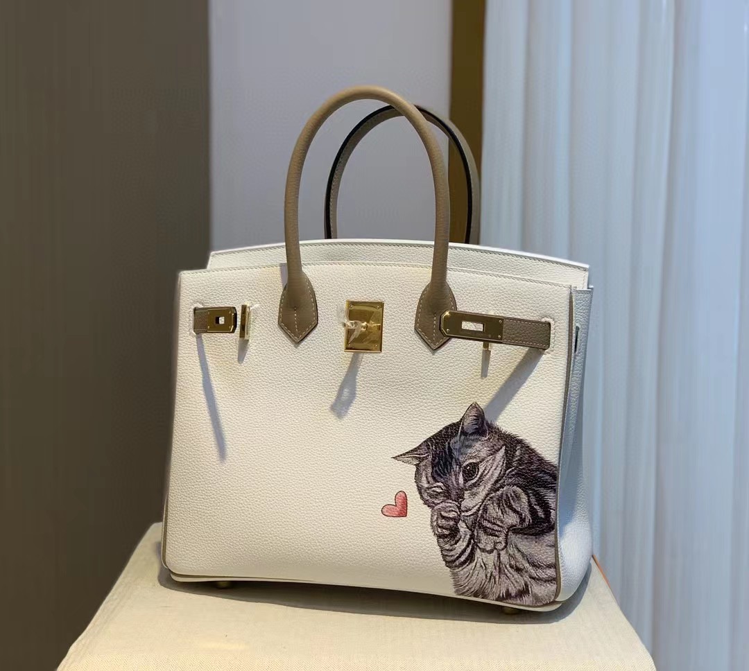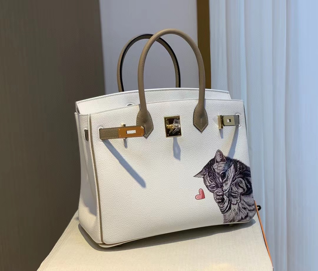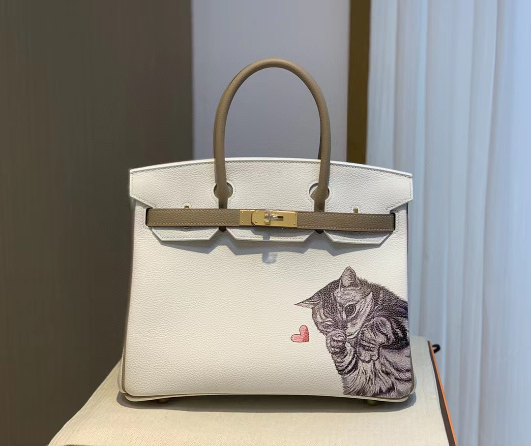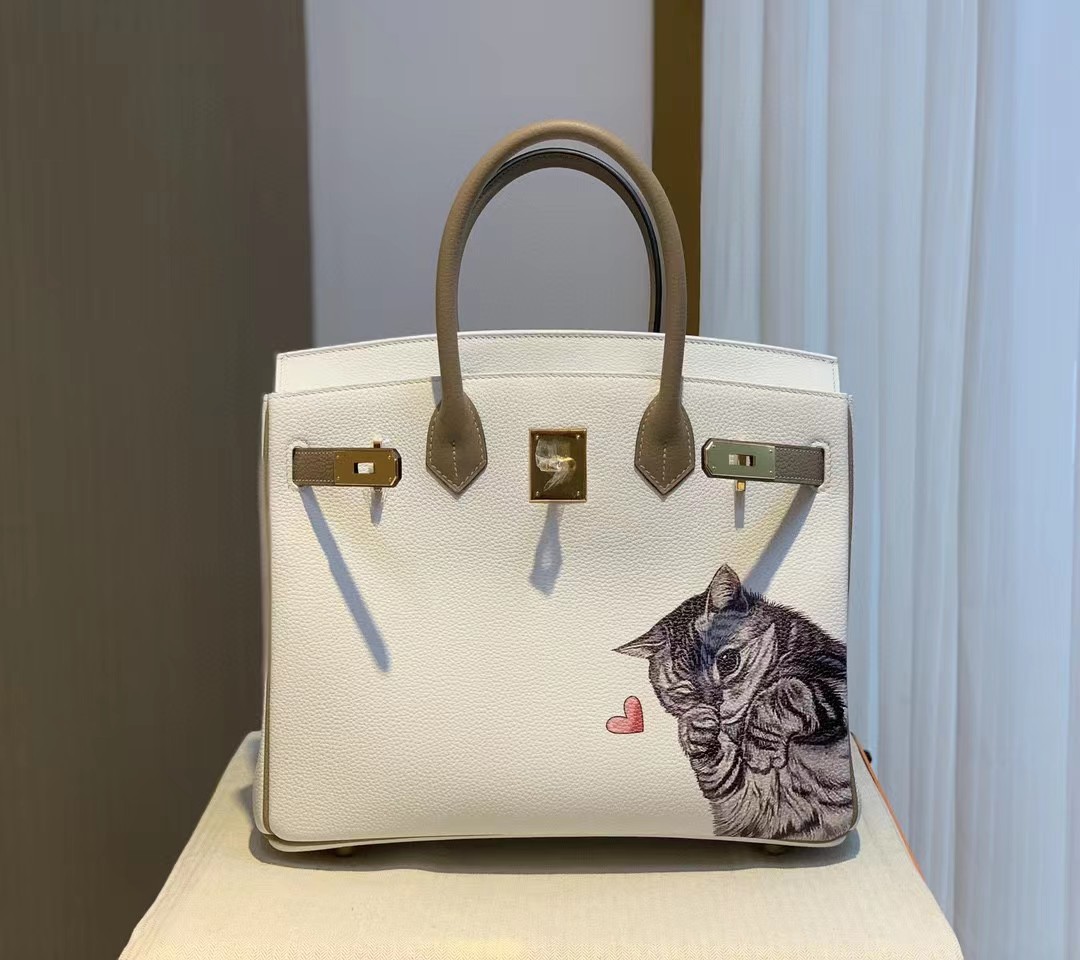 HERMES 爱马仕 开年预订款 纯手工 Birkin 30 /25白雪公主拼大象灰togo皮印花款.尺寸:小号25CM 大号30CM