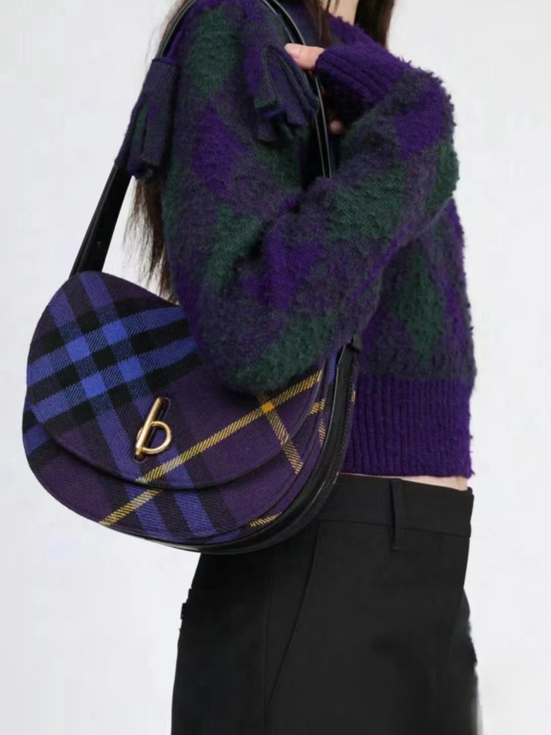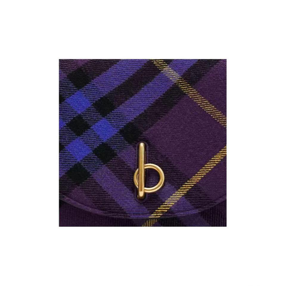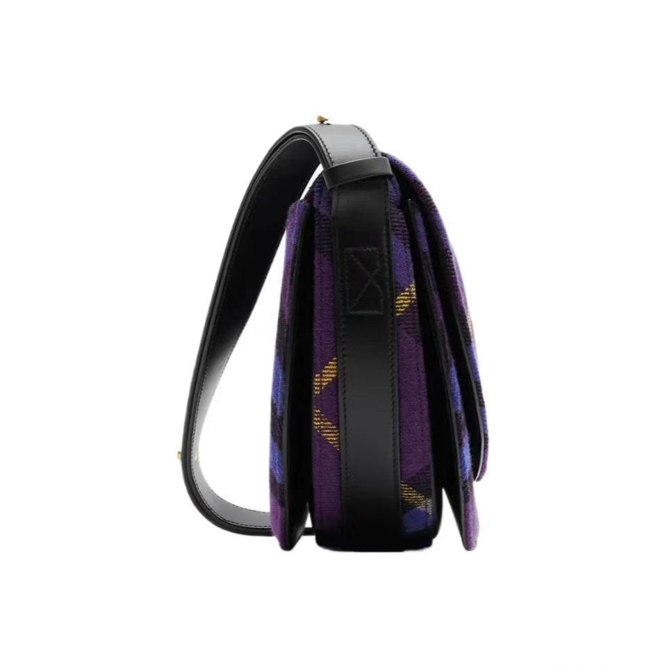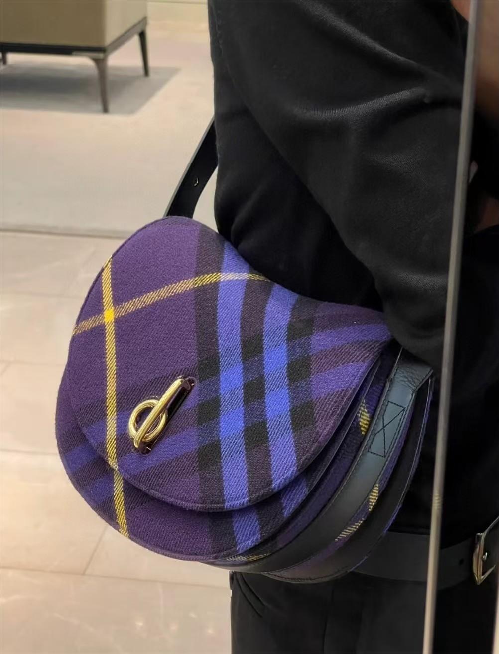 【介绍】 海外原单 新款上架!Bur精纺格纹毛立挺包款,于意大利工坊精制而成,弧形轮廓的设计灵感来自童年摇摆木马,翻盖开合设有 b 字型配件。设有皮革肩背带,可调节切换肩背包和斜背包造型。可调式皮革肩背带,顶部翻盖设有 b 字型开合,内插袋;外插袋