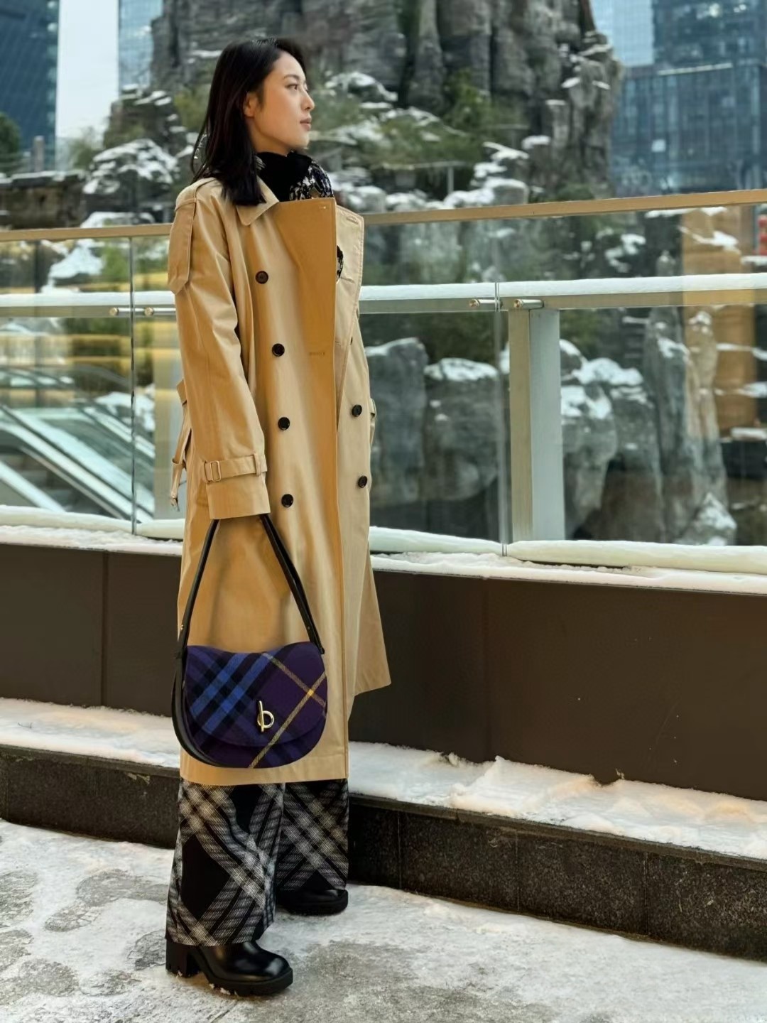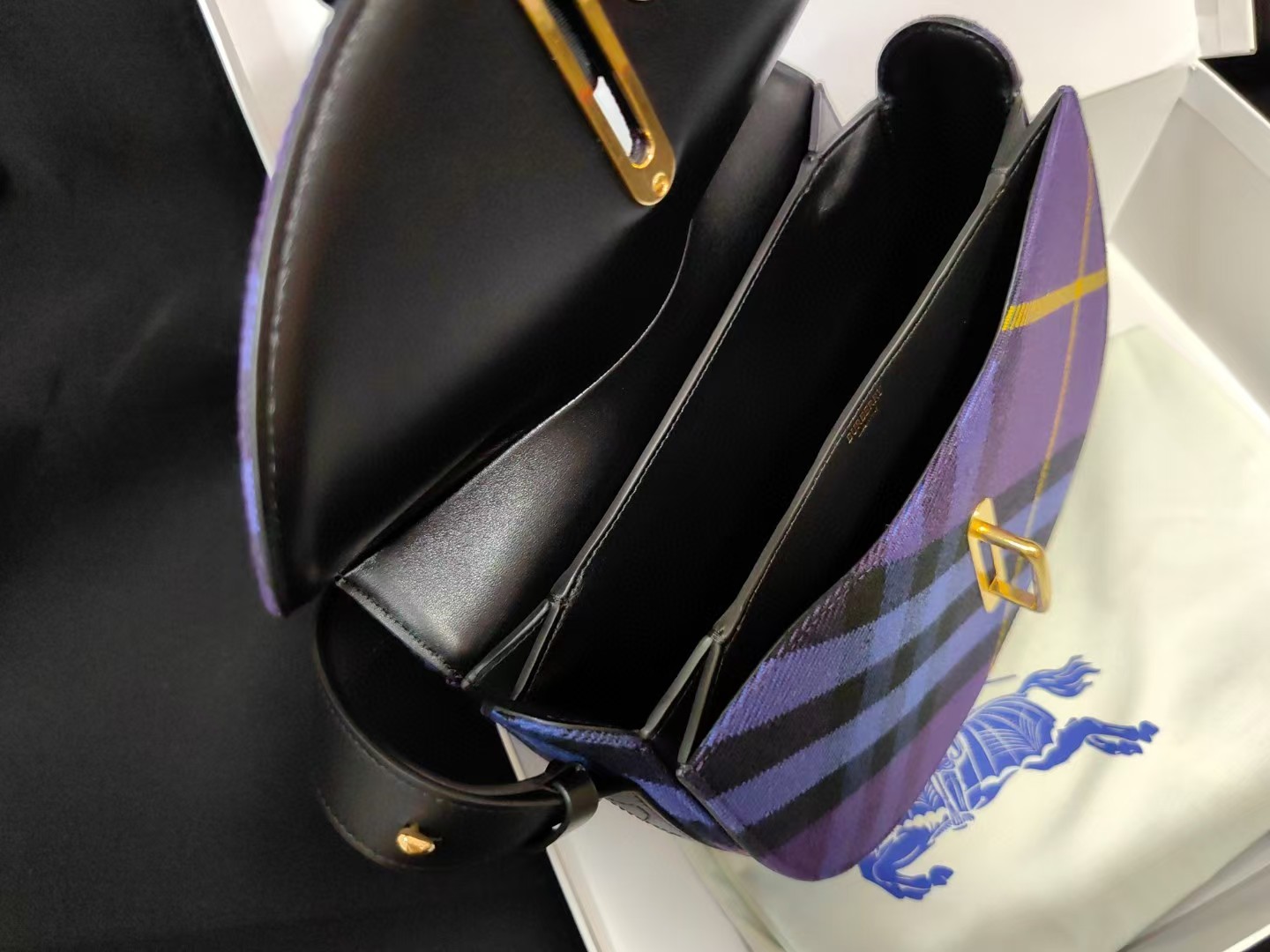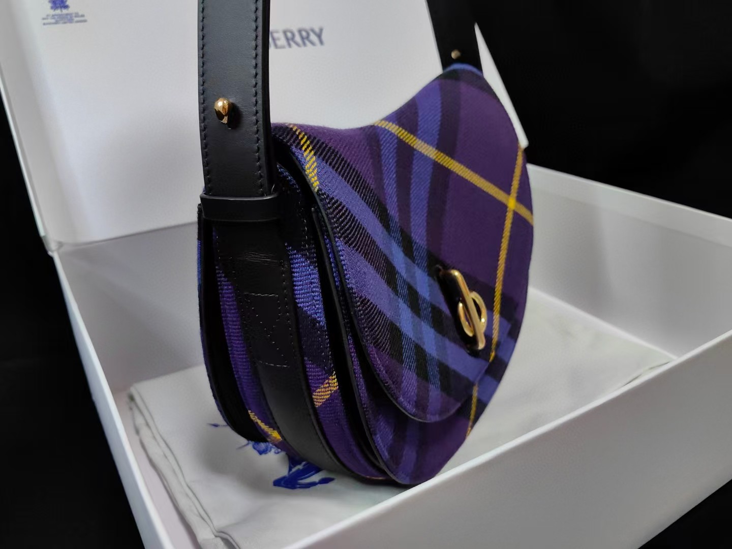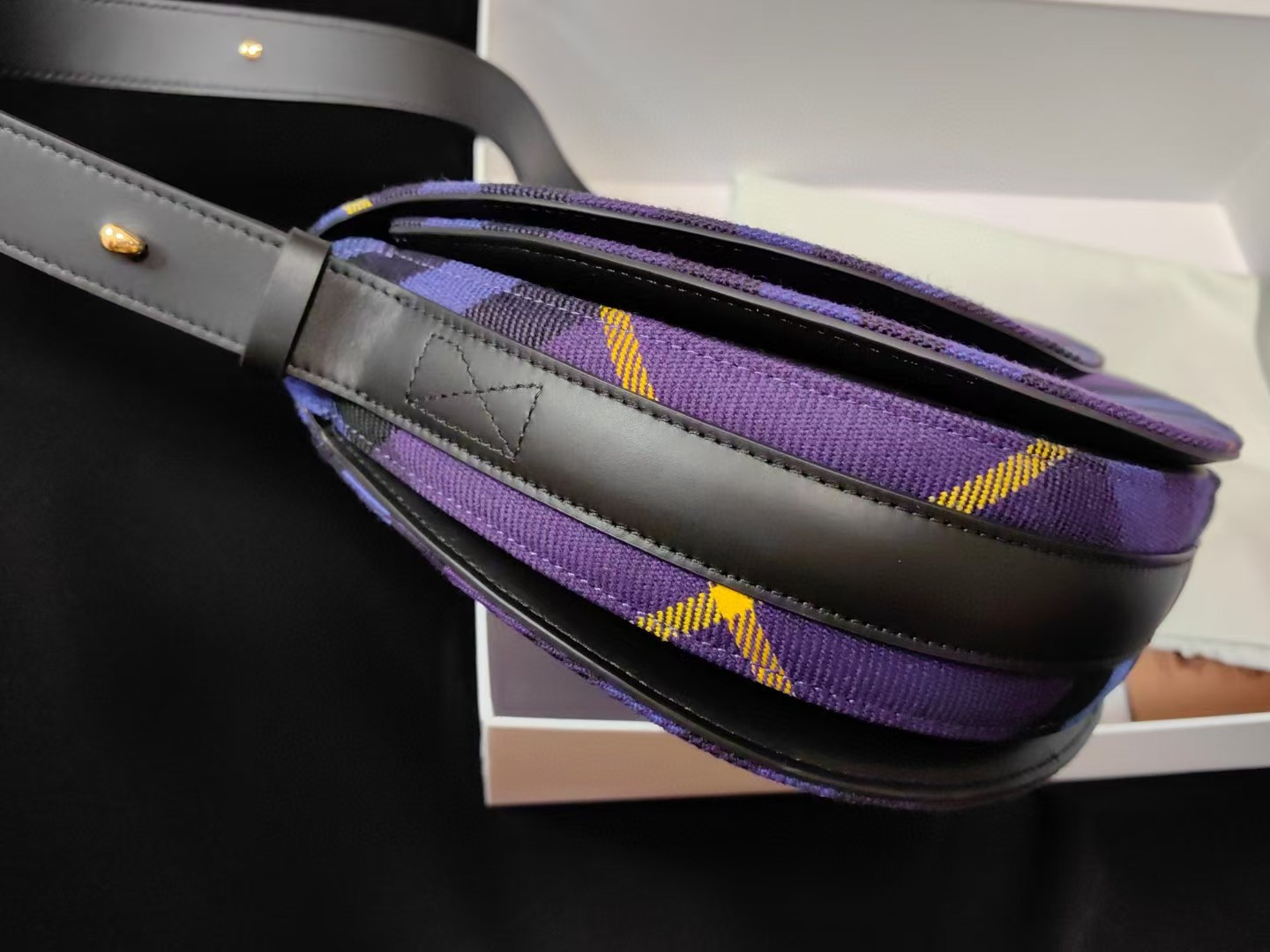 【介绍】 海外原单 新款上架!Bur精纺格纹毛立挺包款,于意大利工坊精制而成,弧形轮廓的设计灵感来自童年摇摆木马,翻盖开合设有 b 字型配件。设有皮革肩背带,可调节切换肩背包和斜背包造型。可调式皮革肩背带,顶部翻盖设有 b 字型开合,内插袋;外插袋