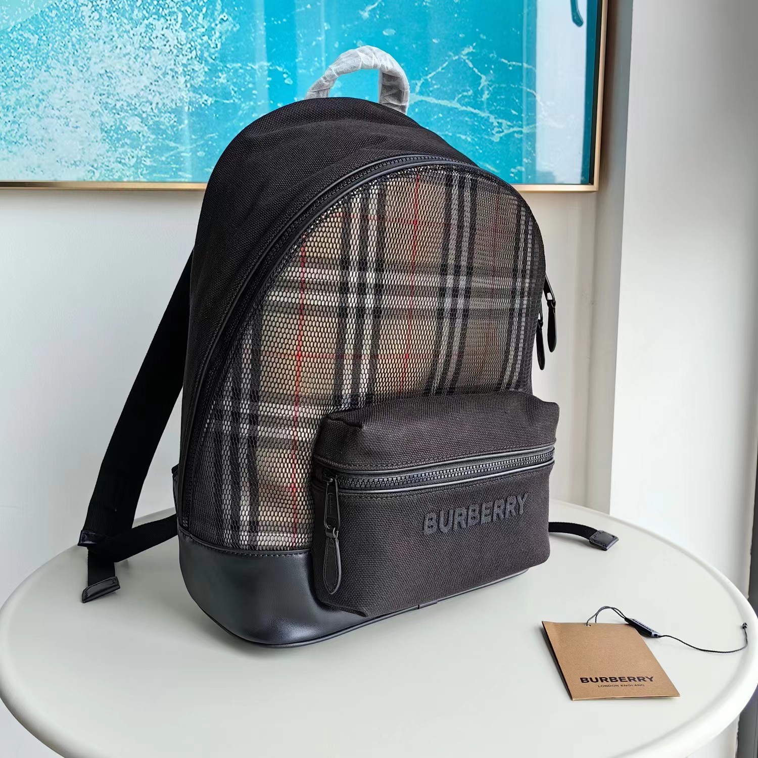 精选 Burberry 格纹棉质面料背包,搭配网眼外层,点缀同色系品牌徽标刺绣。皮革顶部提柄;可调式肩背带.1个拉链外袋;1个拉链内袋.笔记本电脑隔层.双向拉链开合.手绘涂漆边缘.光泽金属配件.后侧绗缝裁片.正面绣有 Burberry 字母徽标。型号:80660971 尺寸:长30 ~高42~ 宽15cm