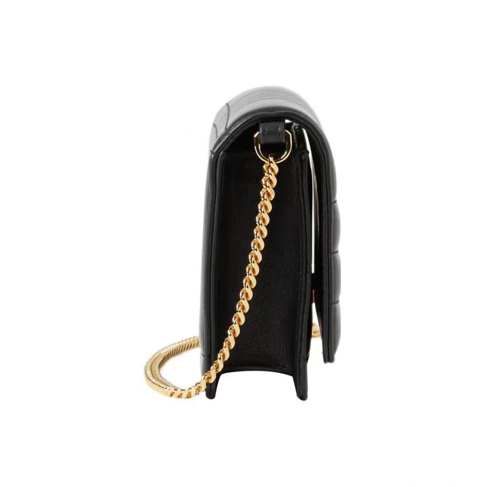 B家绗缝羊皮皮革Lola 萝拉包,设计灵感源自品牌标志性格纹,装饰TB专属标识。顶部翻盖采用磁扣开合,意大利制。型号:80661761 尺寸:长20CM~高12CM~宽5CM