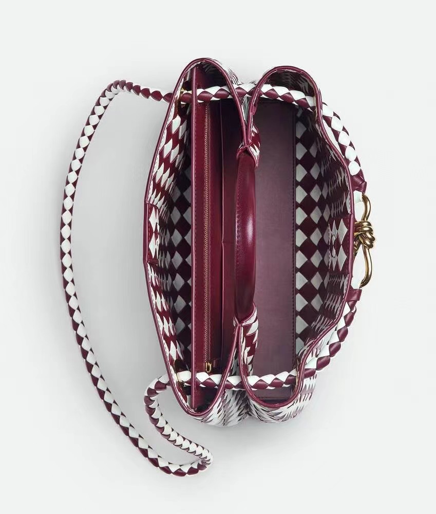 BOTTEGA VENETA 龙年限定颜色Andiamo手袋 众多明星同款酒红/冰川蓝, 经典的全身皮革编织搭配金色绳结扣 够沉稳也够潇洒,整体皆由Nappa羊皮革制成 舒适柔软且富有动感 可滑动的金属绳结扣可以调整肩带,单肩/手伶/斜挎 多种背法 包身容量大 通勤/日常/出游都很合适 这款包分为小号/中号 /大号 总有一款适合你 那就带我走叭。