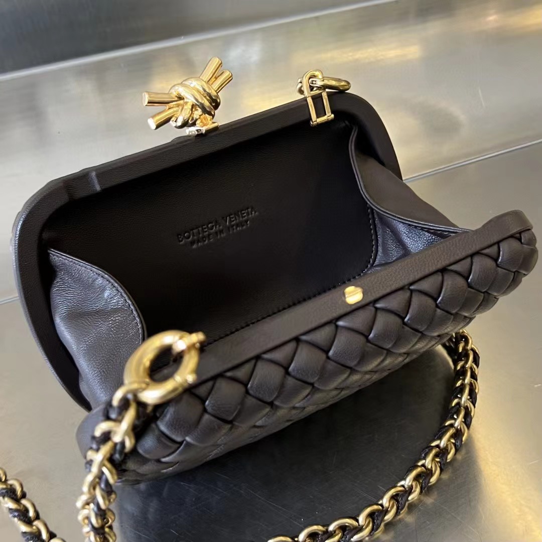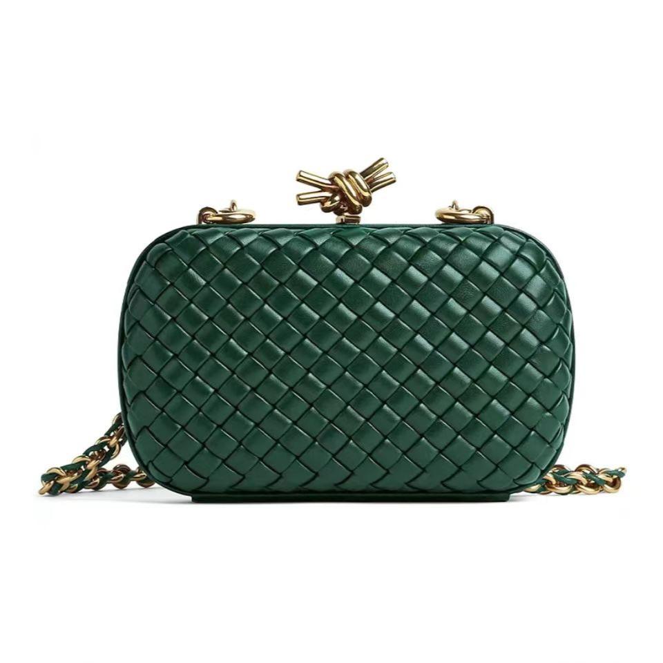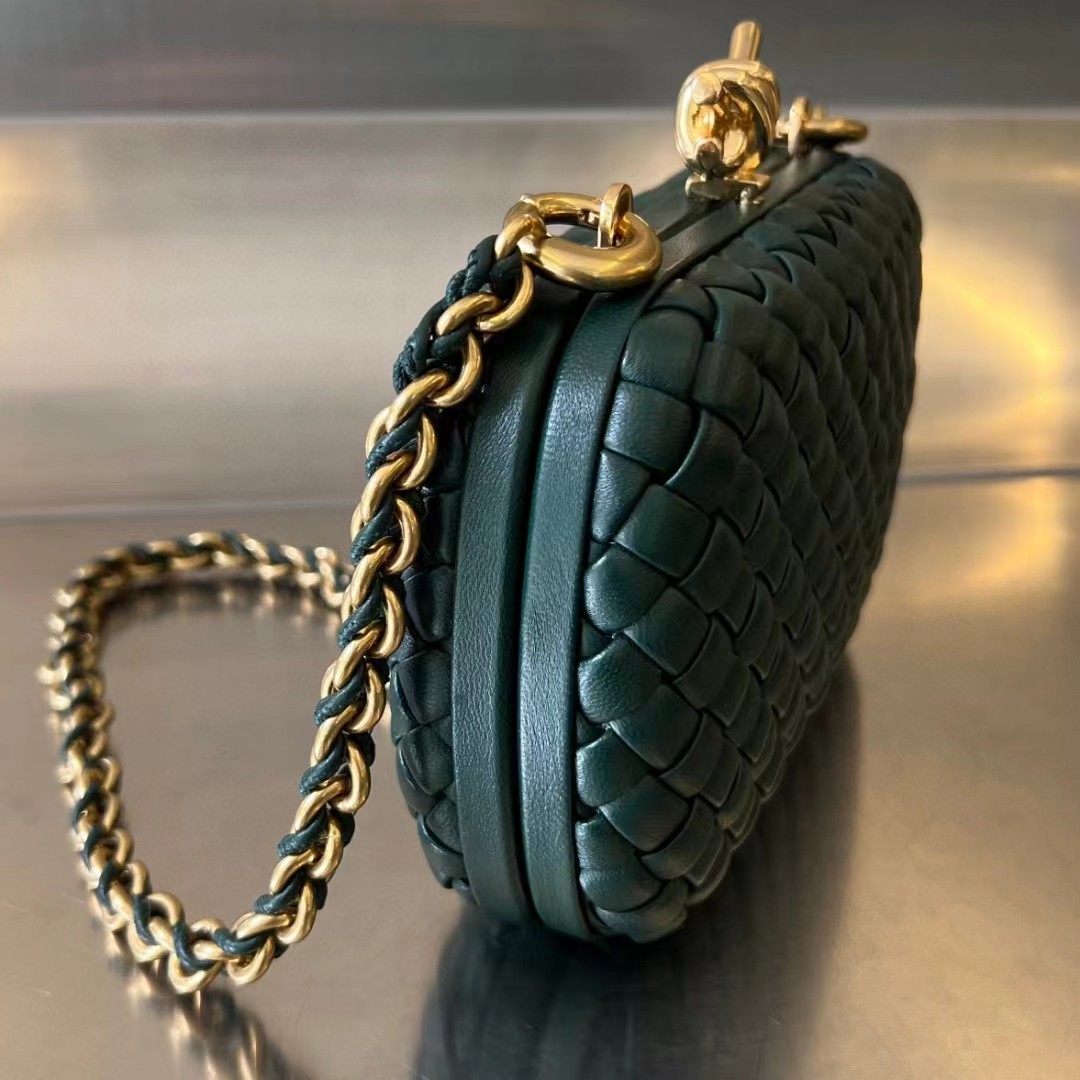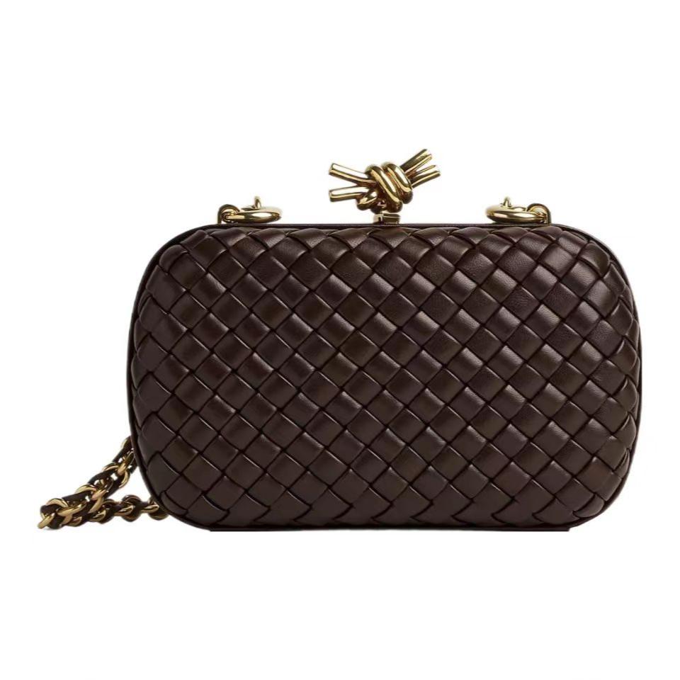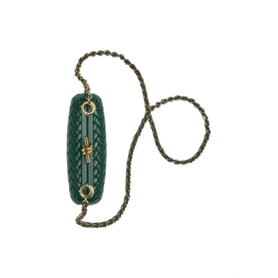 BV Knot 链条晚宴包。标志性编织纹理配金属结绳搭扣 高贵典雅 羊皮柔软舒适的质感,金属链条可拆卸 手拿/斜挎都超高级 ,简约美 整体更加时髦高级感 knot设计小巧精致,无Logo的低调 无花饰累赘 素雅大方,握在手上能为女性平添出优雅温婉的气质 集高贵优雅大方于一身,