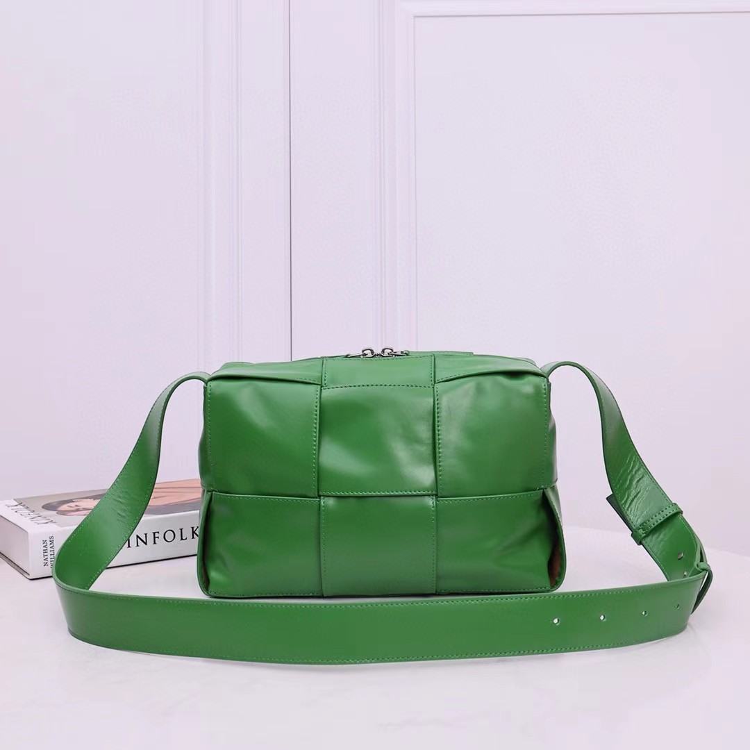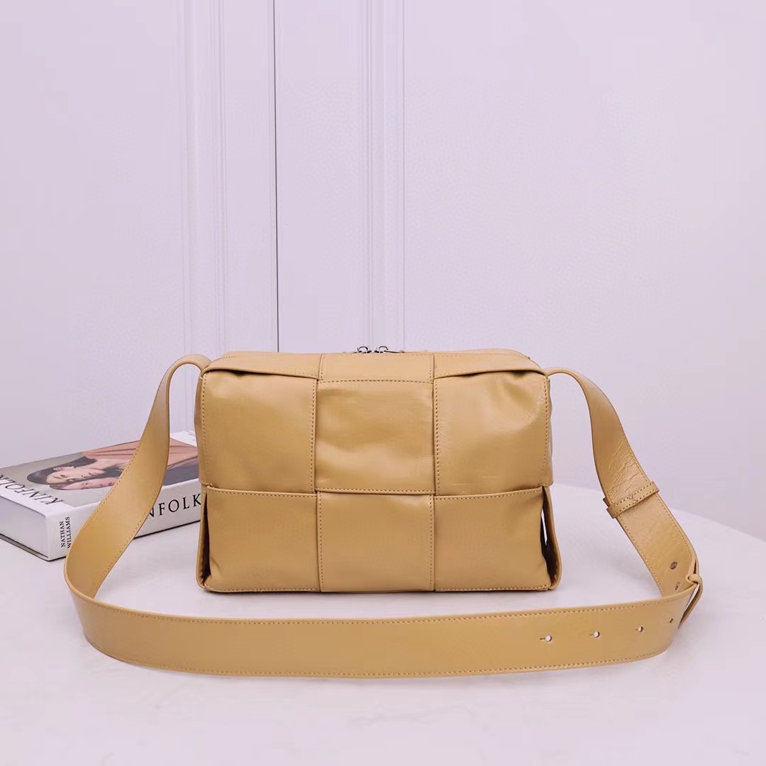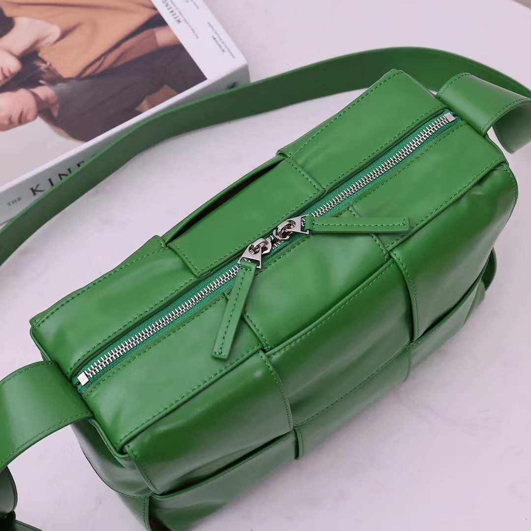 新品2023早春系列,男女通用新款Arco相机包,尽释个性风范。经典编织 油蜡皮的复古风格实在太绝了,天然的褶皱纹理让每个包都变得独一无二。真的每次在路上看到有人背都忍不住要回头多看几眼 ,包身轻便,容量超感人 超能装。 复古油蜡皮,造型百搭又可以隐藏刮痕 设计感超强但是又足够低调。