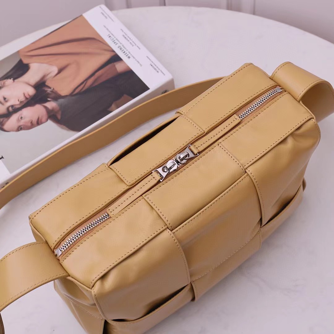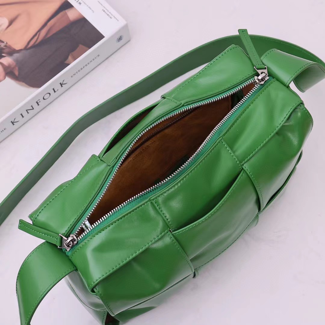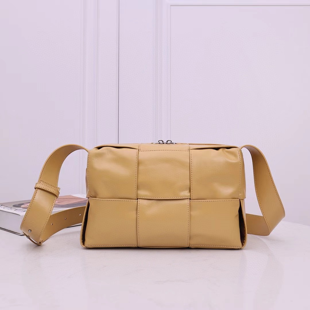 新品2023早春系列,男女通用新款Arco相机包,尽释个性风范。经典编织 油蜡皮的复古风格实在太绝了,天然的褶皱纹理让每个包都变得独一无二。真的每次在路上看到有人背都忍不住要回头多看几眼 ,包身轻便,容量超感人 超能装。 复古油蜡皮,造型百搭又可以隐藏刮痕 设计感超强但是又足够低调。