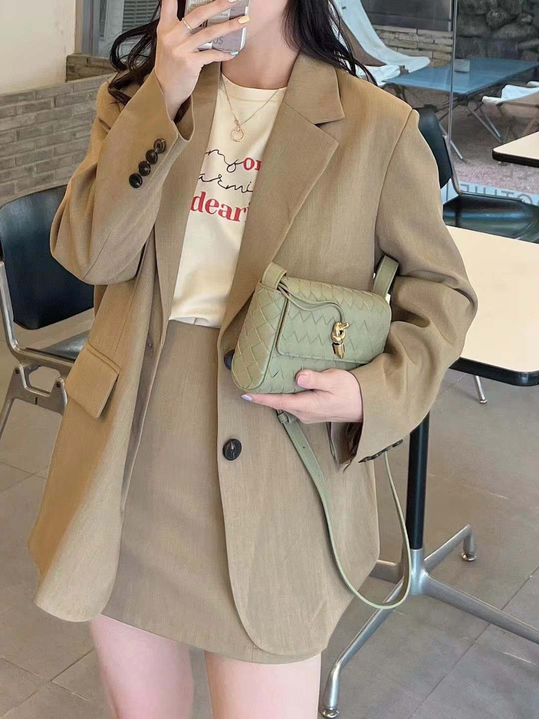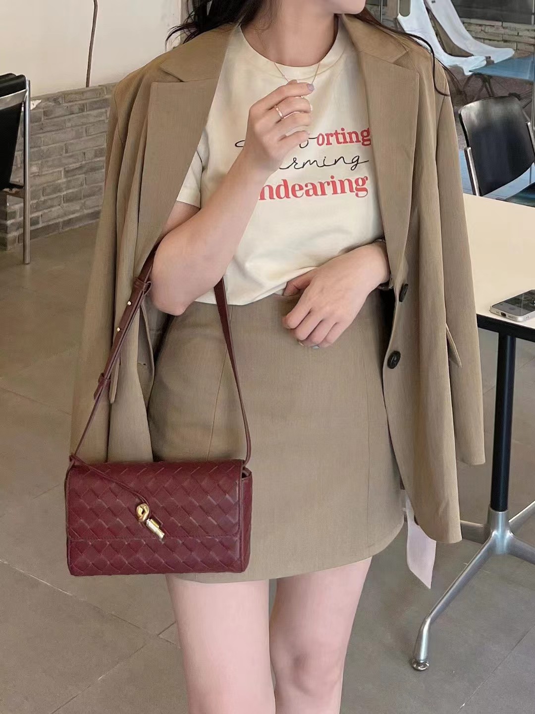 BOTTEGA VENETA 葆蝶家 羊皮个拼牛皮革单肩斜挎包