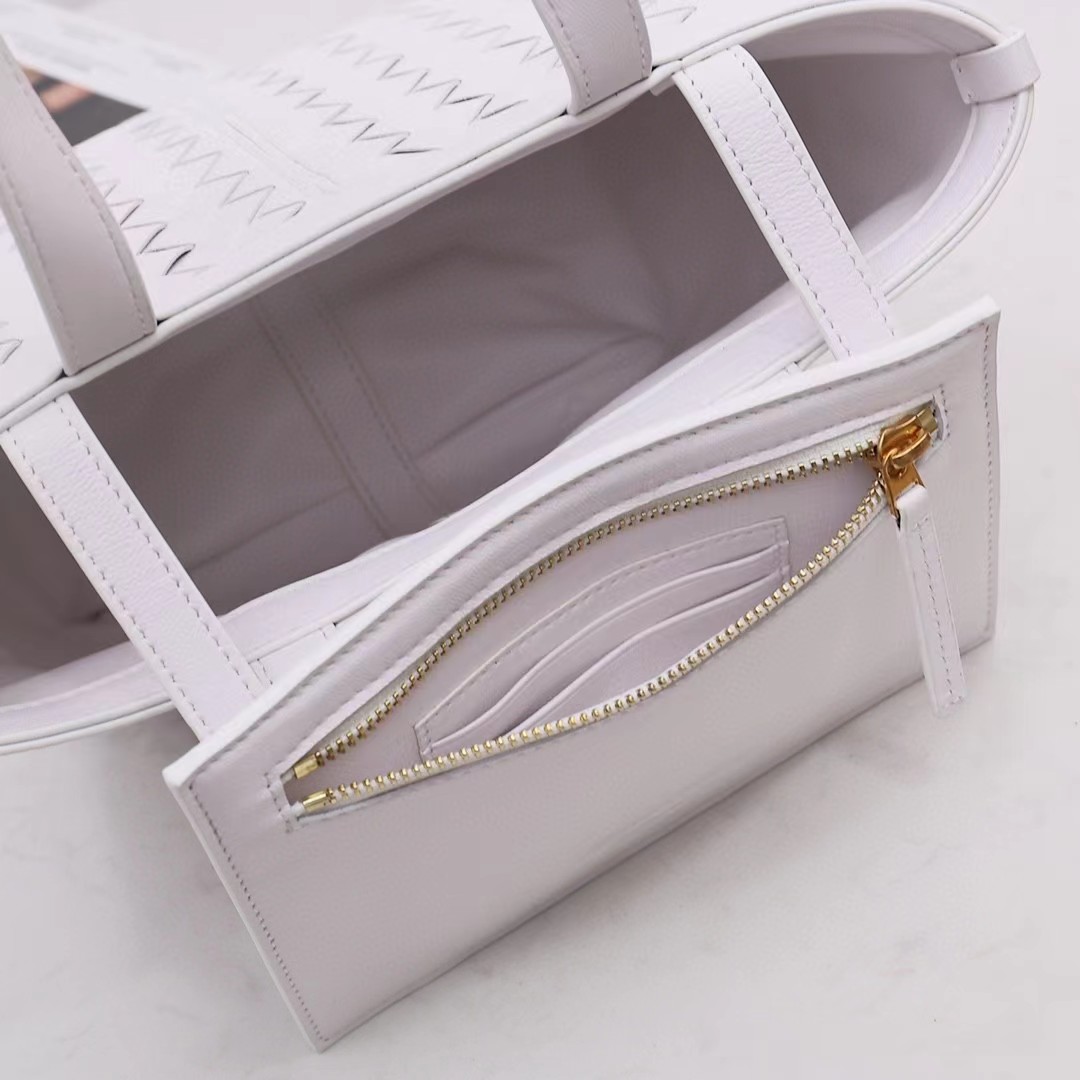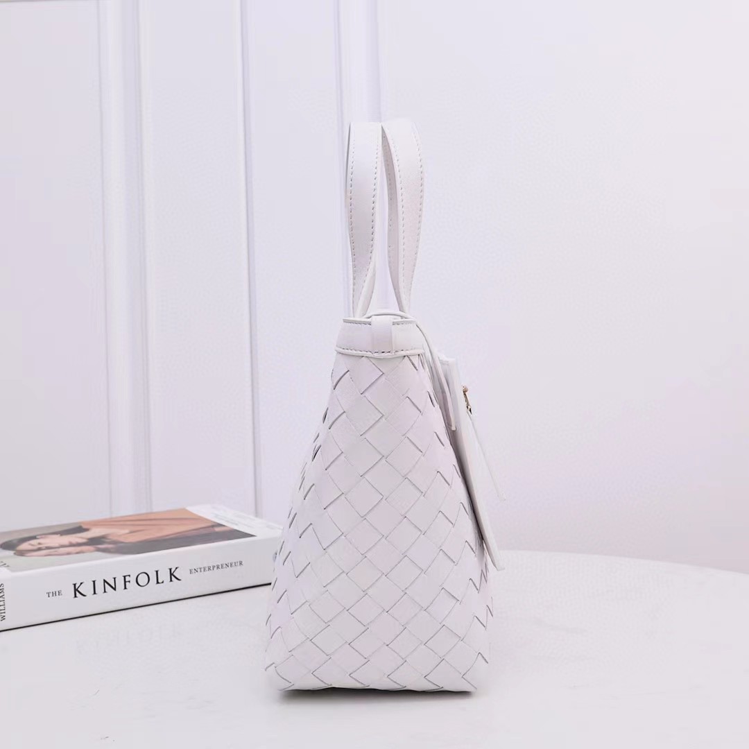 葆蝶家 编织小 tote 今年的温柔气质是小菜篮子,实用和颜值并存的奶fufu小篮子 简约实用托特包身设计,经典皮革编织 将工艺展现的淋漓尽致 也使整个包包显得更加精致。