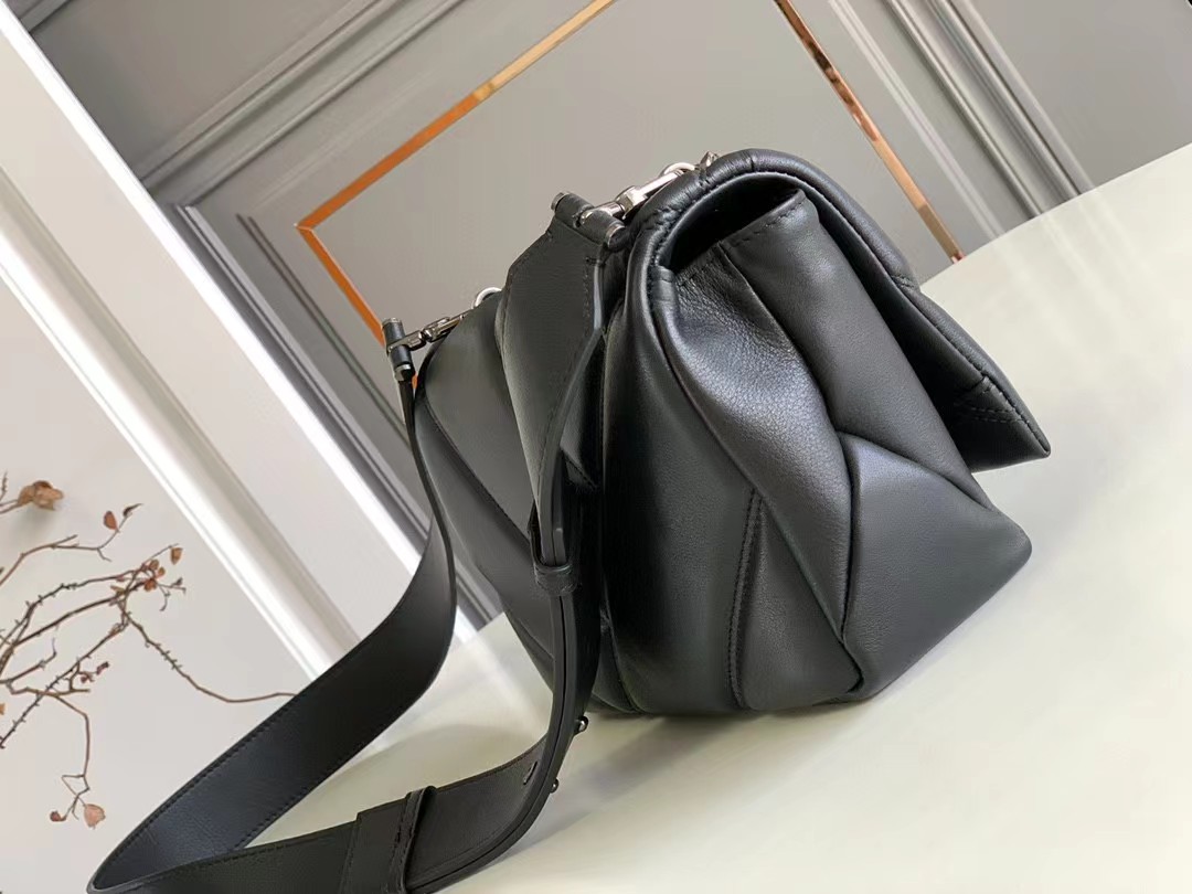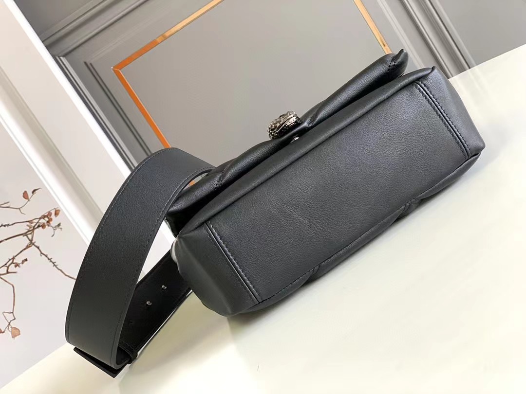 使得此款包袋的酷黑小牛皮包身更显柔软顺滑