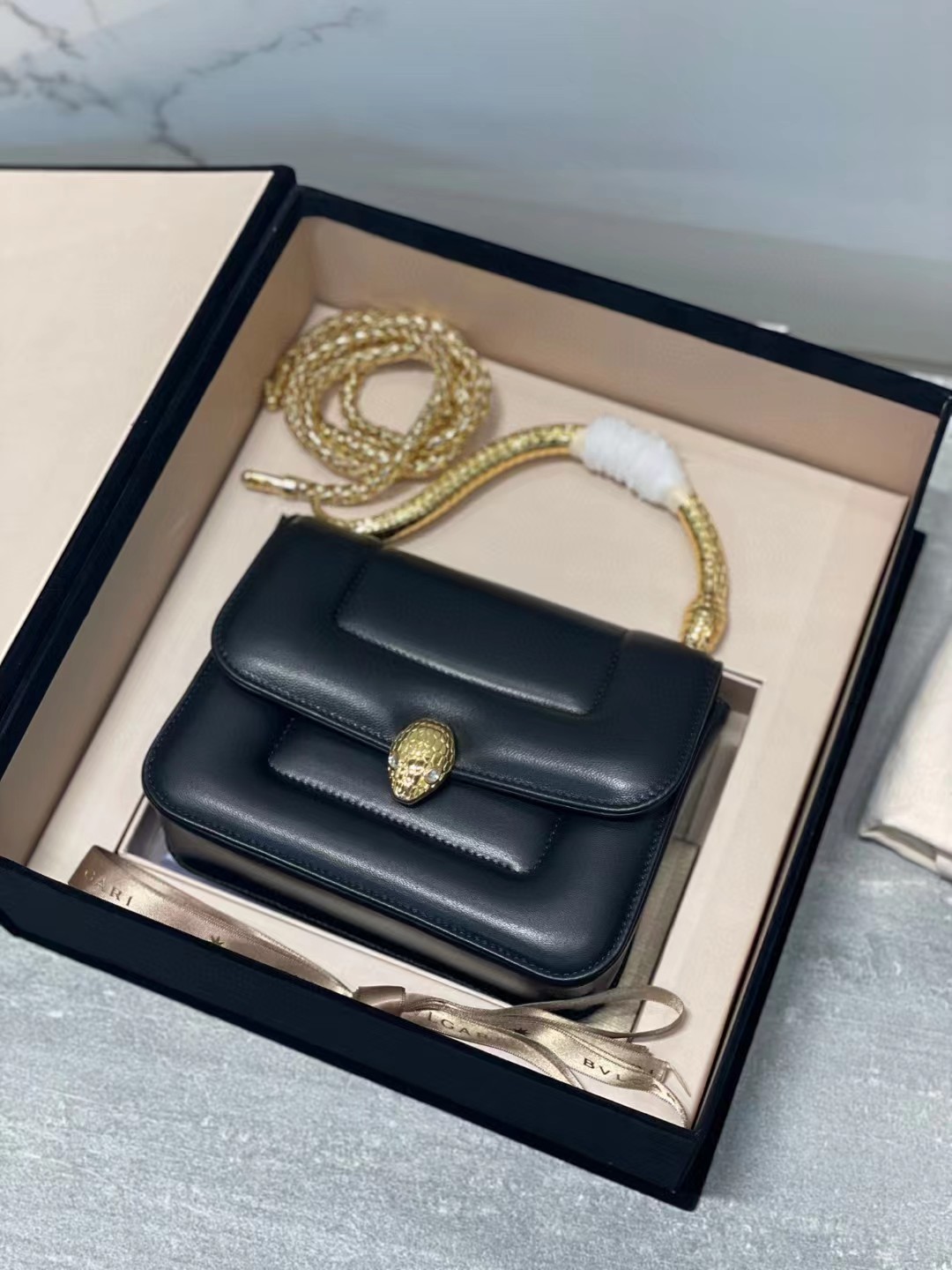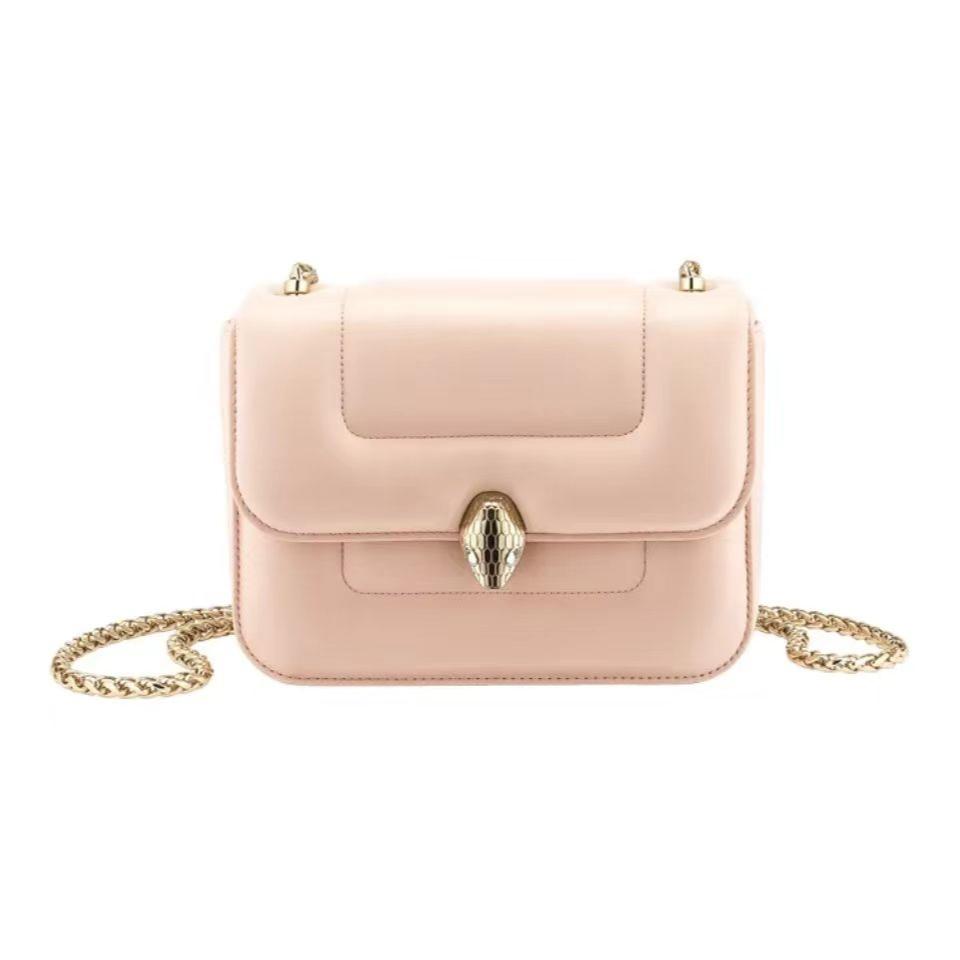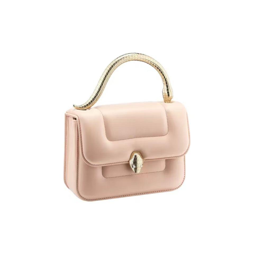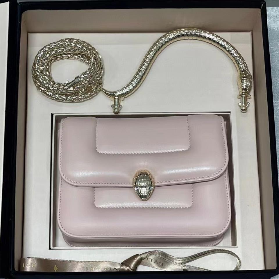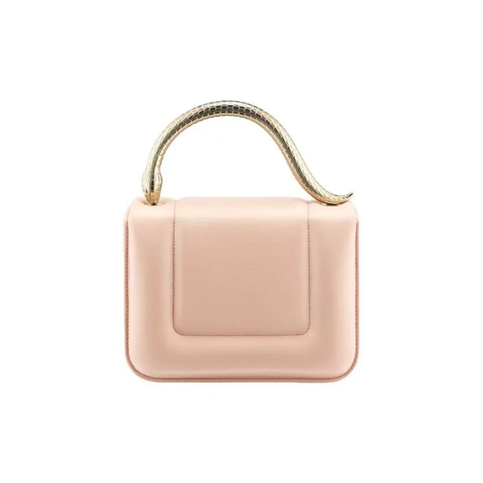 作为“设计师眼中的SERPENTI”系列的全新篇章,Mary Katrantzou重新演绎经典的SERPENTI图案,从灵蛇蜕变汲取灵感,推出全新的精美联名系列。此款手提包采用柔软白色小羊皮材质,搭配浅金镀金黄铜配饰。浅金镀金黄铜重释经典的SERPENTI蛇首搭扣,搭配迷人的水晶双眸,尽显BVLGARI宝格丽古董腕表的设计元素