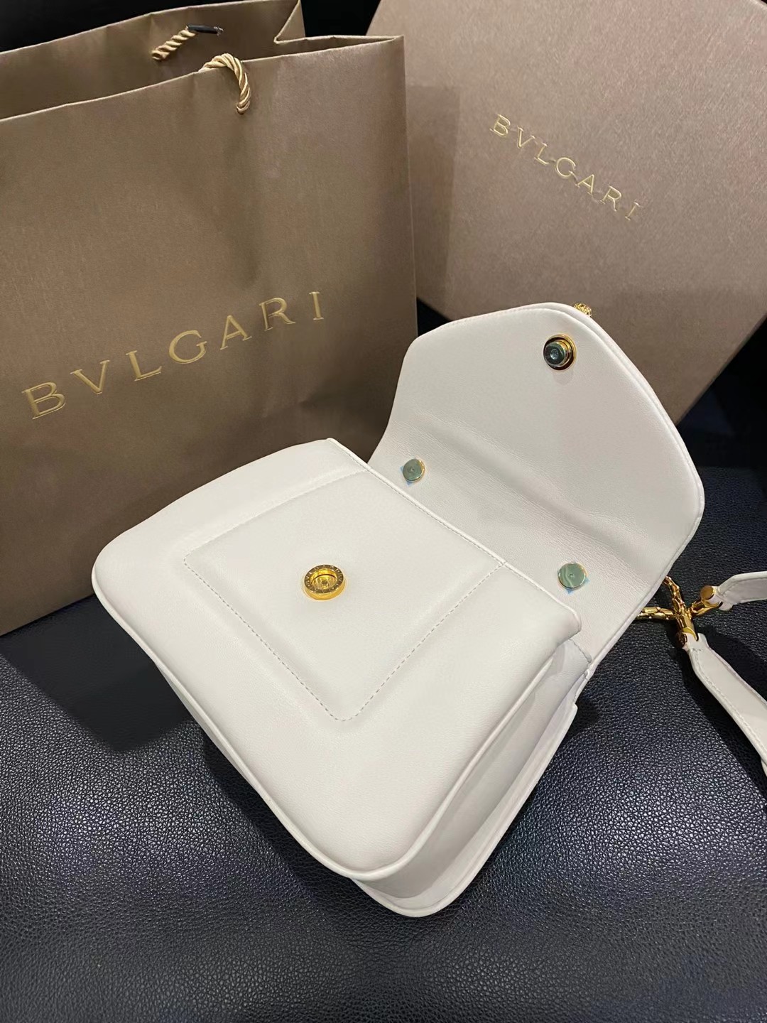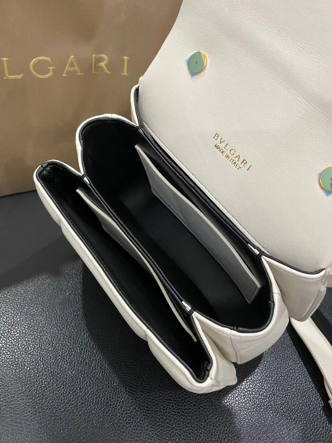 收到包包就打开包装,全方位拍照看看有没有瑕疵,品相完美,感谢!