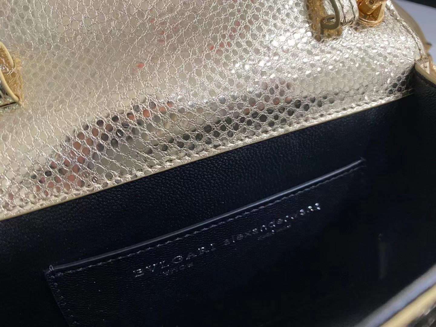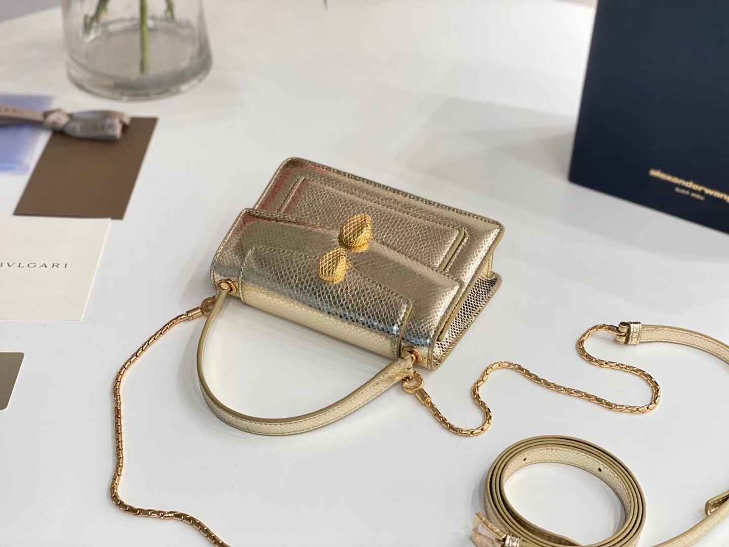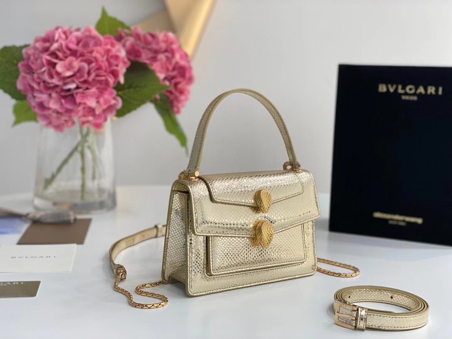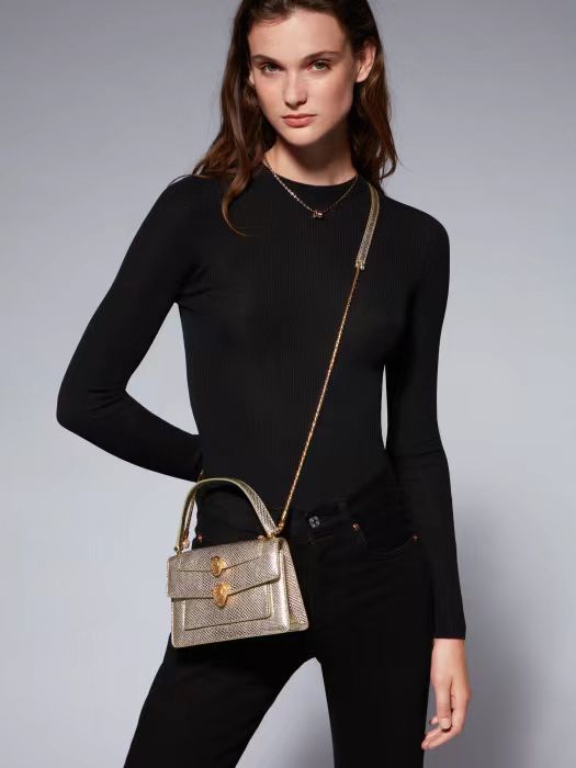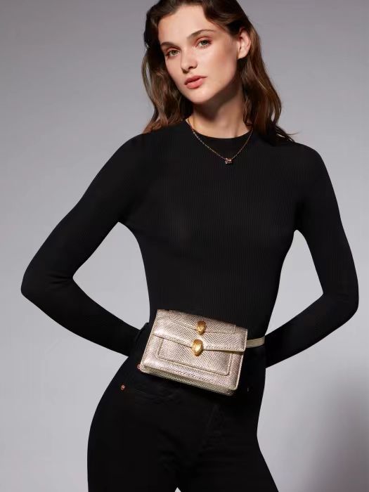 【Bvlgari宝格丽】新品亚历山大王眼中的SERPENTI系列腰包,前卫而无可挑剔的易搭风格,以别出心裁的设计演绎BVLGARI宝格丽标志性灵蛇图案。这款包袋以精美的浅“熔”金色牛皮手工制作,饰以复古镀金黄铜的迷人SERPENTI双蛇首,点缀红色珐琅魅惑双眼,这款包袋集实用功能与超现代风范于一身,配有可拆卸手柄,蛇形链条和皮革肩带及一条适合多种佩戴方式的腰带。