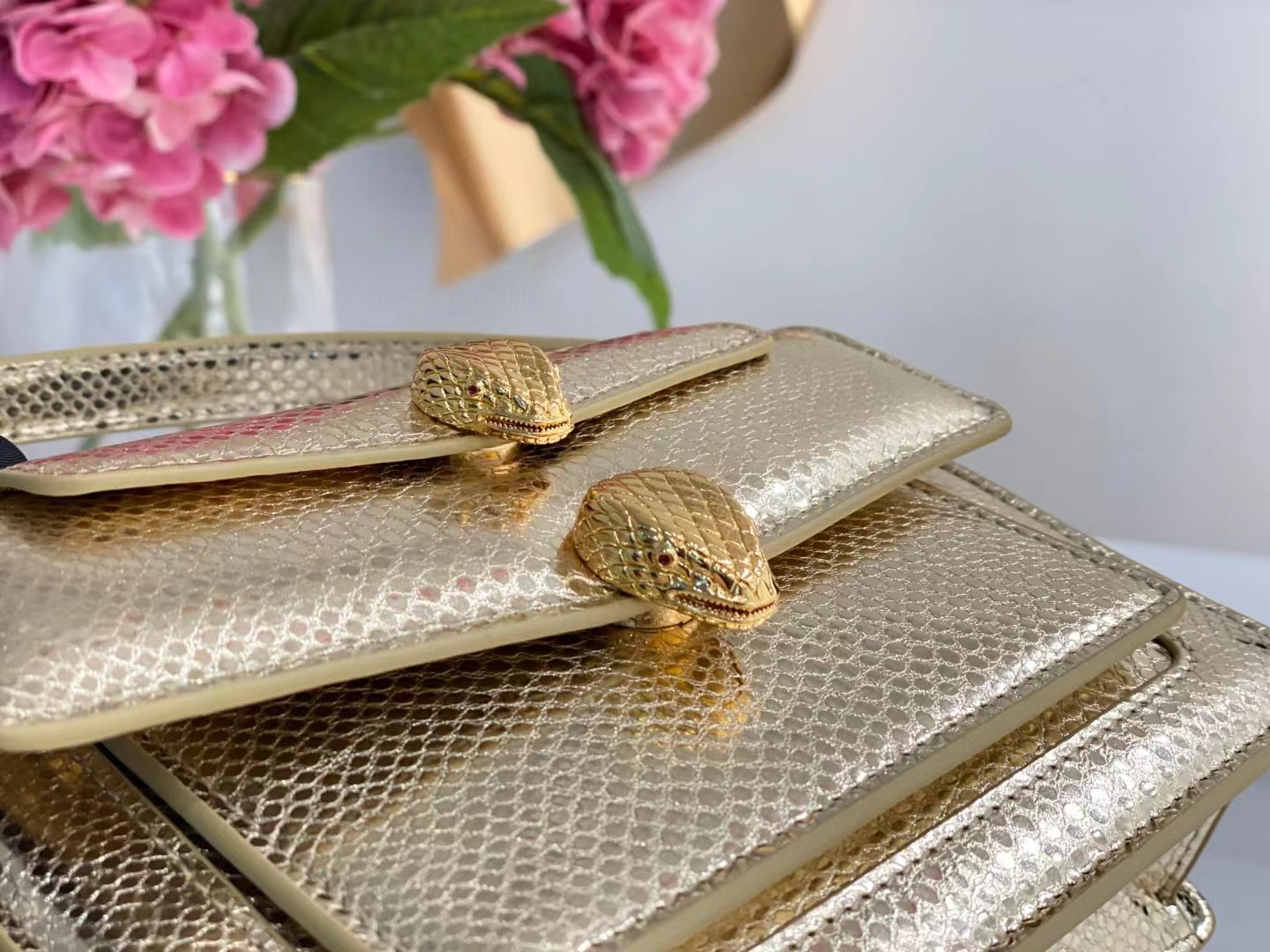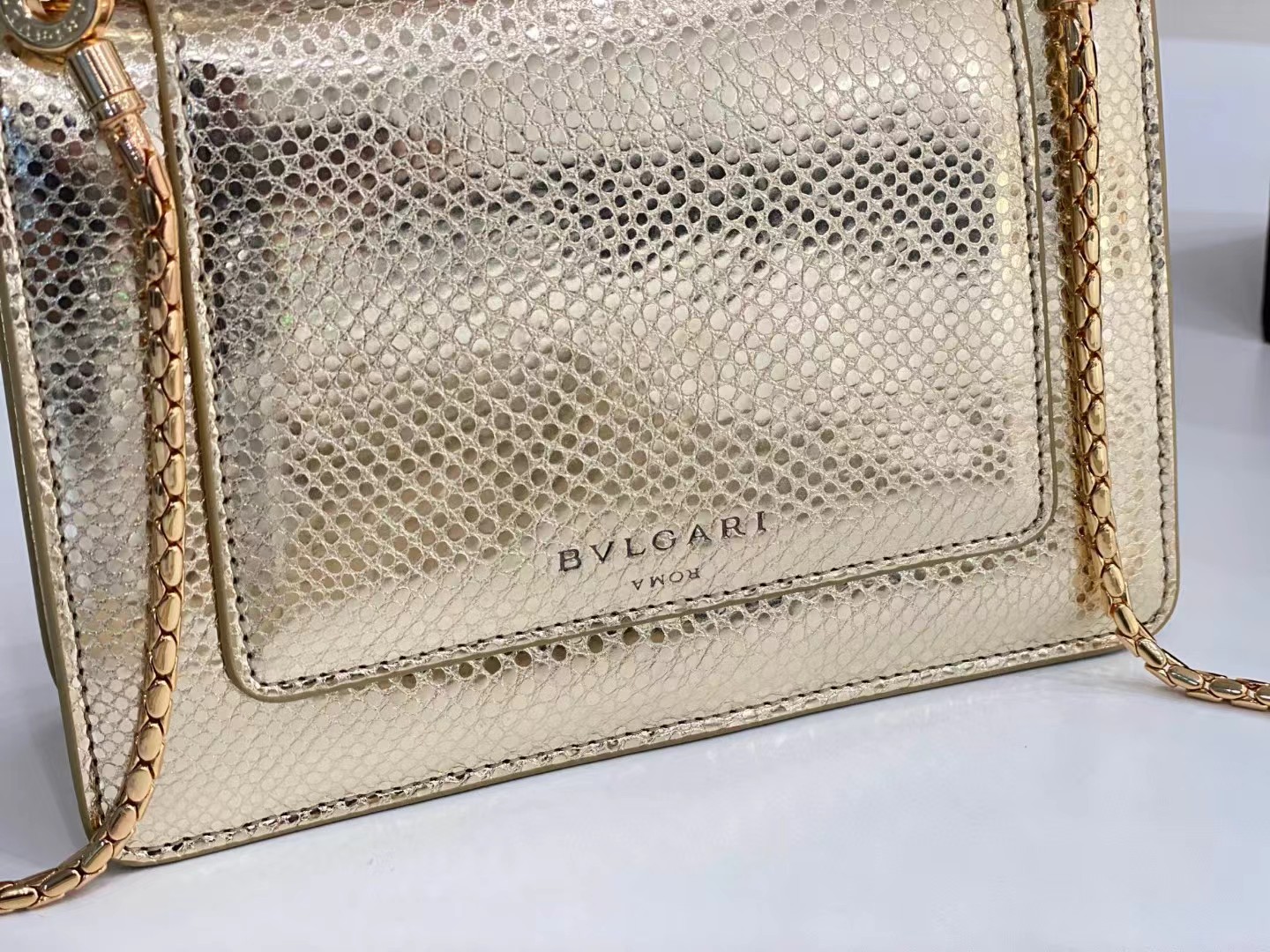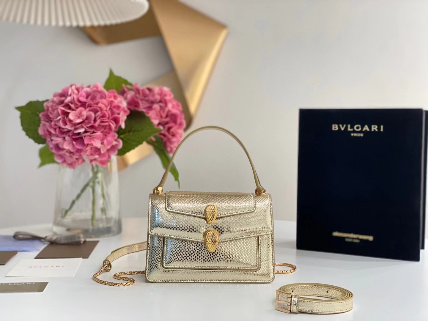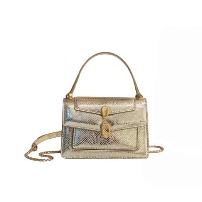 【Bvlgari宝格丽】新品亚历山大王眼中的SERPENTI系列腰包,前卫而无可挑剔的易搭风格,以别出心裁的设计演绎BVLGARI宝格丽标志性灵蛇图案。这款包袋以精美的浅“熔”金色牛皮手工制作,饰以复古镀金黄铜的迷人SERPENTI双蛇首,点缀红色珐琅魅惑双眼,这款包袋集实用功能与超现代风范于一身,配有可拆卸手柄,蛇形链条和皮革肩带及一条适合多种佩戴方式的腰带。