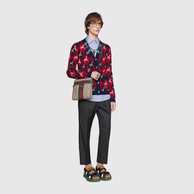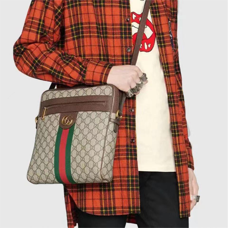 【介绍】 海外原单 沉浸在复古情怀之中,Ophidia家族又迎来了新的成员——男士斜背挎包!GG高级人造帆布材质,点缀红绿织带等品牌最富特色的经典元素,体现出对品牌马术本源的致敬。