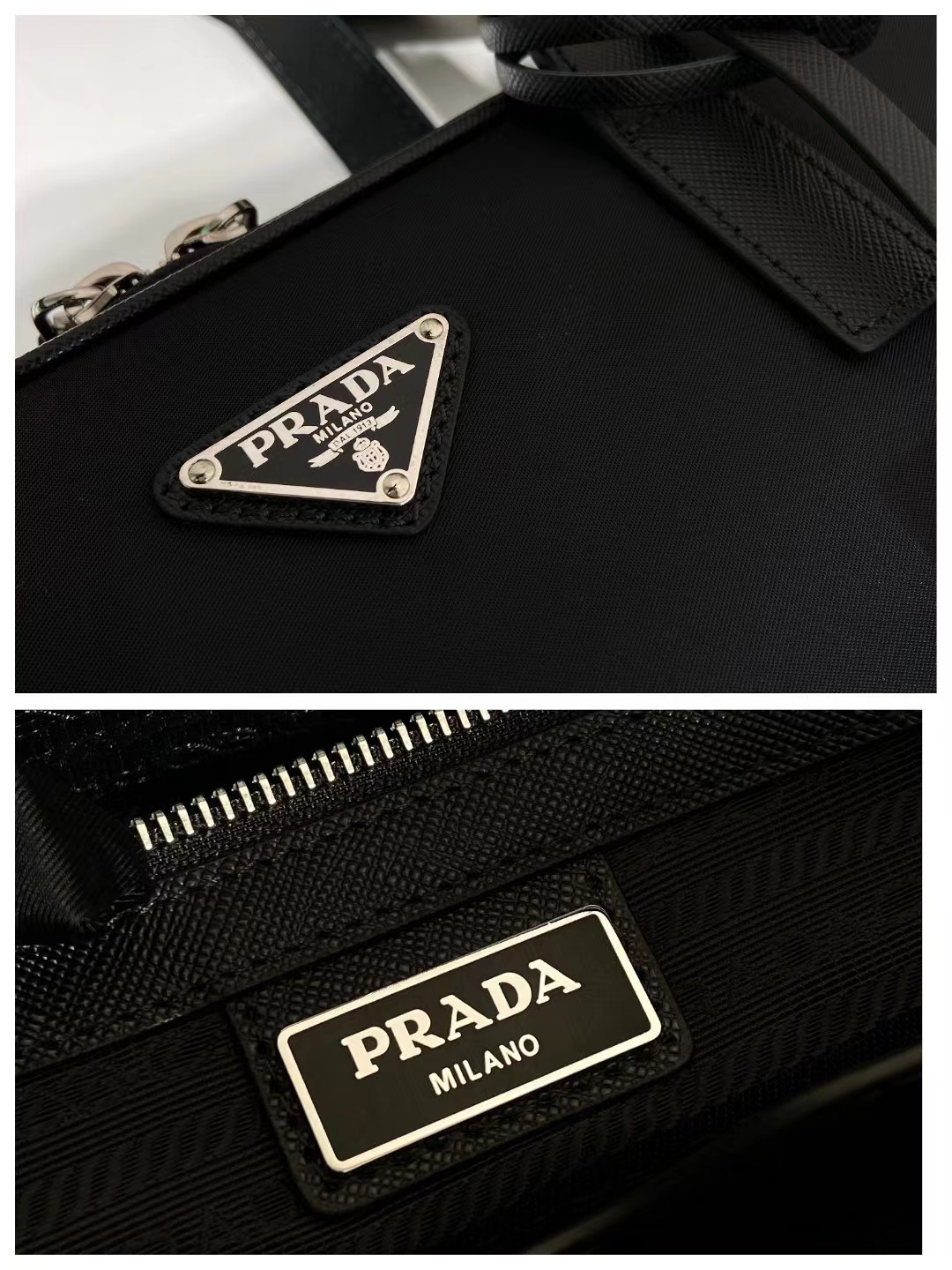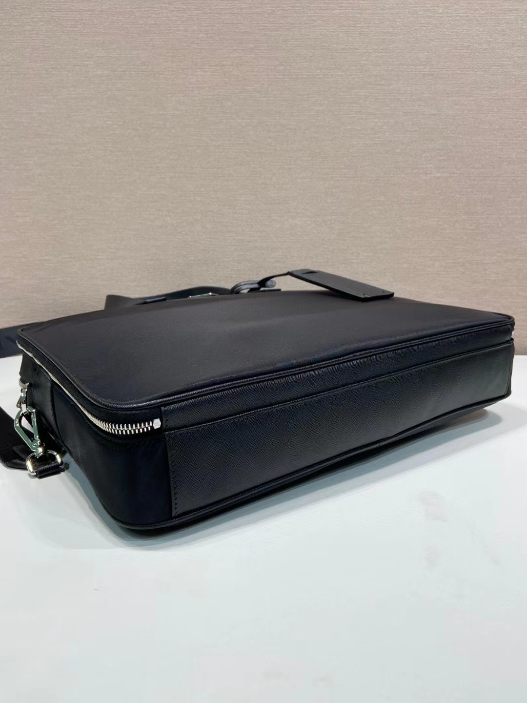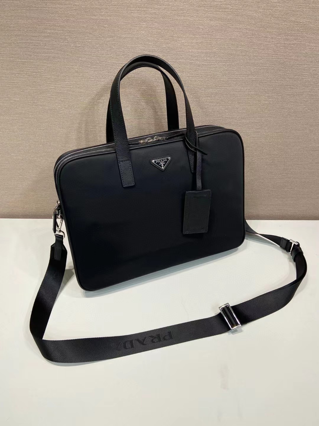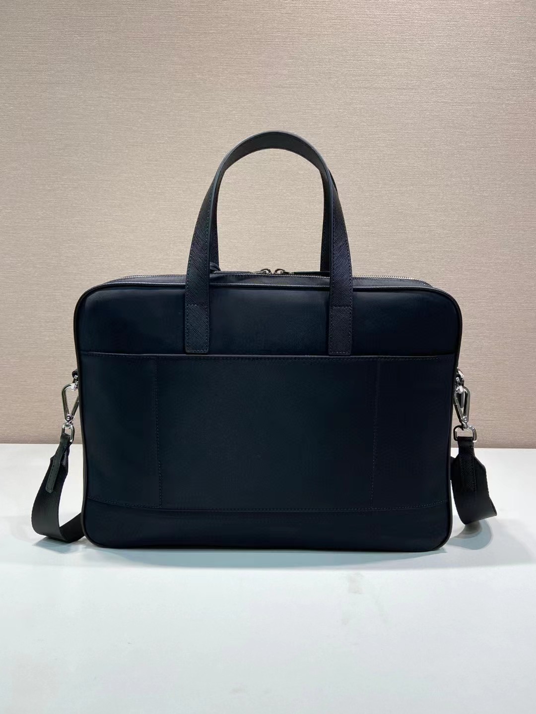 【介绍】 新款公文包三角标,这款再生尼龙材质重释经典的男士公文包,为新一季增添亮点。公文包配有双提手和可拆卸肩带,标志为三角标,细节设计精巧别致。出差背面可挂在拉杆箱上。非常实用,简约/又大气。
