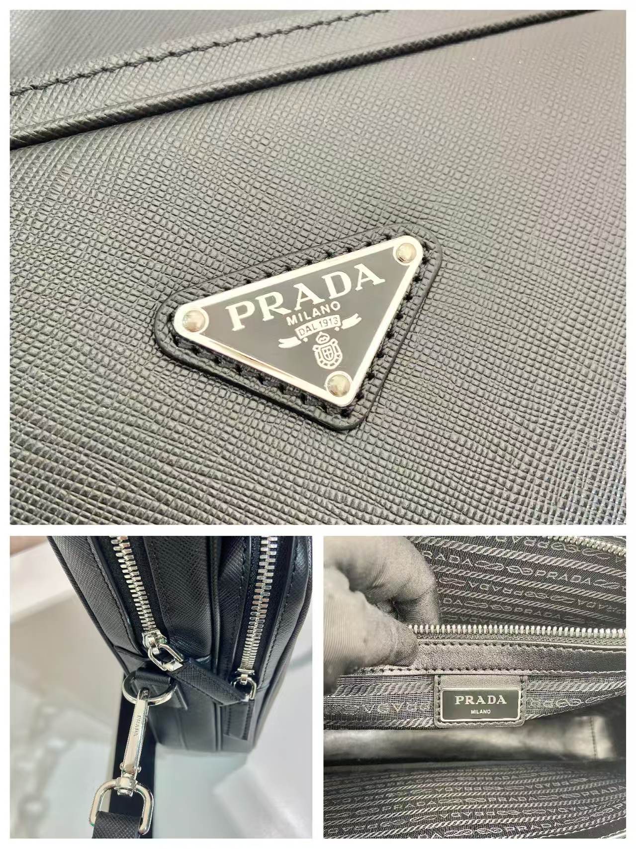 PRADA 普拉达 十字纹牛皮革 男士单肩斜挎手提公文包