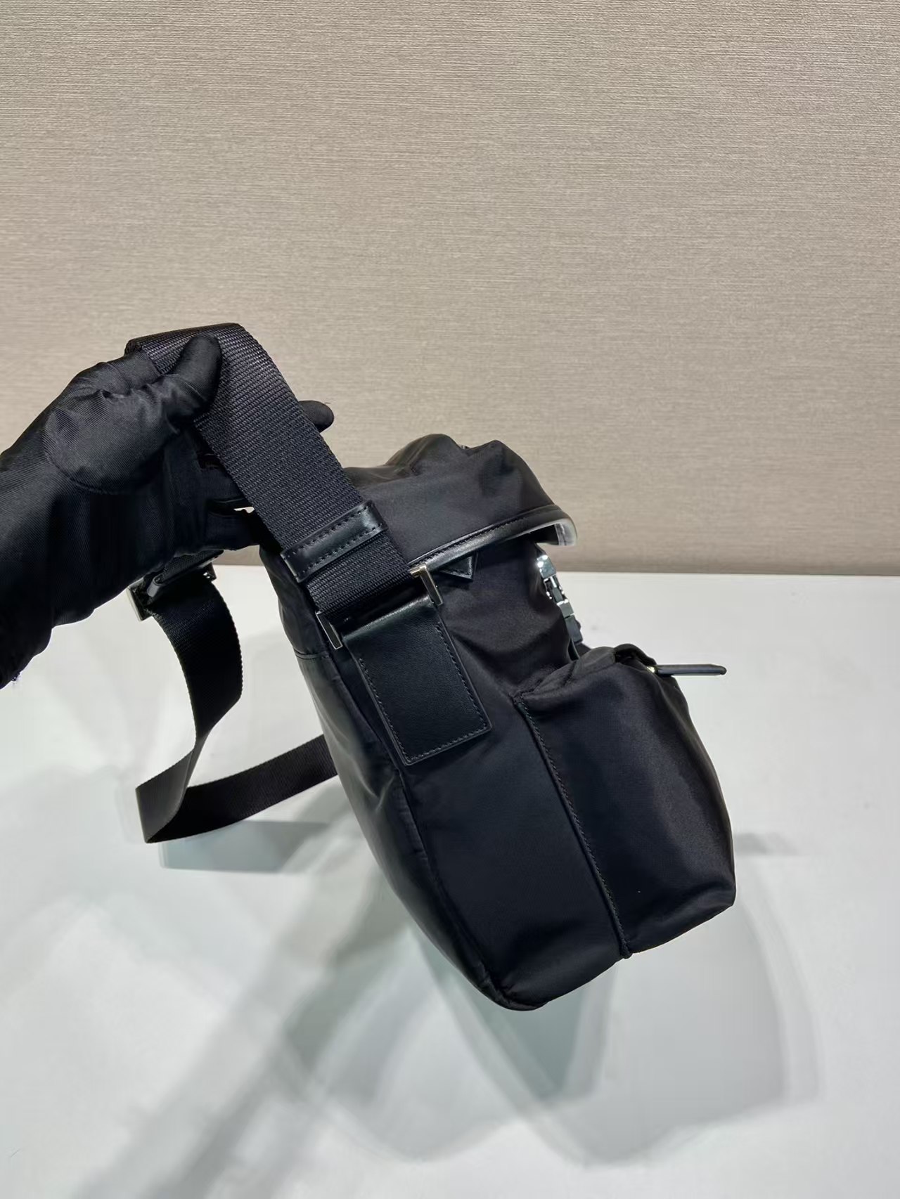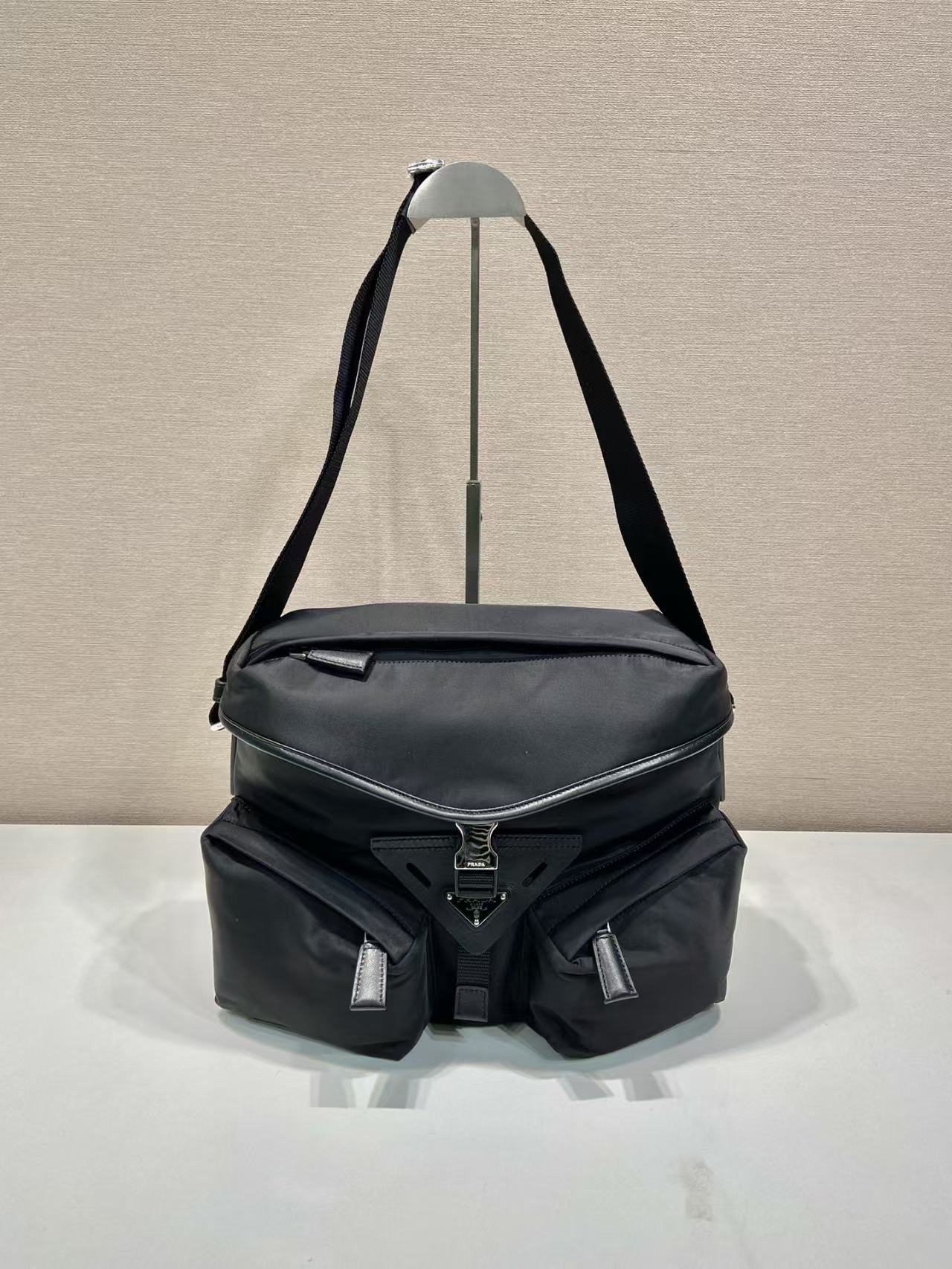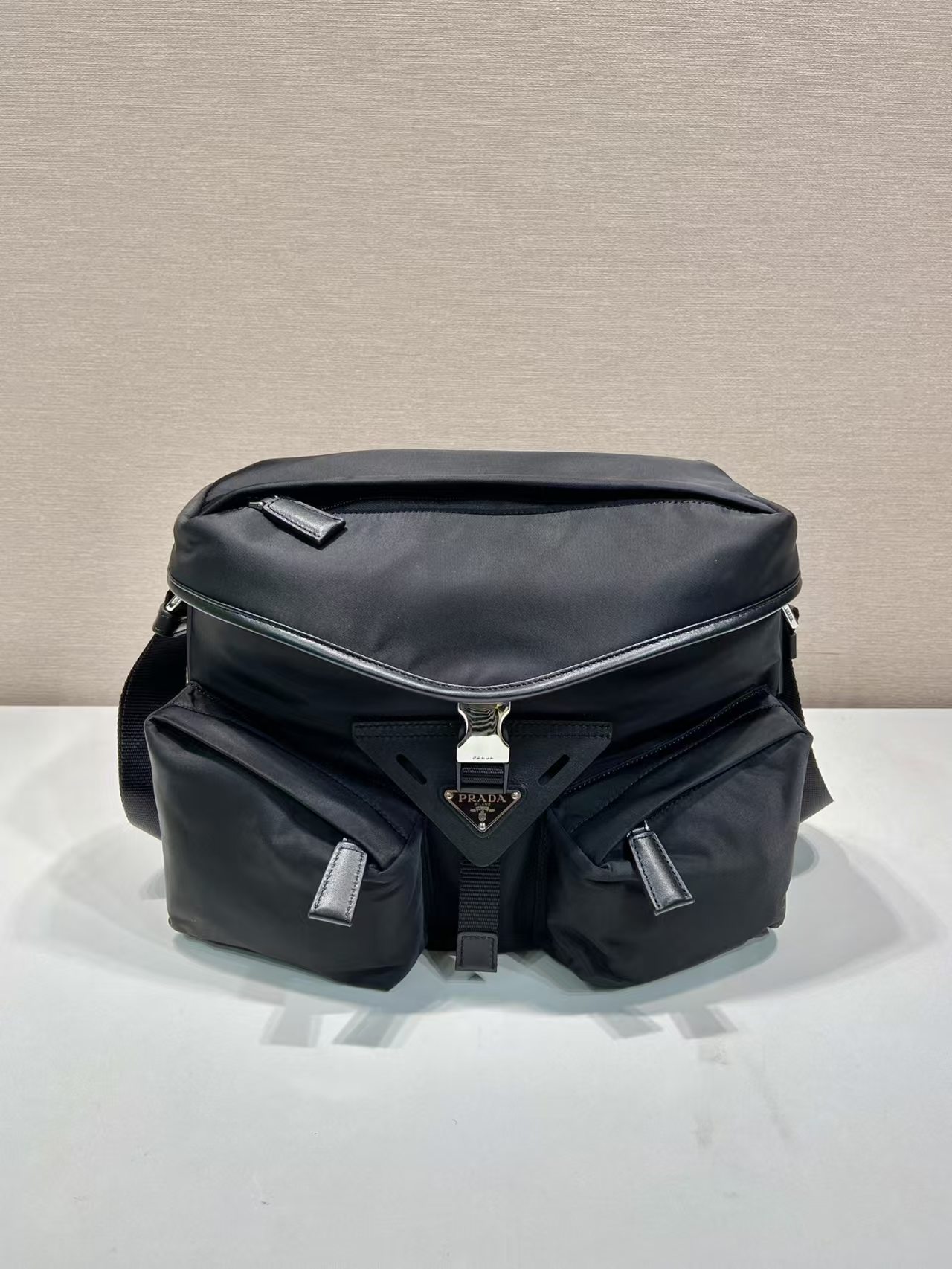 PRADA 普拉达 Re-Nylon 再生尼龙拼皮革 斜挎单肩包 男款