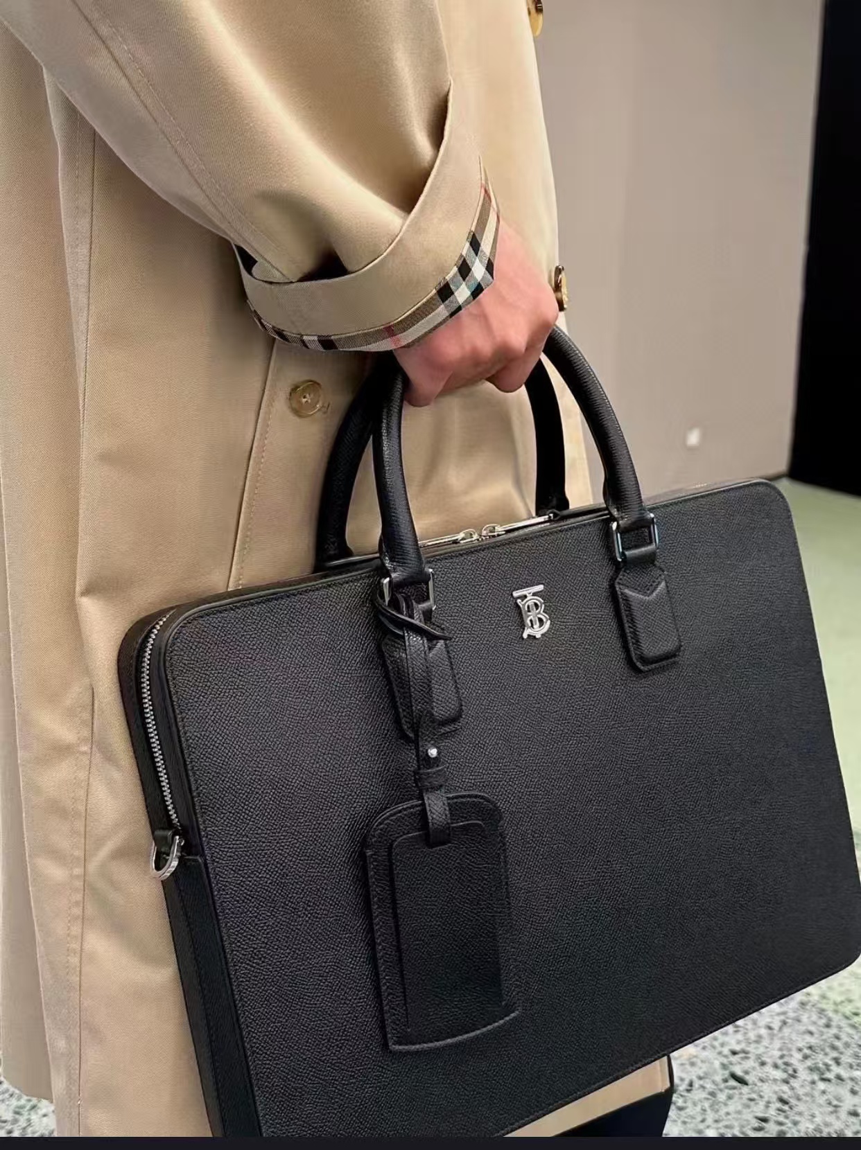 【介绍】 最新立挺公文包,选用粒纹小牛皮面料于意大利制成。纤巧设计,饰有行李吊牌和镀钯金 TB 专属标识。