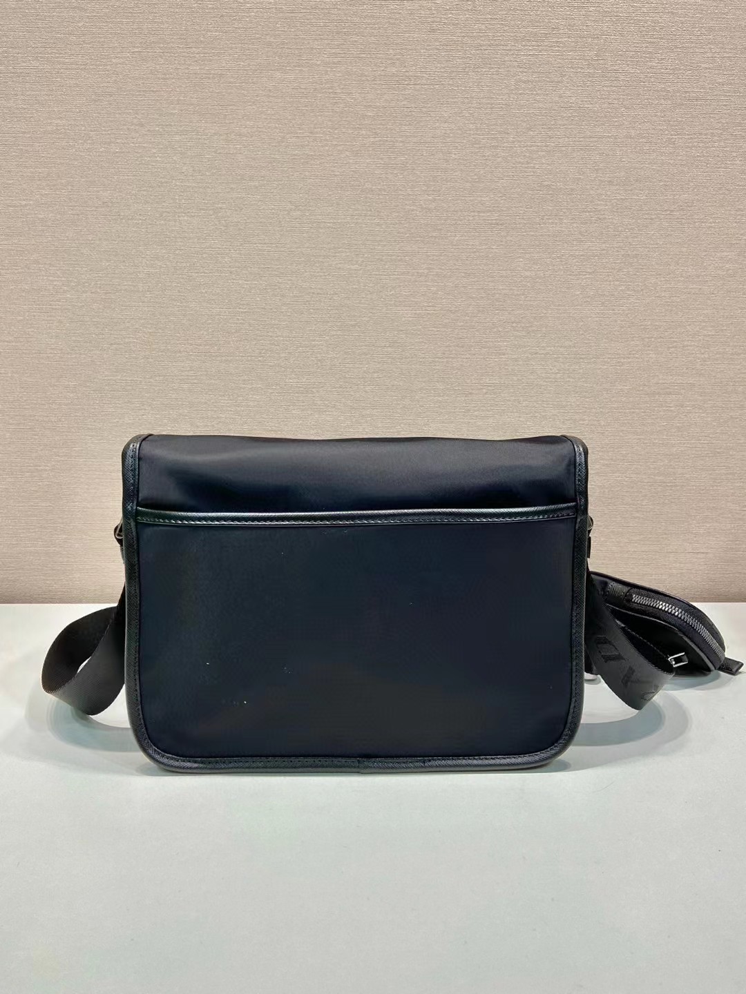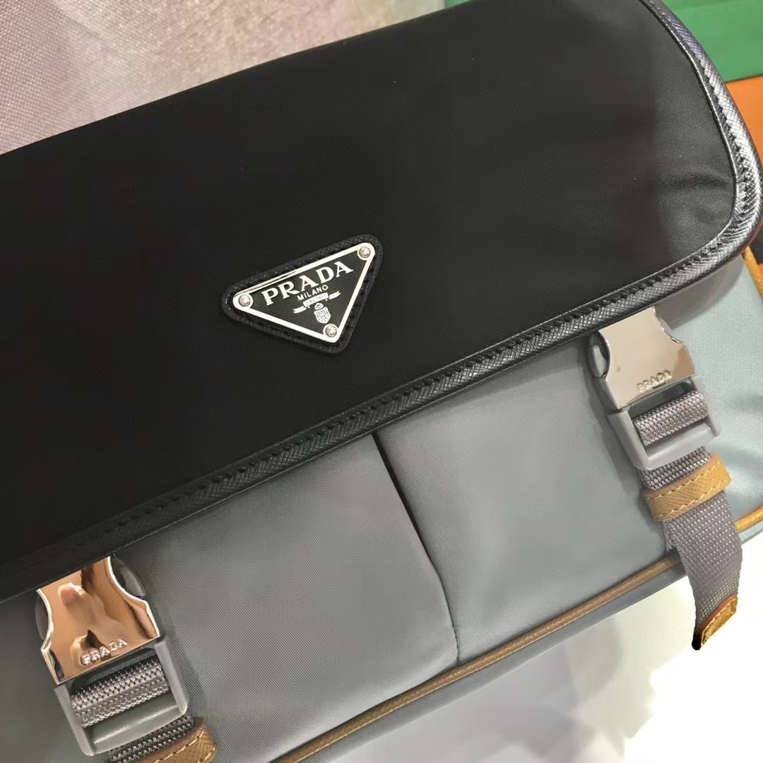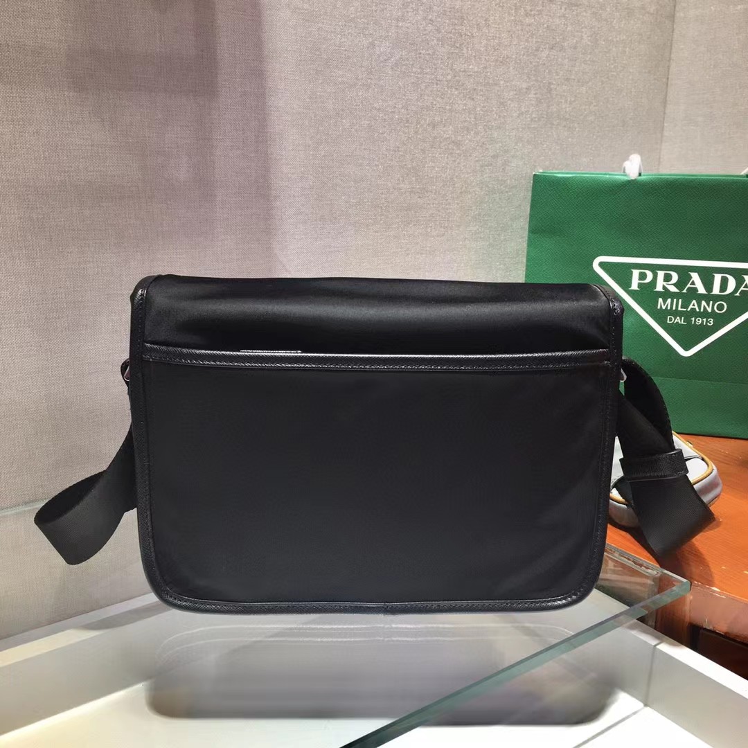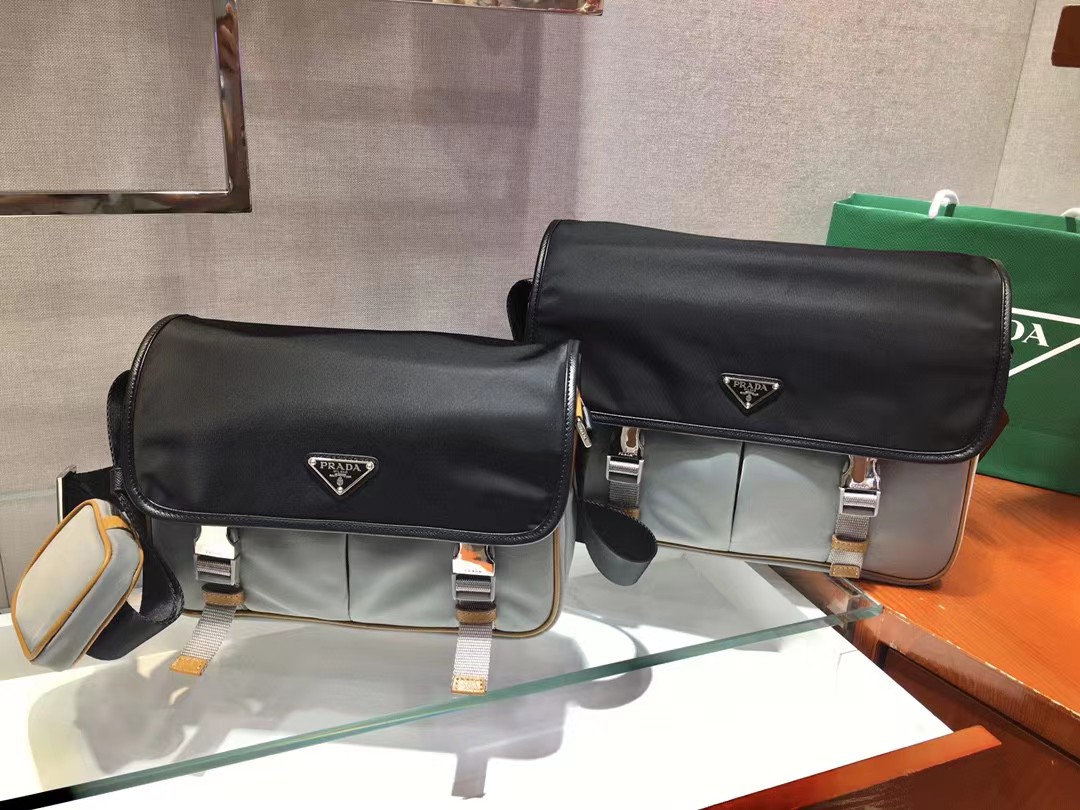 PRADA 邮差包,这款尼龙翻盖手袋饰有经典的Saffiano皮革饰边,配有两枚旁开扣,并饰有标志性的三角形金属徽标,彰显时尚设计格调,采用进口尼龙和Saffiano皮革材质,两个正面口袋,其中一个带拉链背面拉链袋,两个内部手机袋,又可调式尼龙徽标提花肩带,经典又时尚的邮差包,男土们最爱。