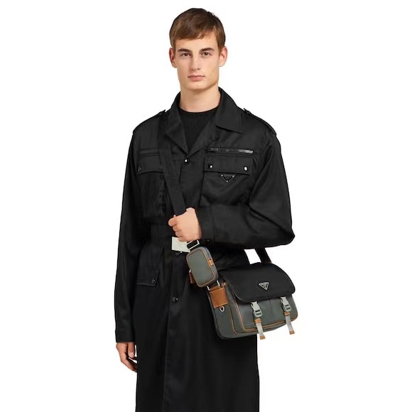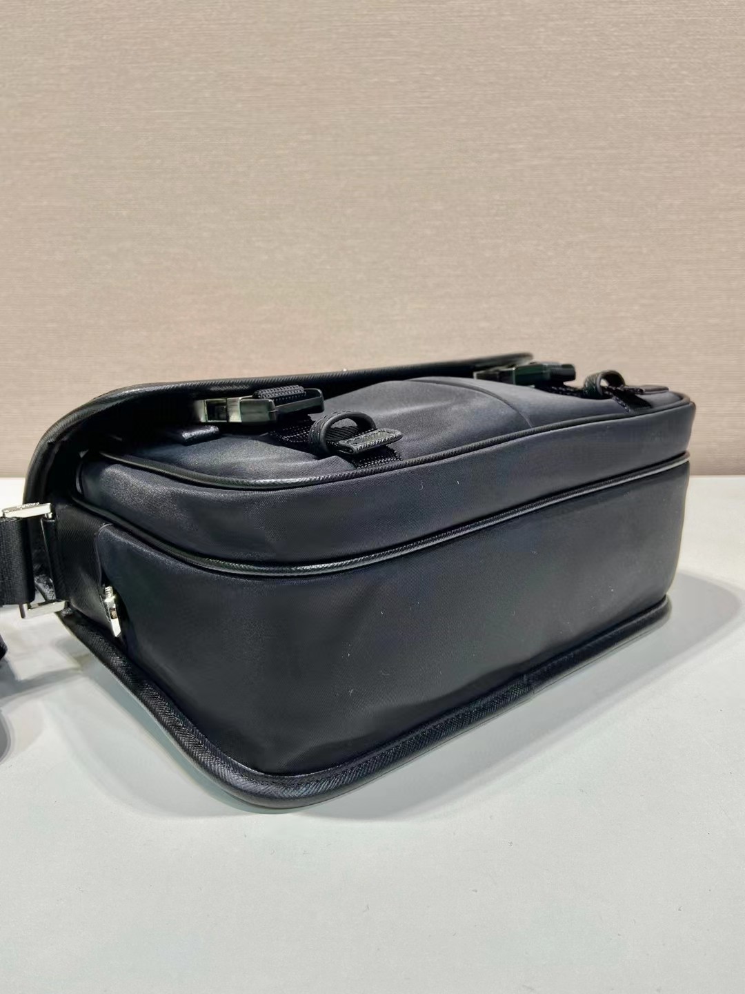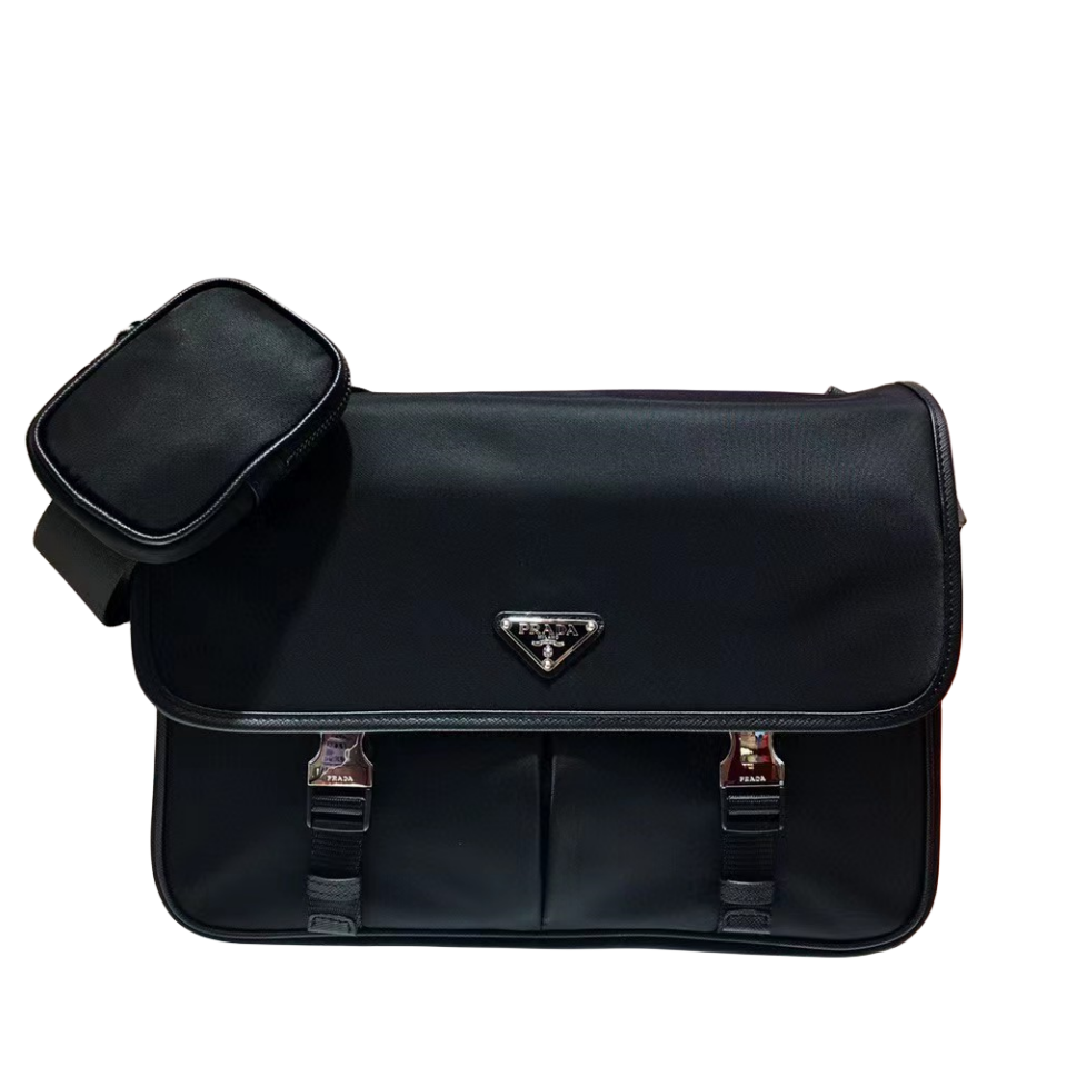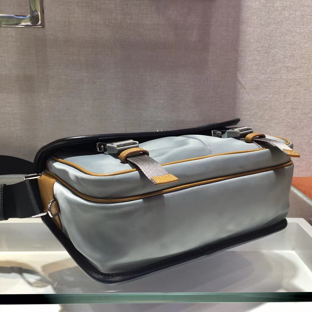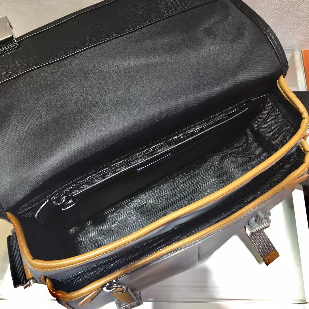 PRADA 邮差包,这款尼龙翻盖手袋饰有经典的Saffiano皮革饰边,配有两枚旁开扣,并饰有标志性的三角形金属徽标,彰显时尚设计格调,采用进口尼龙和Saffiano皮革材质,两个正面口袋,其中一个带拉链背面拉链袋,两个内部手机袋,又可调式尼龙徽标提花肩带,经典又时尚的邮差包,男土们最爱。