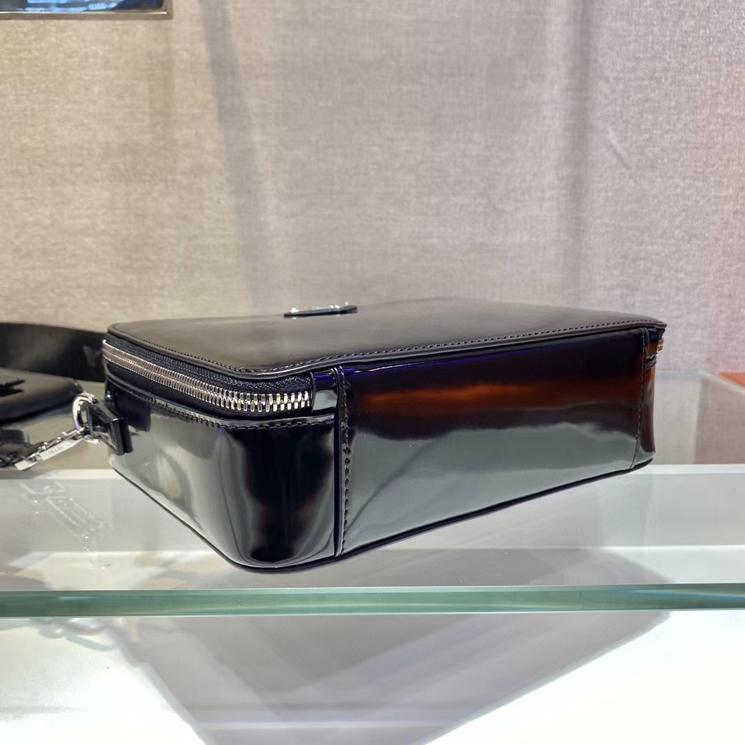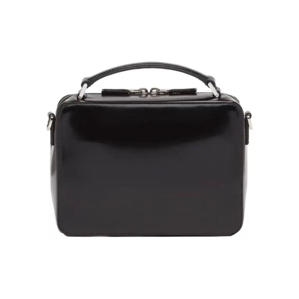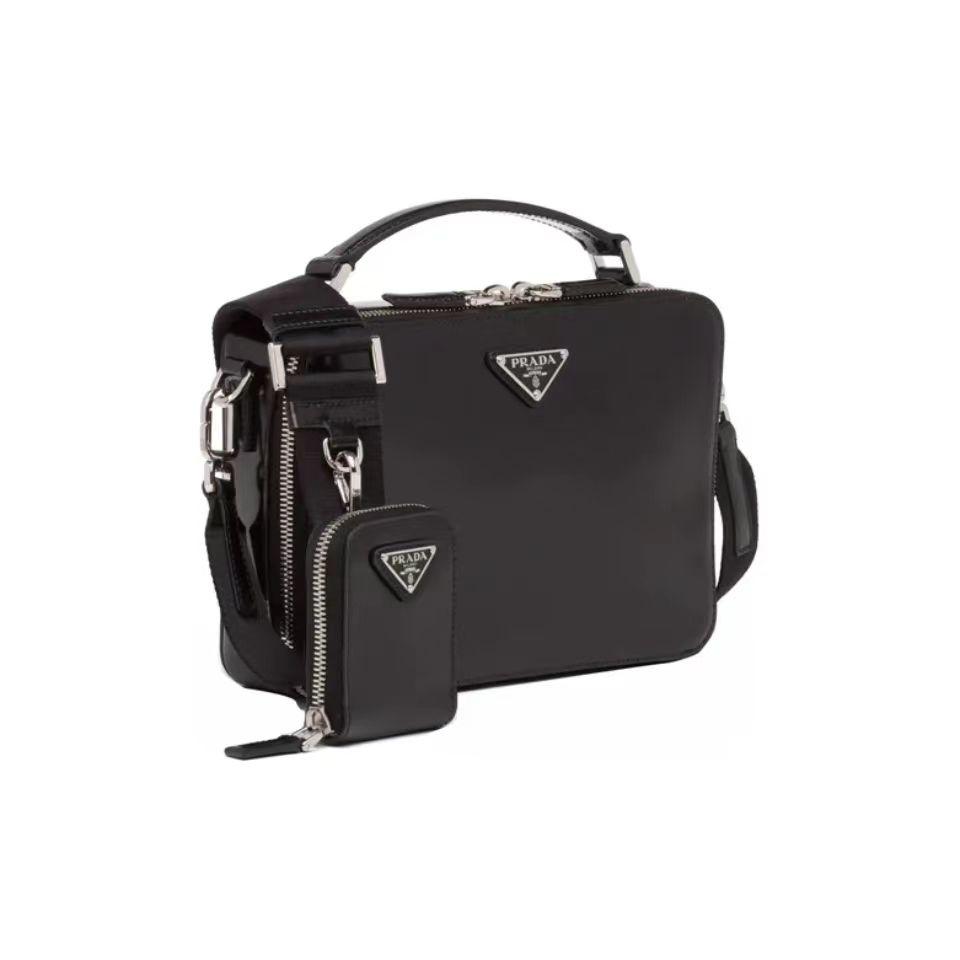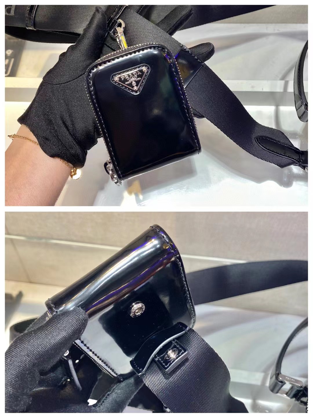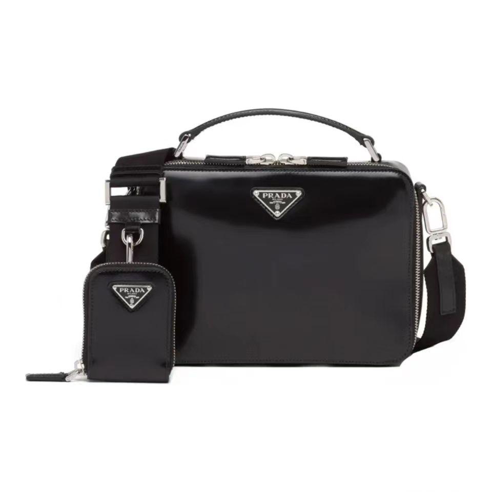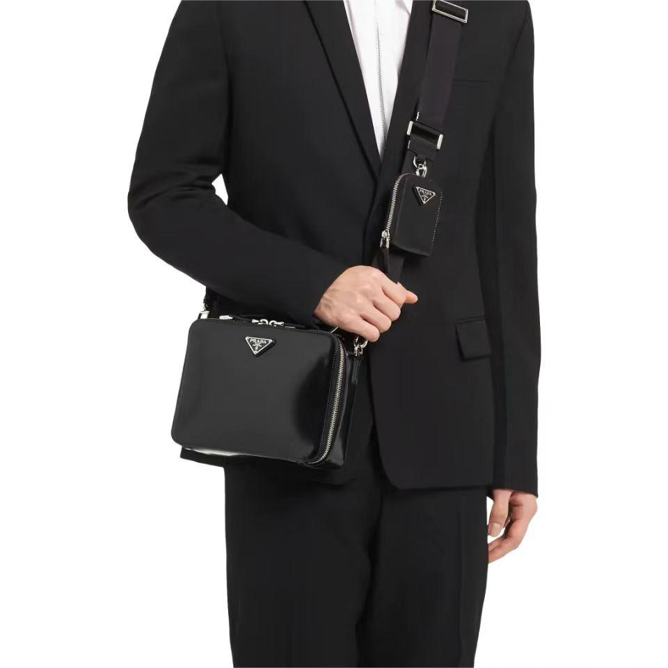 PRADA 新款相机包,这款线条简约的Brique手袋采用亮面皮革打造。复古亮面皮革显得非常独特,惯用于时尚界,配有可拆卸尼龙长肩带,肩带钩连一个可拆卸的迷你小袋,将优雅格调和实用性巧妙地融合在一起。上身效果非要酷,简约大气。