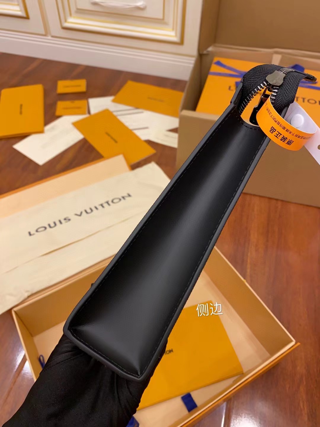 收到包包就打开包装,全方位拍照看看有没有瑕疵,品相完美,感谢!