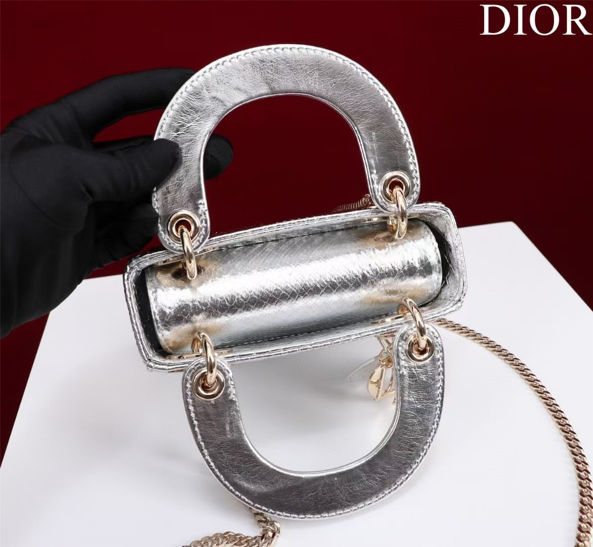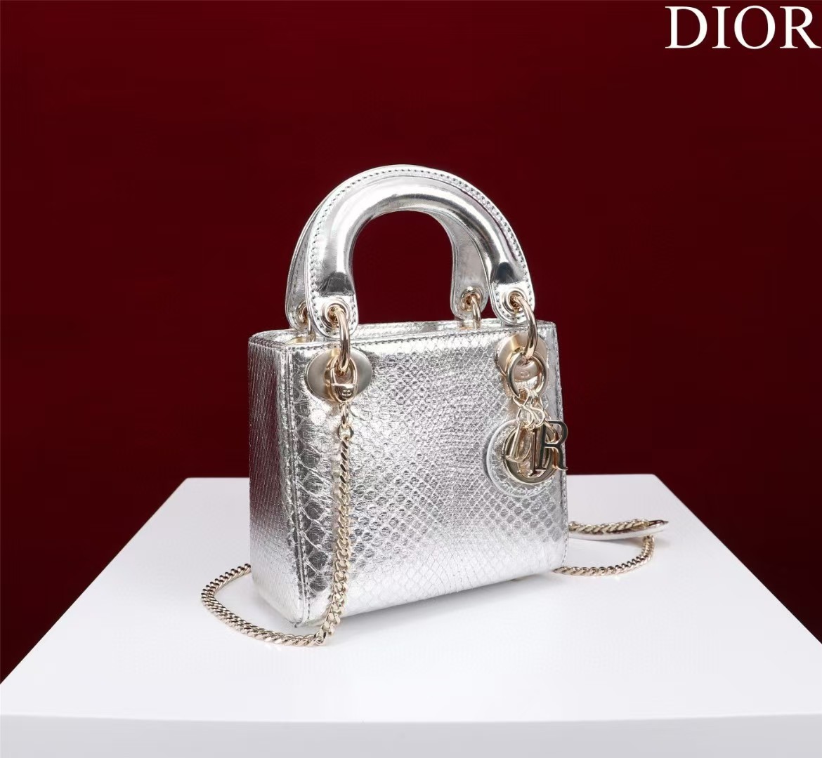 DIOR 迪奥 Lady戴妃三格银色蛇皮 戴妃包