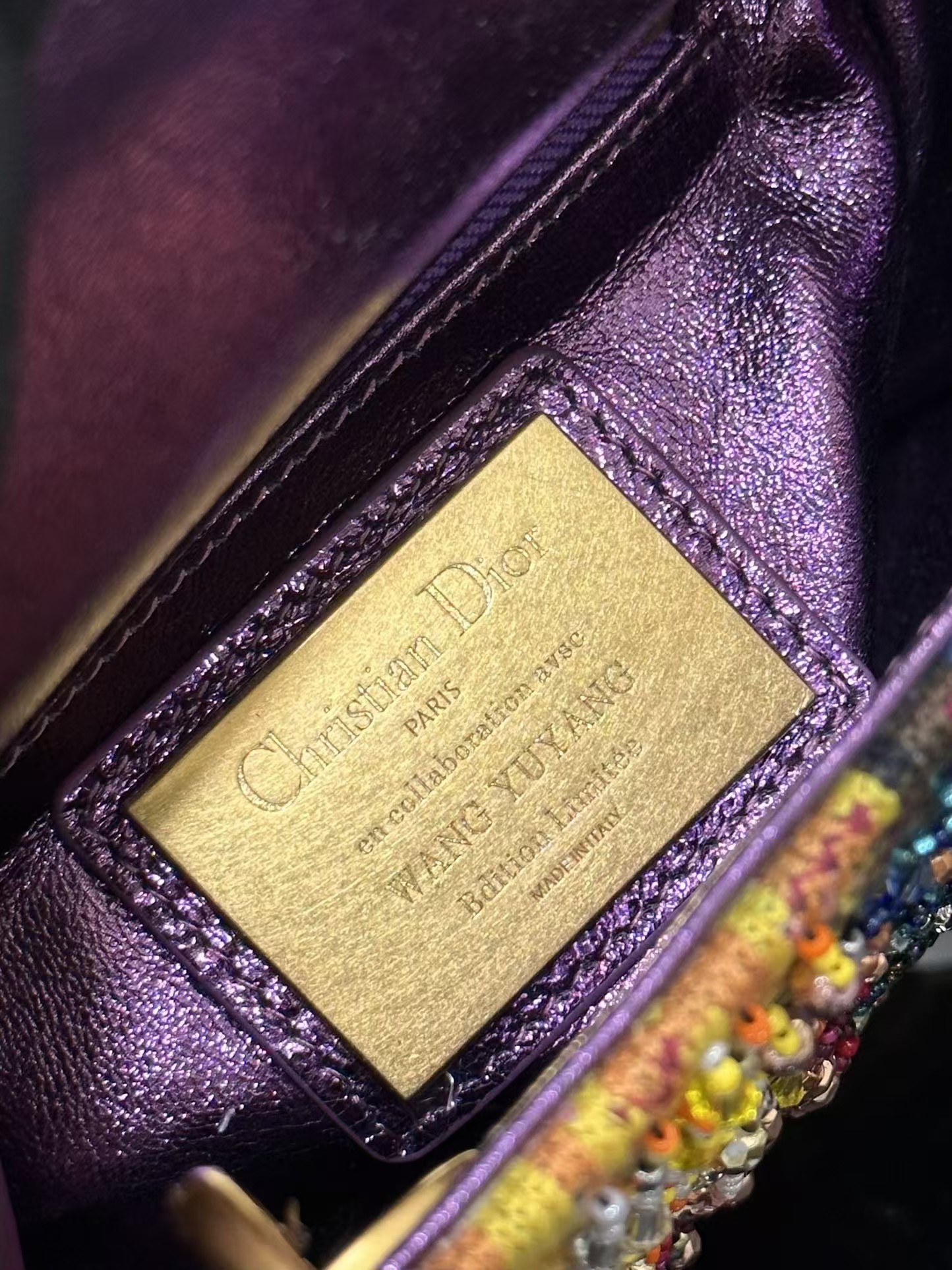 【介绍】 Lady Dior 三格刺绣艺术限量珠,内外全皮,内麦英文代表精美的珠子款式,饰以艺术自由绘彩限量刺绣,彰显 Dior 的精湛工艺与优雅气质。搭配鎏金色饰面金属“D.I.O.R.”吊饰,为精美的轮廓增添一分灵动。迷你款式,搭配可拆卸的链条肩带,可手提或斜挎,是晚装的理想良伴。可拆卸链条肩带,内部拉链口袋,可随心搭配其他刺绣肩带。