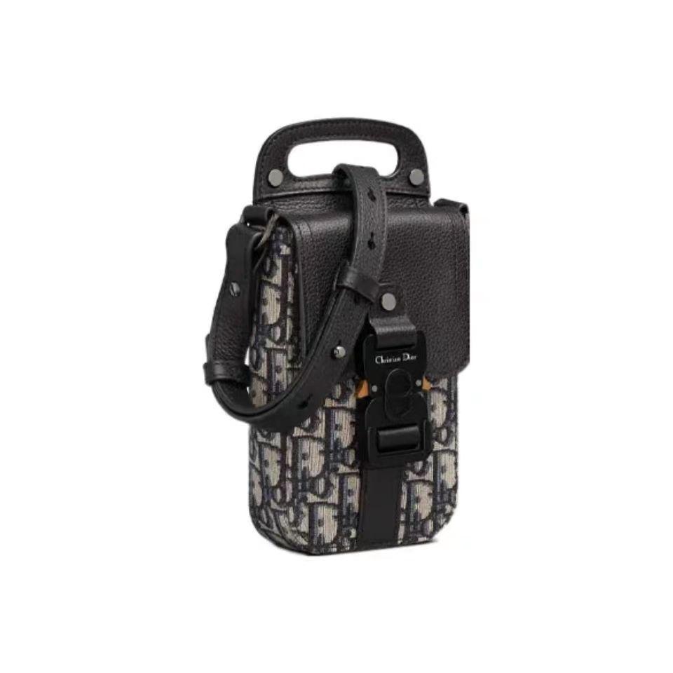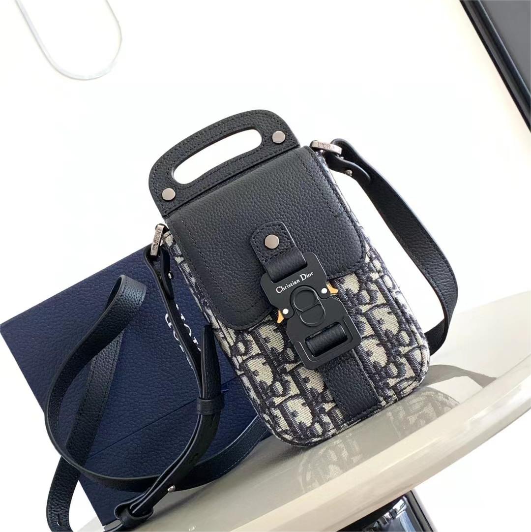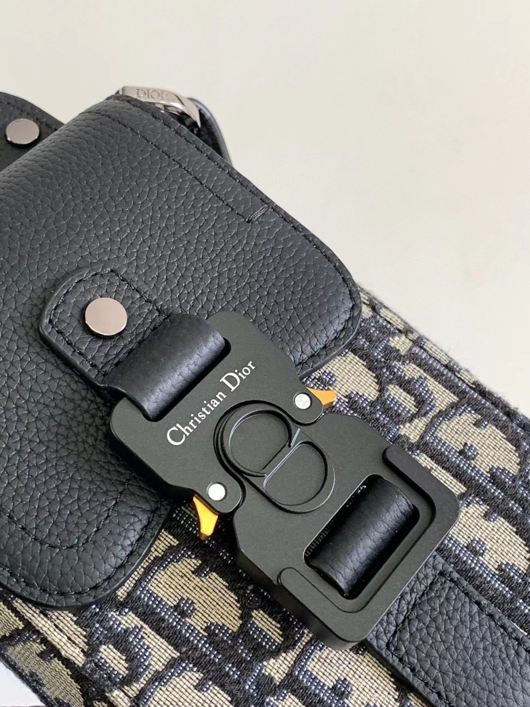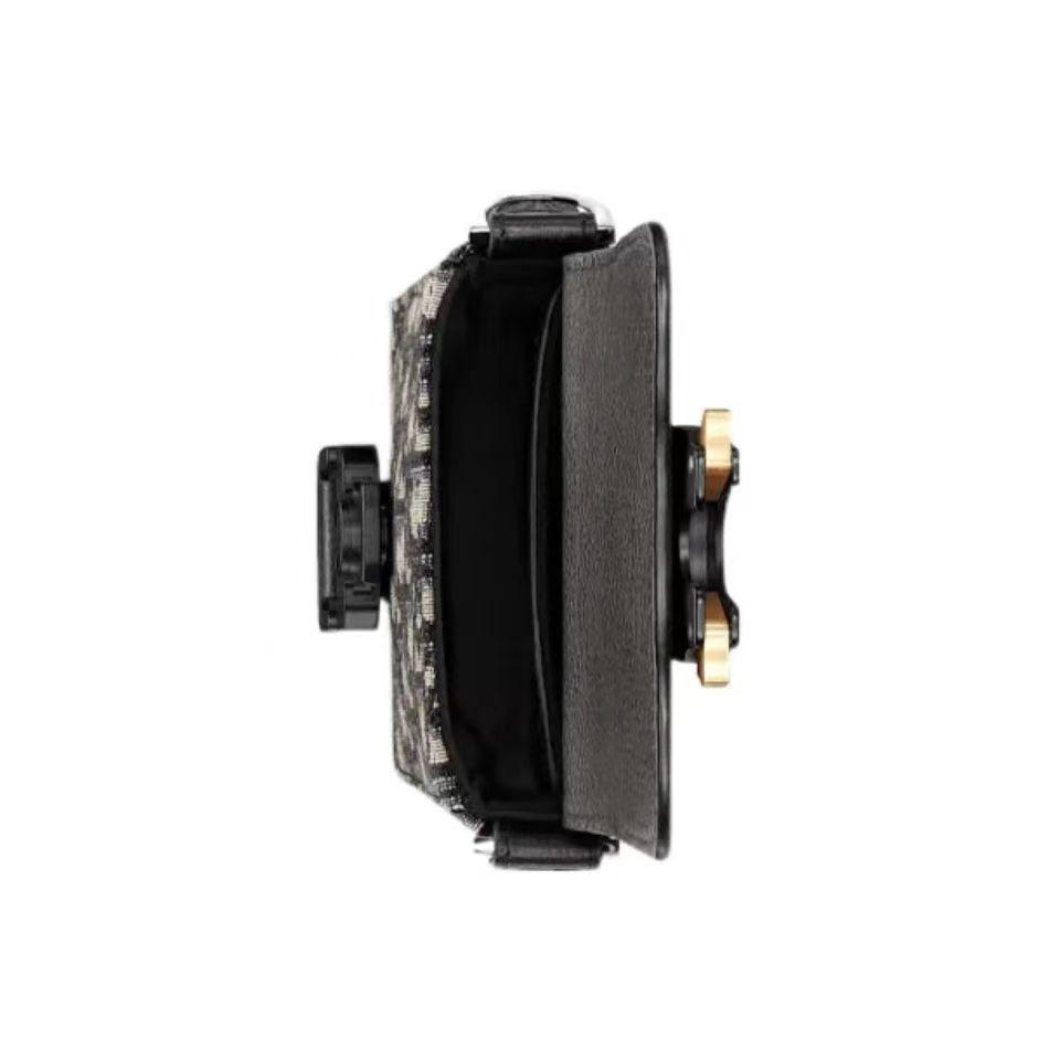 oblique 印花,搭配黑色粒面牛皮革马鞍翻盖,点缀以 christian dior 标志铝扣。搭配硬质手柄和可拆卸、可调节的皮革肩带,可手提、肩背或斜挎。