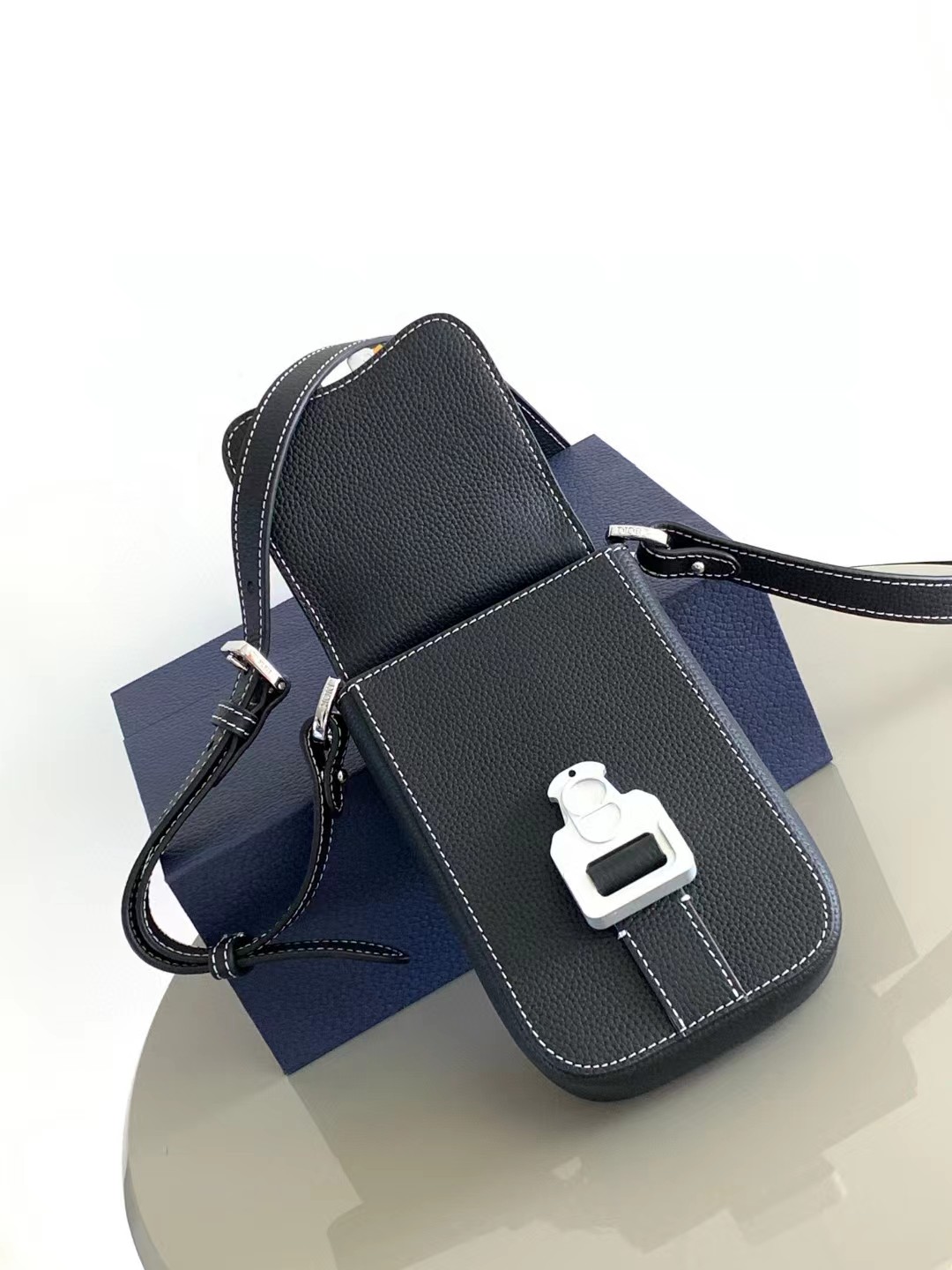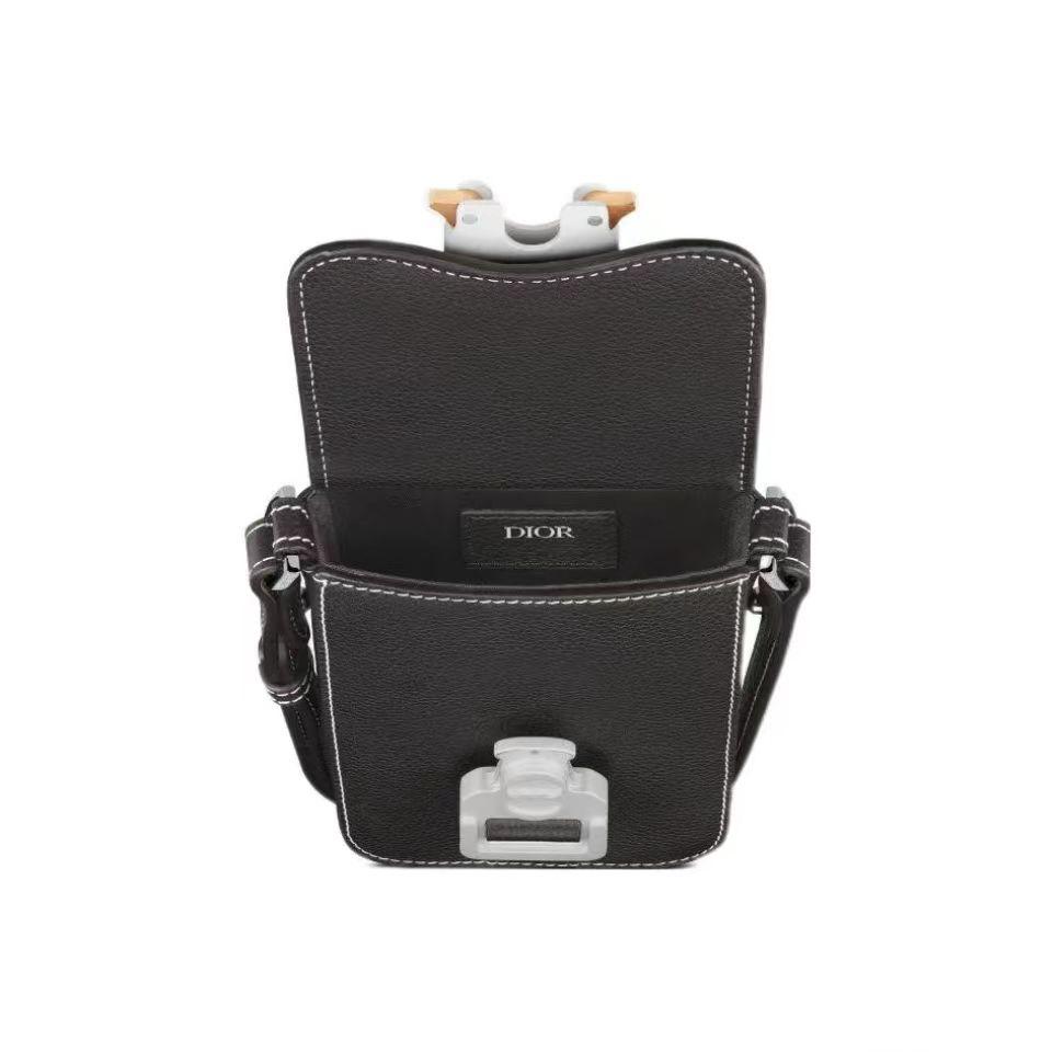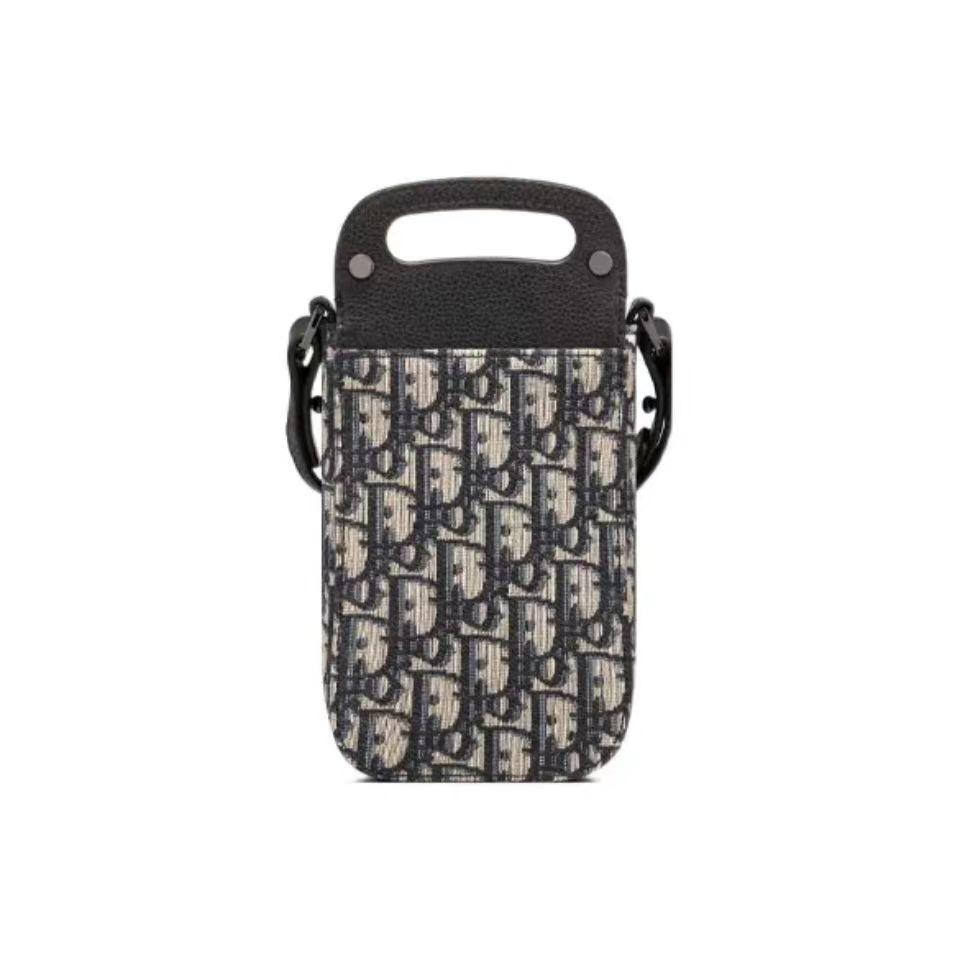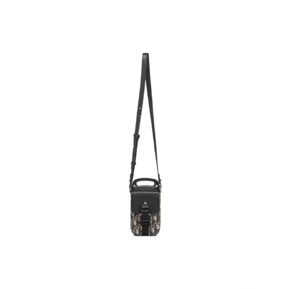 oblique 印花,搭配黑色粒面牛皮革马鞍翻盖,点缀以 christian dior 标志铝扣。搭配硬质手柄和可拆卸、可调节的皮革肩带,可手提、肩背或斜挎。