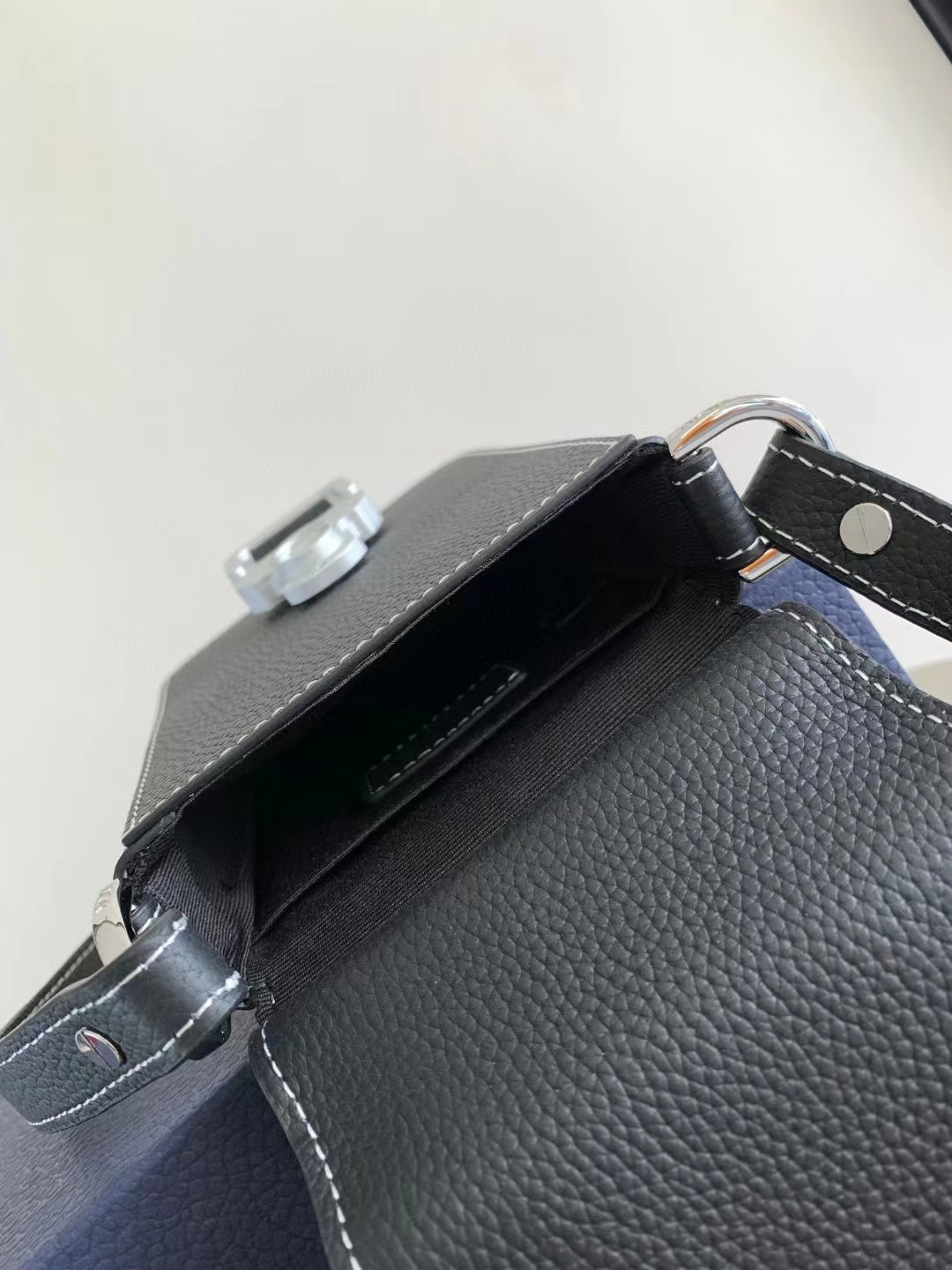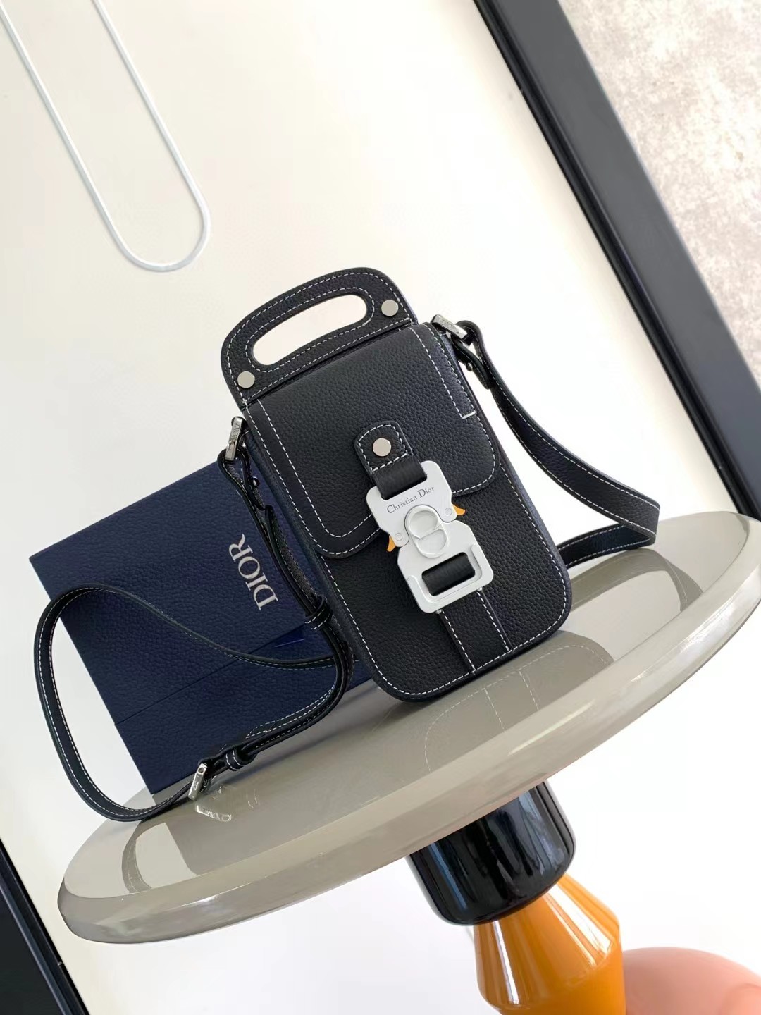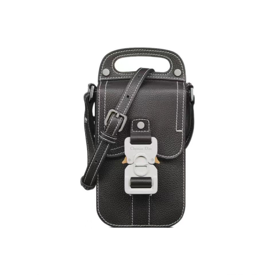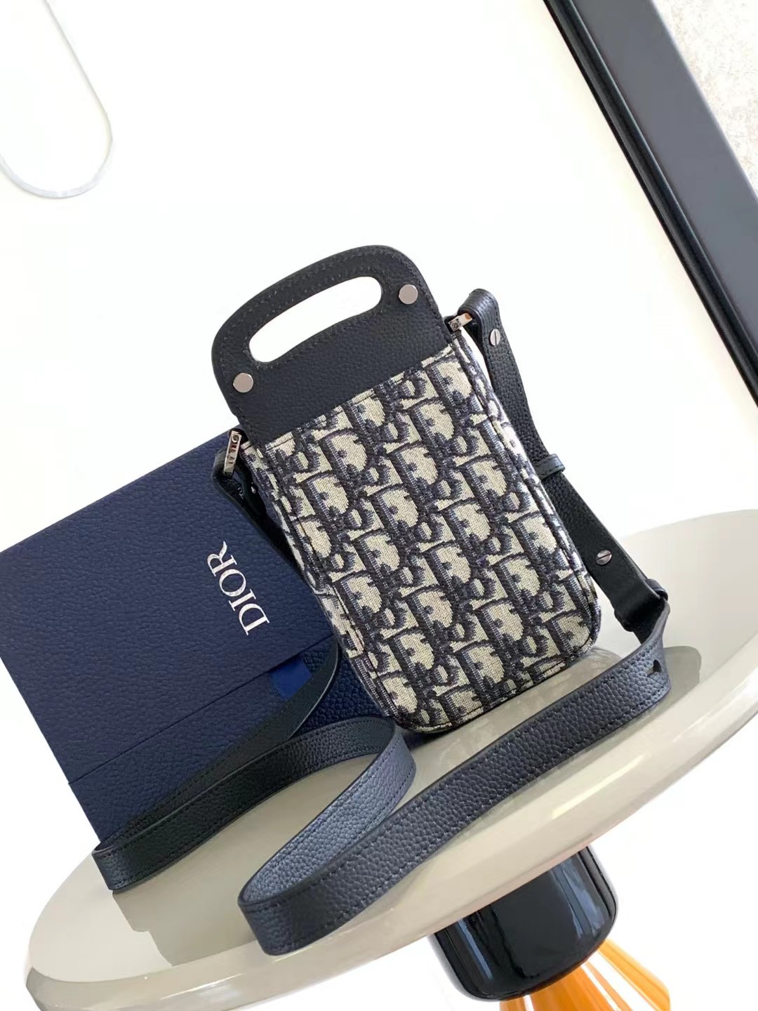 oblique 印花,搭配黑色粒面牛皮革马鞍翻盖,点缀以 christian dior 标志铝扣。搭配硬质手柄和可拆卸、可调节的皮革肩带,可手提、肩背或斜挎。
