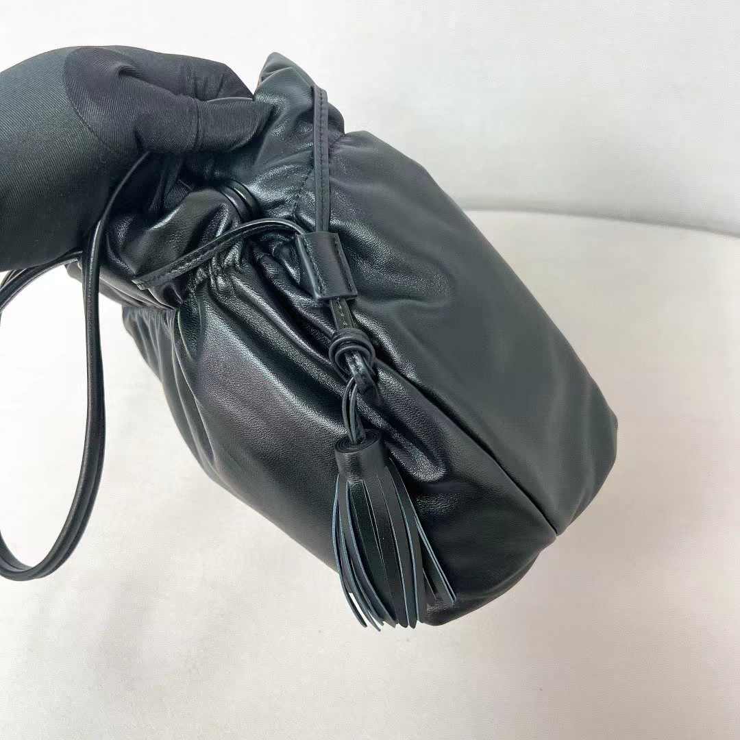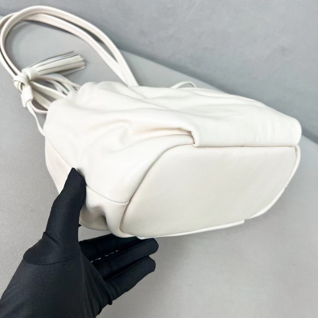 【介绍】 海外原单 2024 Summer 新品SoftGrain大福袋云朵包,采用别致高贵羊皮精心打造,优雅简洁的包身设计线条流畅优雅,正面经典logo金色三角徽标,袋口为抽绳加两边流梳设计,长手柄可手提可腋下背,内袋设有磁扣开合,设有拉链贴袋和一个手机袋满足精致收纳需求