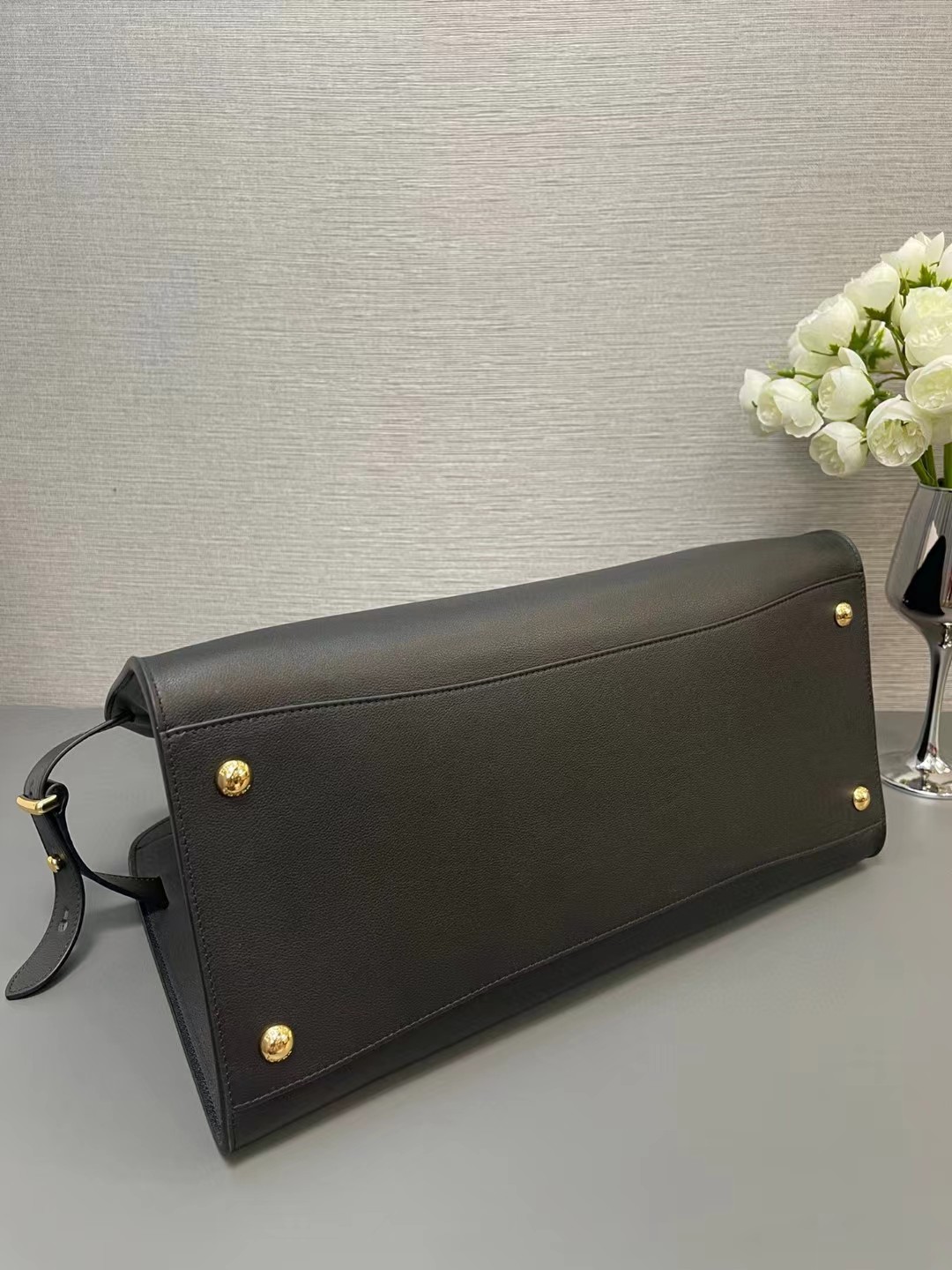 【介绍】 海外原单 新款托特包,这款托特包呈现挺括廓形,散发出现代气息与优雅魅力。容量充裕,搭配便捷的大开口,质感柔软的粒面皮革勾勒出时尚简约的线条。这款实用的配饰融合了简约而精致的细节,是品牌工匠精湛技艺的生动表达。点缀闪闪发光的金属五金配件与优雅的字母徽标,凸显手袋的精致简约之美。