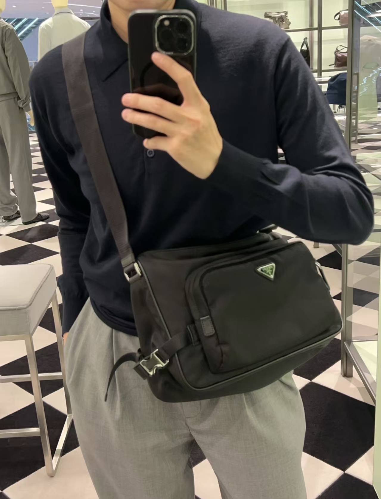 【介绍】 新款邮差包,这款单肩包的运动功能性由简约线条和实用现代细节定义。包身采用创新性的Re-Nylon再生尼龙材质打造,搭配Saffiano牛皮革细节,增添独特精致气息。多功能风格融合标志性元素,饰以涂珐琅金属三角形徽标,容量空间大,又是一款永久不过时爆款。