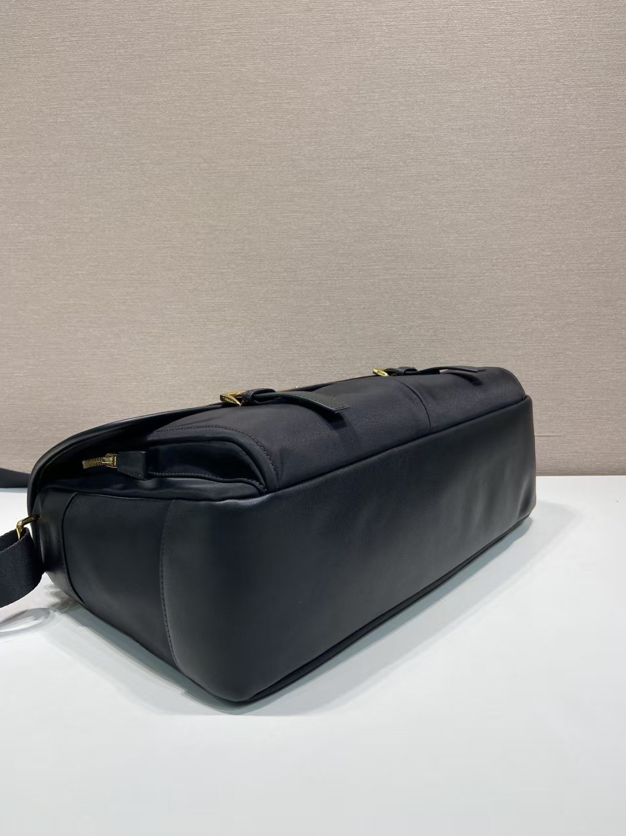 【介绍】 这邮差包采用尼龙面料小牛皮组合,饰有属三角标元素,配有可调式织物肩带,翻盖拉链开合口袋,和前幅2个大口袋设计。容量空间非常大,上身效果非常棒,赶紧入手吧,又是一款永久不过时爆款。