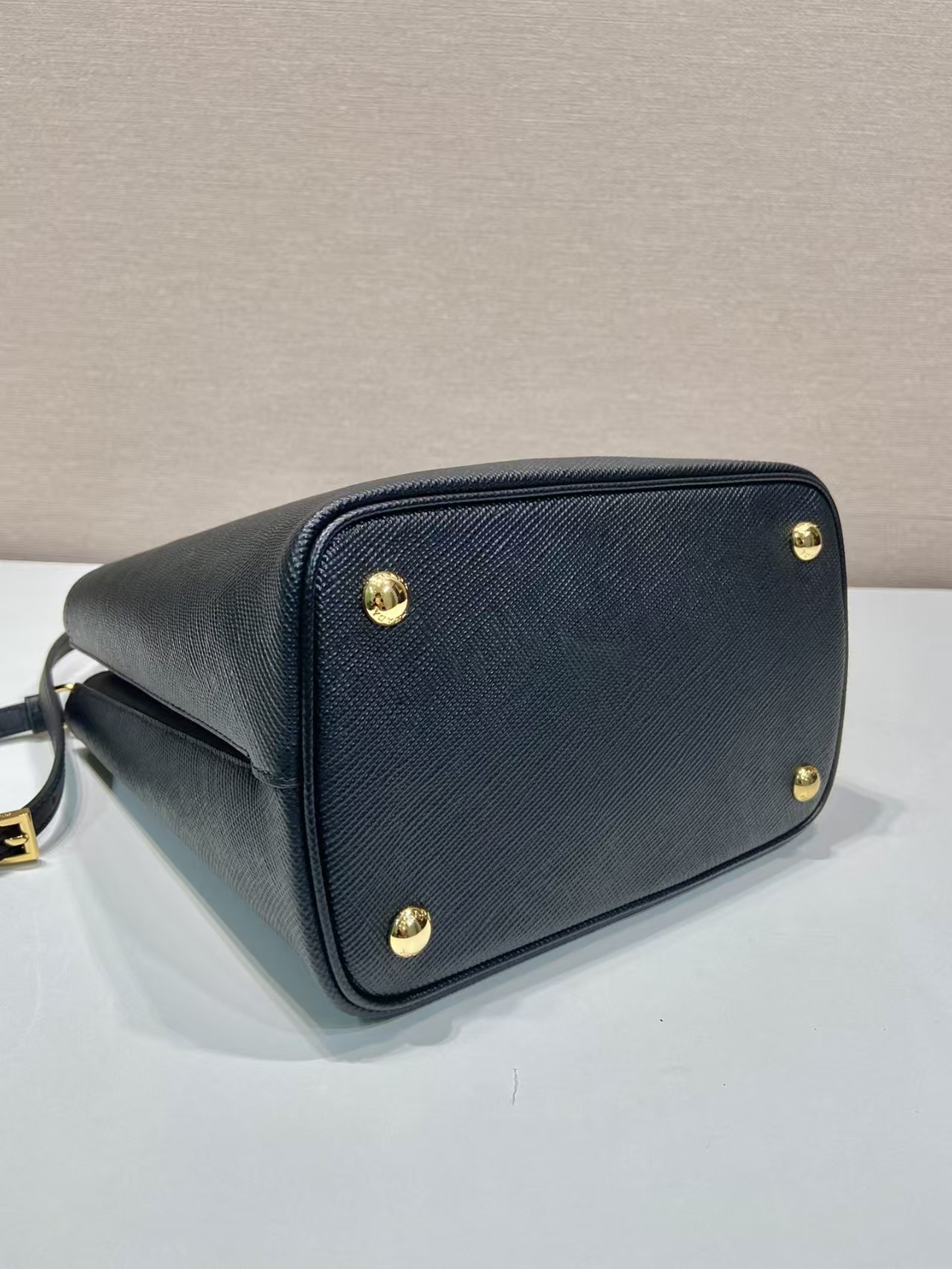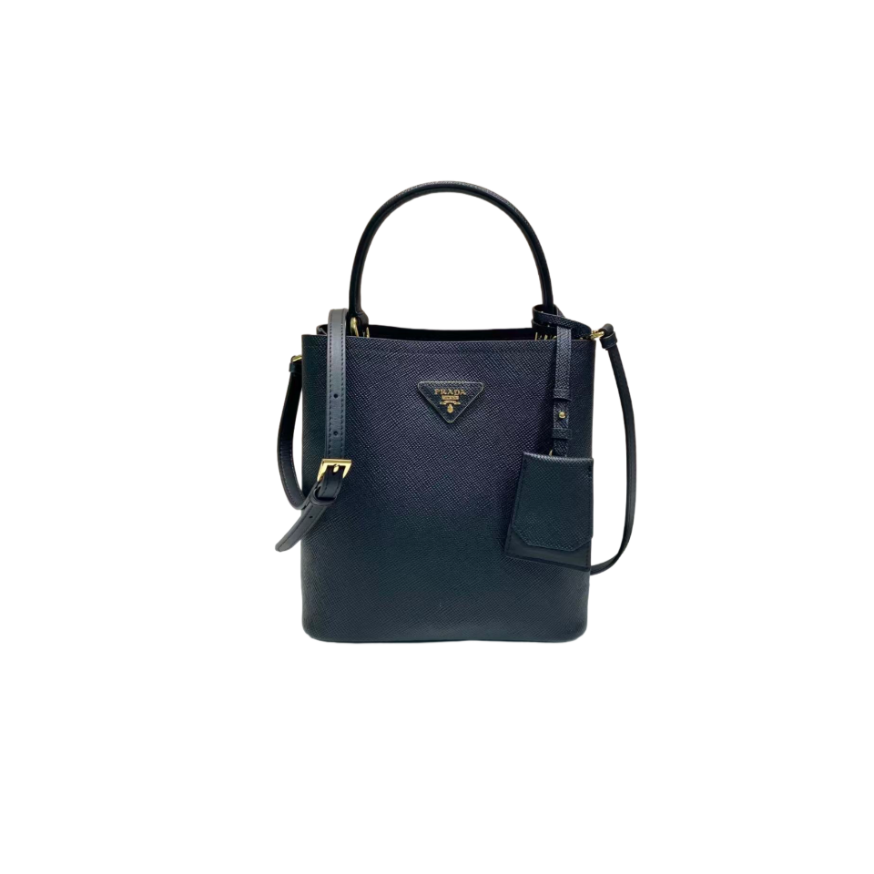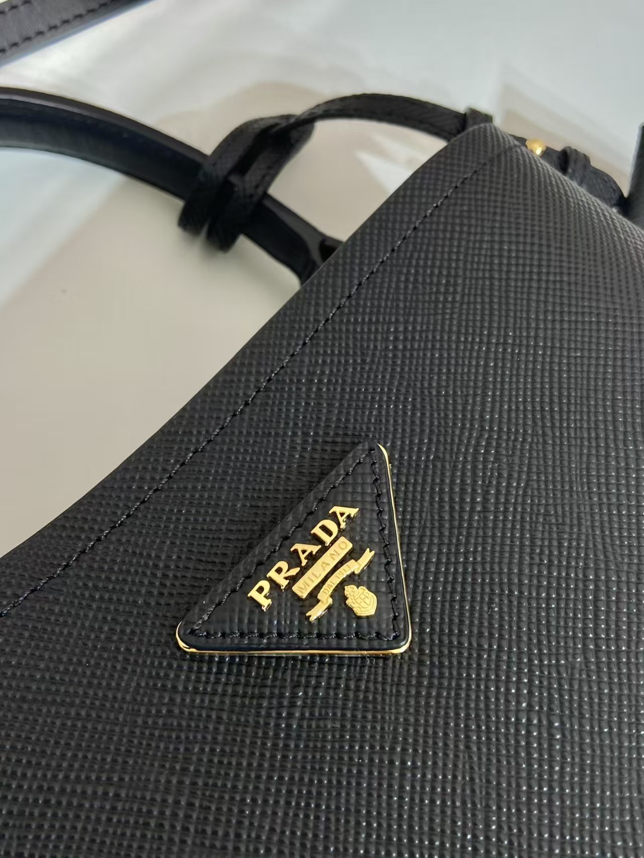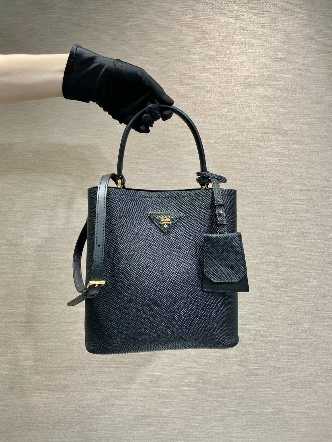 【介绍】 采用进口Saffiano皮革材质 ,可拆卸肩带、皮革铭牌和金属徽标相得益彰。皮革包覆式磁扣扣合的中央口袋 Saffiano皮革三角形徽标 撞色软羊革衬里, 这款 Double手袋款式优雅,醒目而别致,又是一款火爆款.