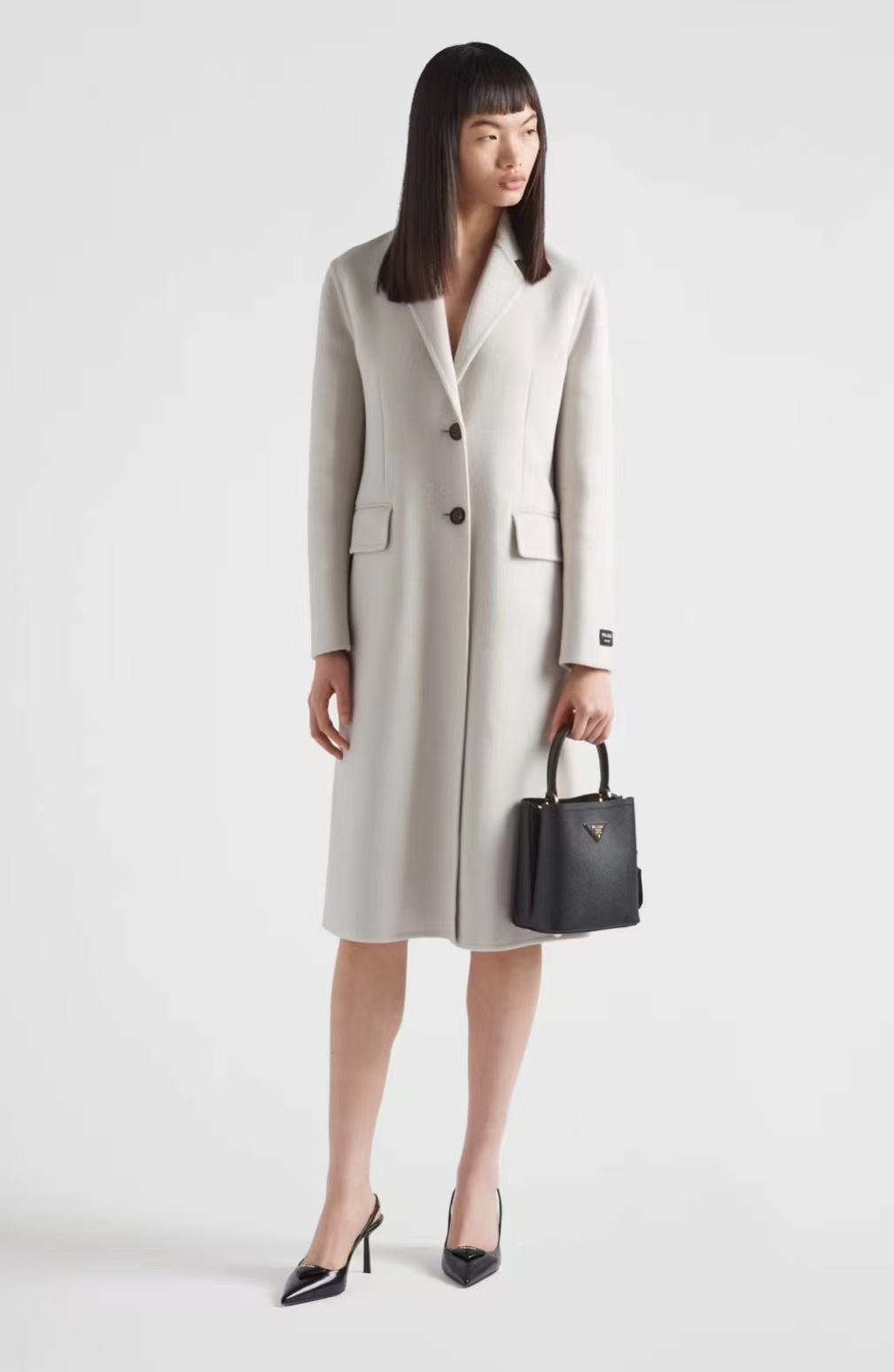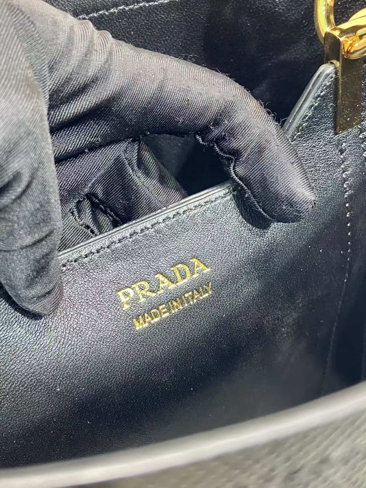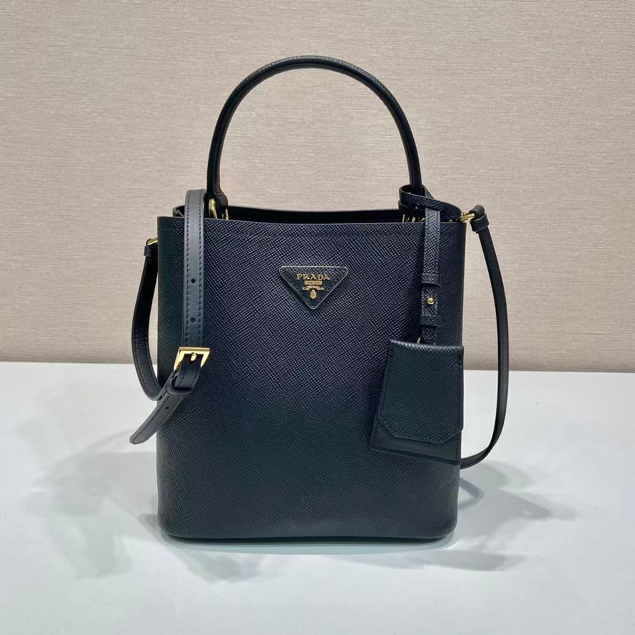 【介绍】 采用进口Saffiano皮革材质 ,可拆卸肩带、皮革铭牌和金属徽标相得益彰。皮革包覆式磁扣扣合的中央口袋 Saffiano皮革三角形徽标 撞色软羊革衬里, 这款 Double手袋款式优雅,醒目而别致,又是一款火爆款.