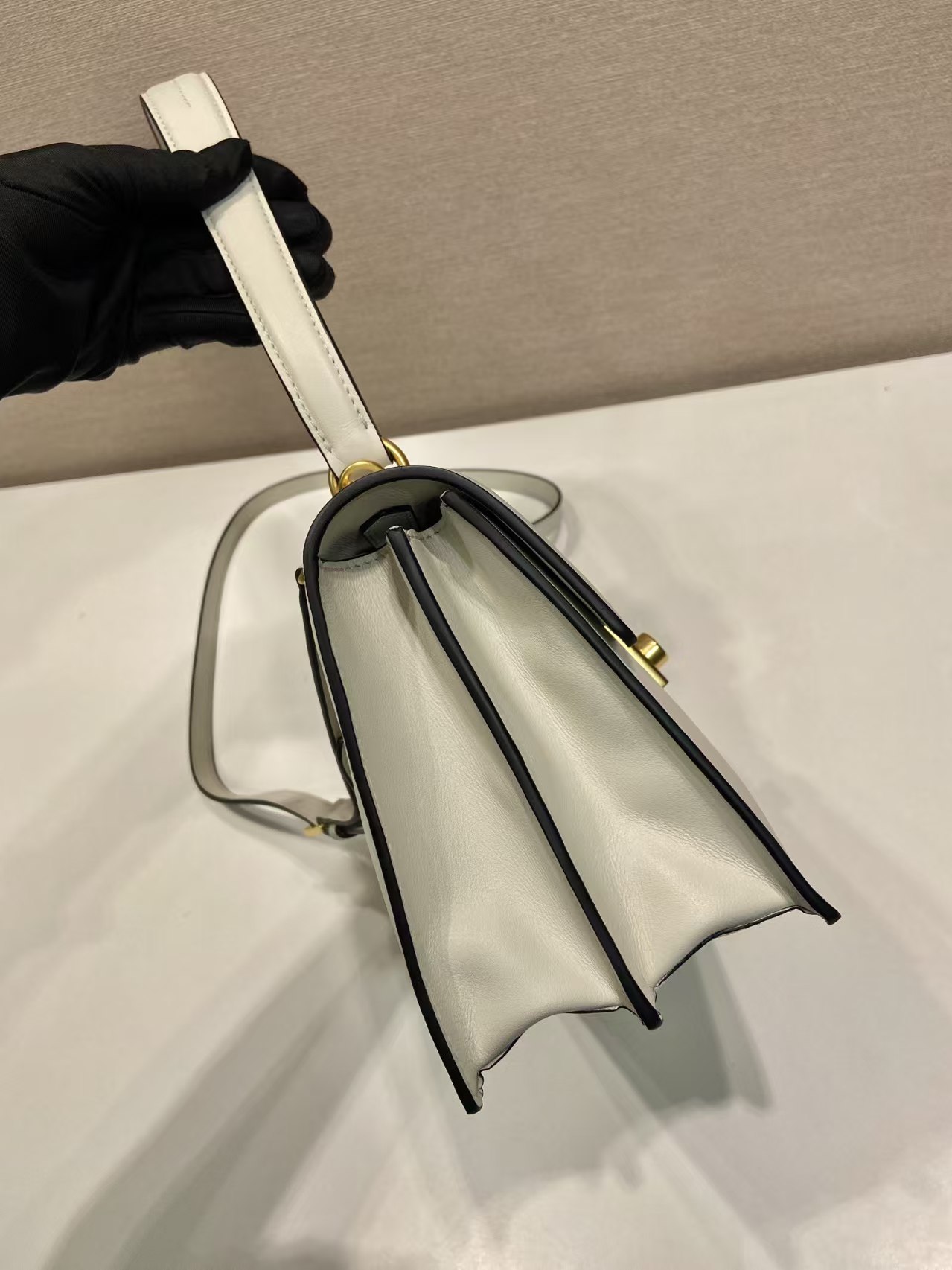 收到包包就打开包装,全方位拍照看看有没有瑕疵,品相完美,感谢!