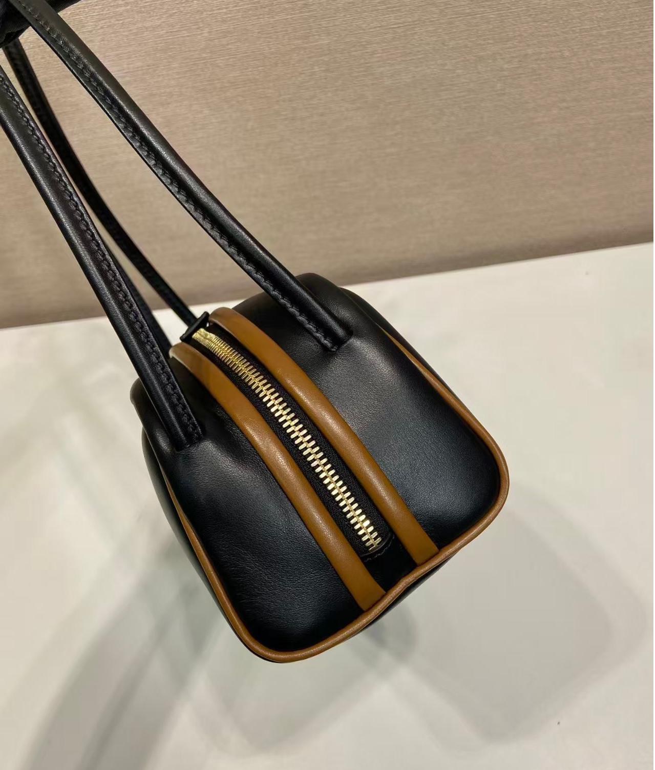【介绍】 新款保龄球,这款保龄球包袋巧妙融合了经典与现代元素。采用进口牛皮和内配进口羊皮,袋口撞色包边设计,显得格外时尚,拉链开合设计更加实用,字母徽 装饰独具特色。容量空间大,又是一款永久不过时爆款。