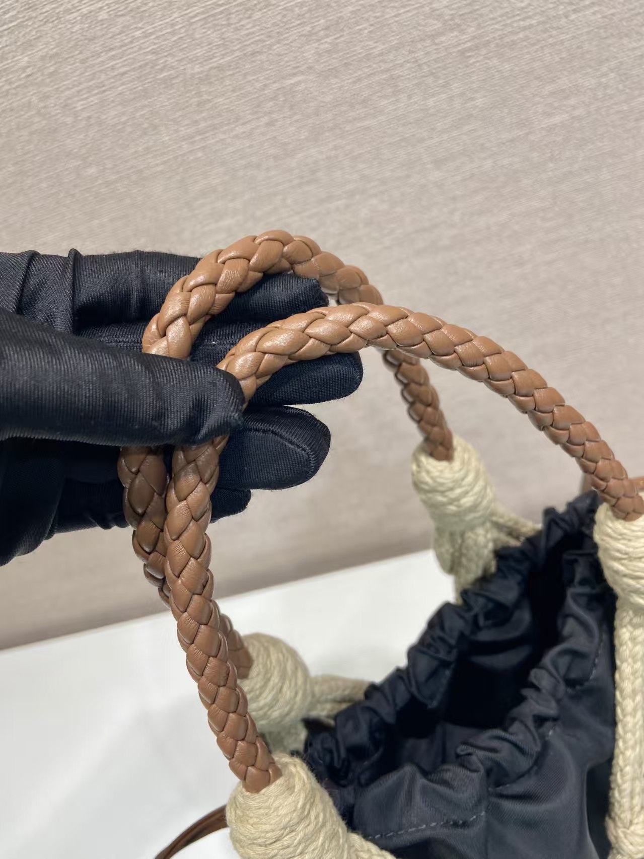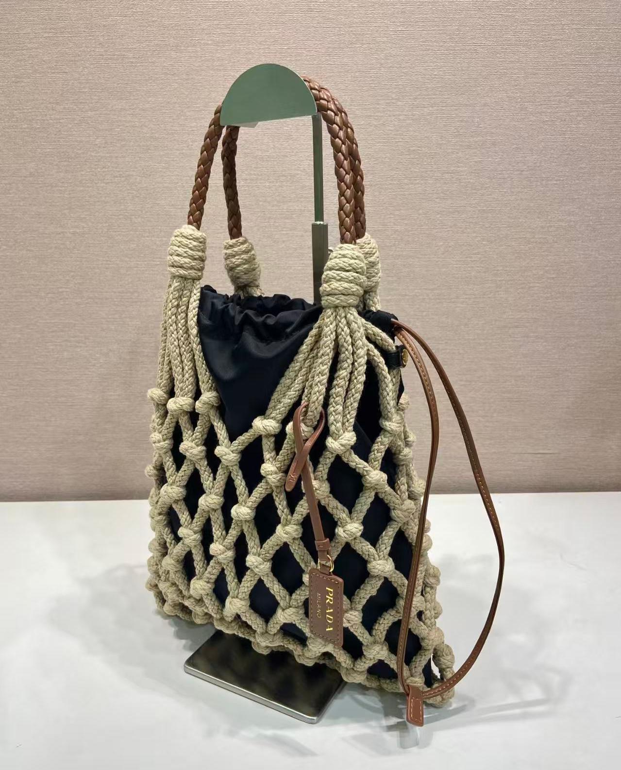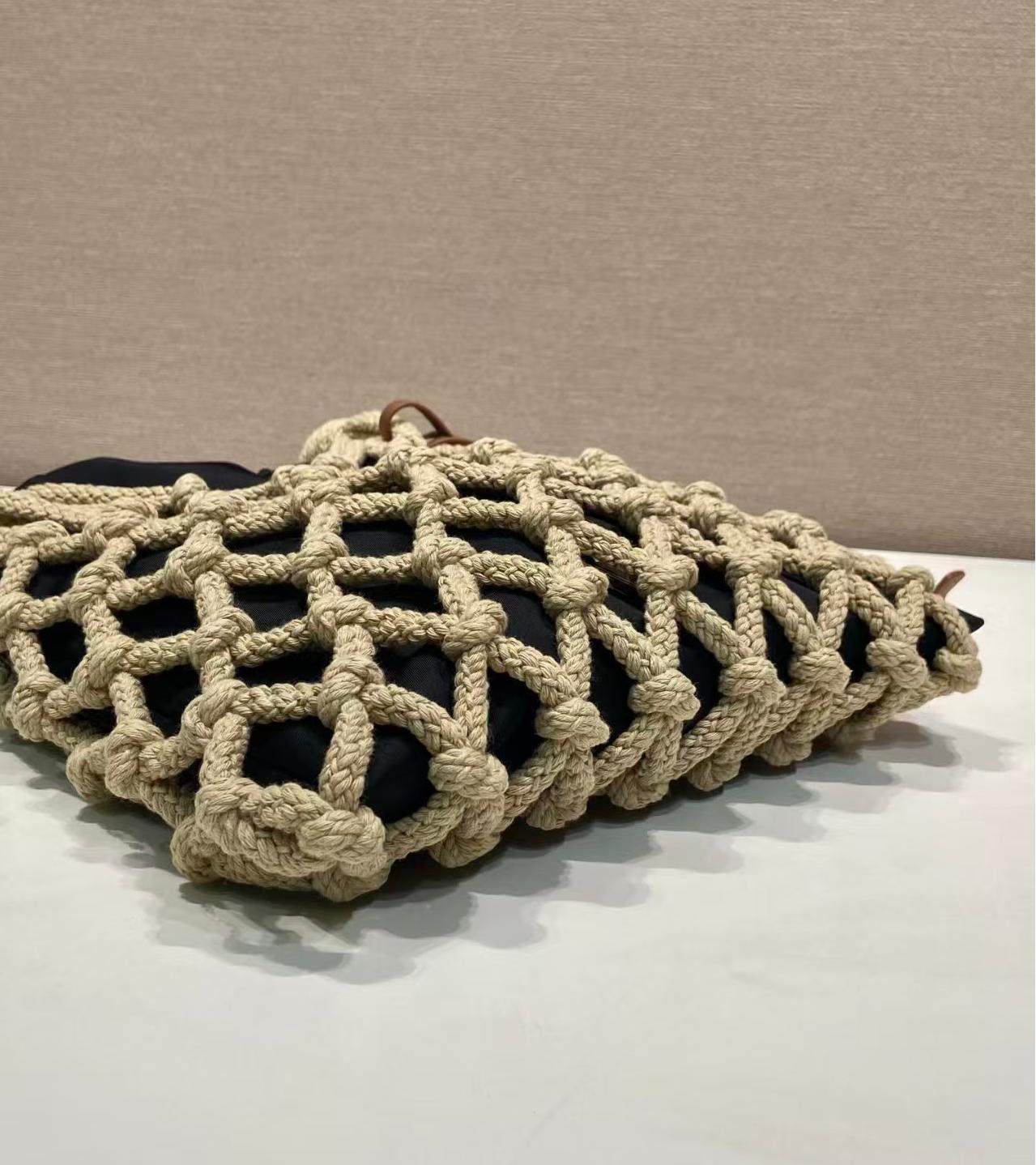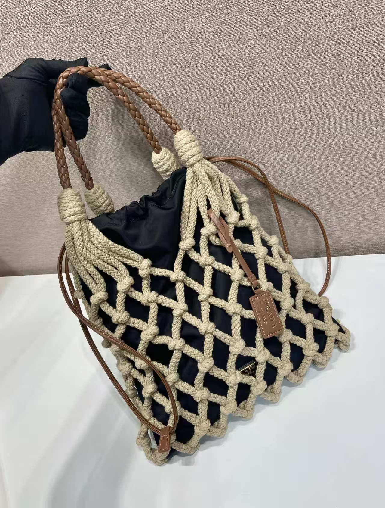 【介绍】 这款手工线绳包的macramé设计,采用纯手工编织和尼龙面料,体现了清新的优雅和真实的自由感。编织皮革手柄,可拆卸皮革吊坠和金属硬件,可拆卸抽绳,二合一设计,容量空间大,非常时尚。