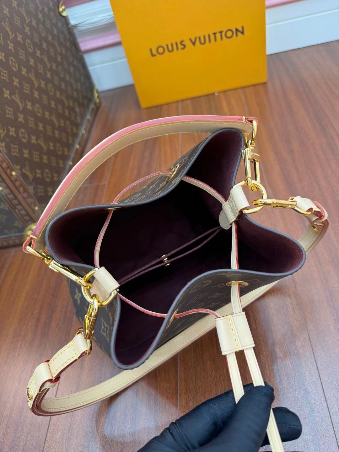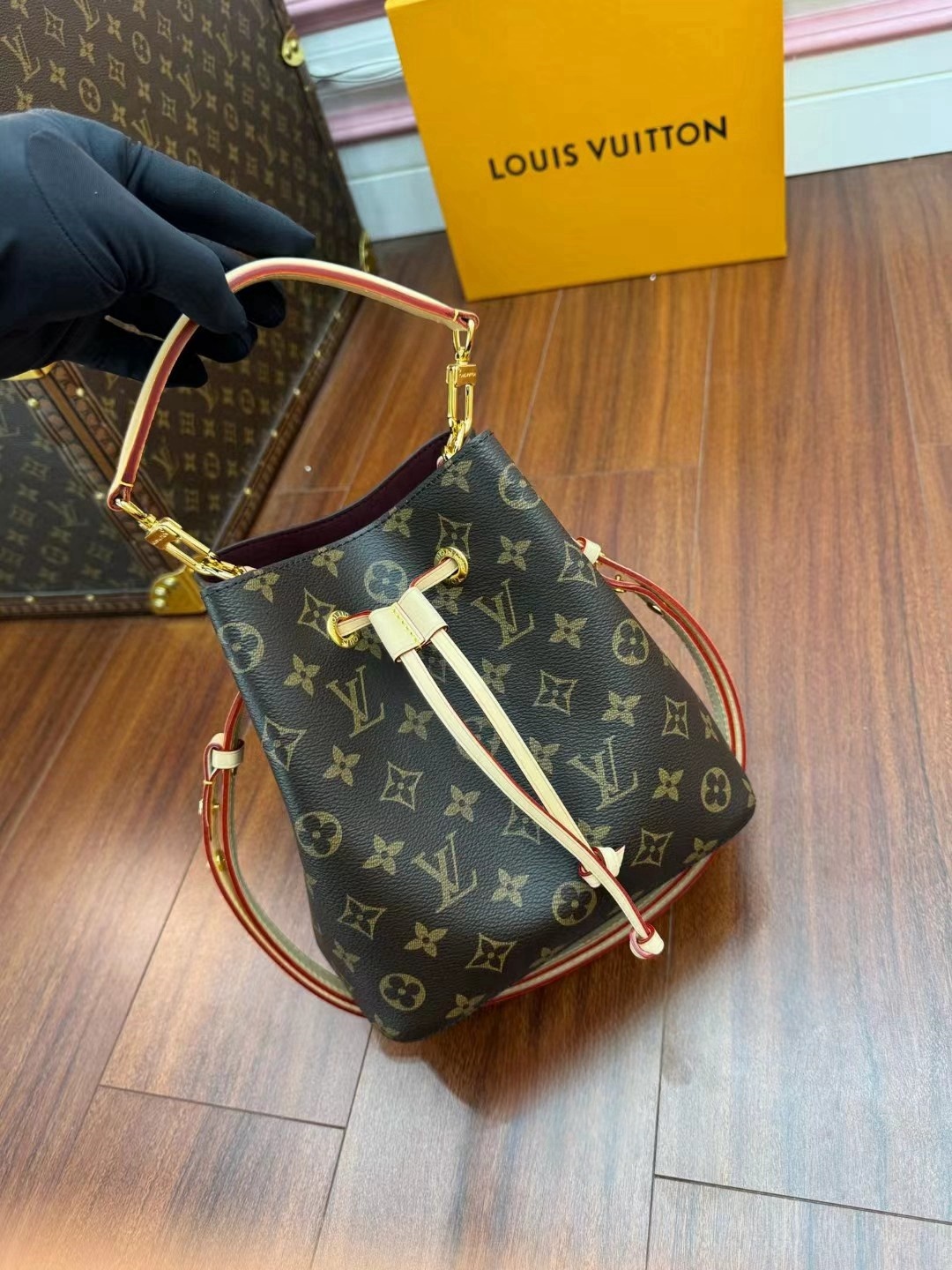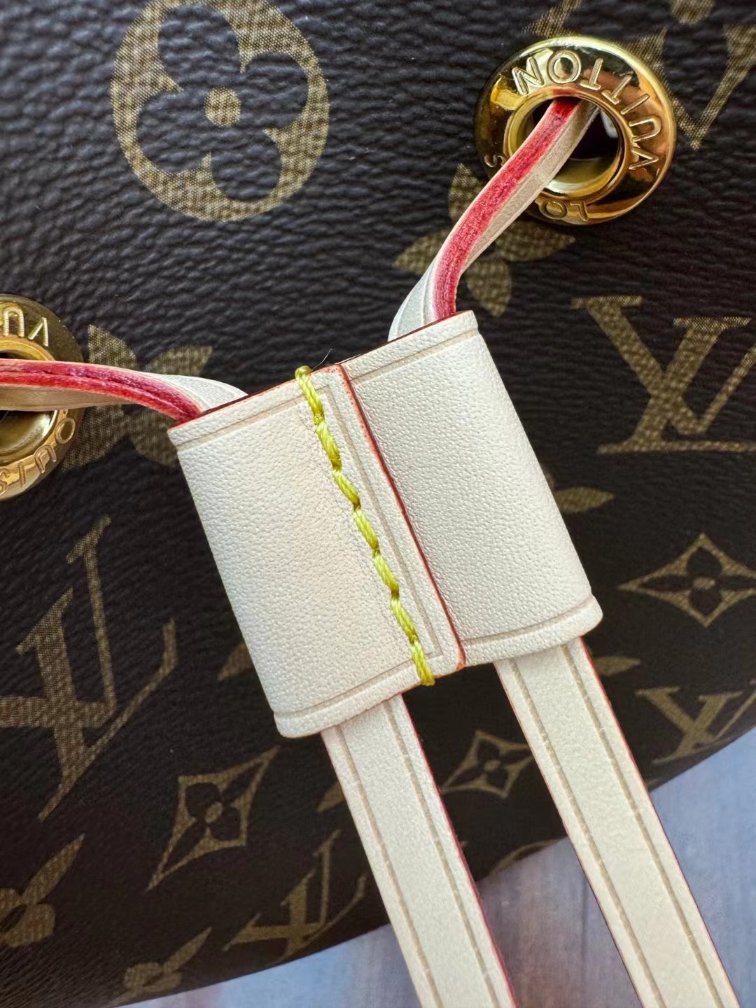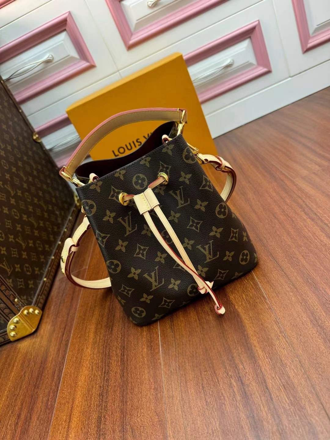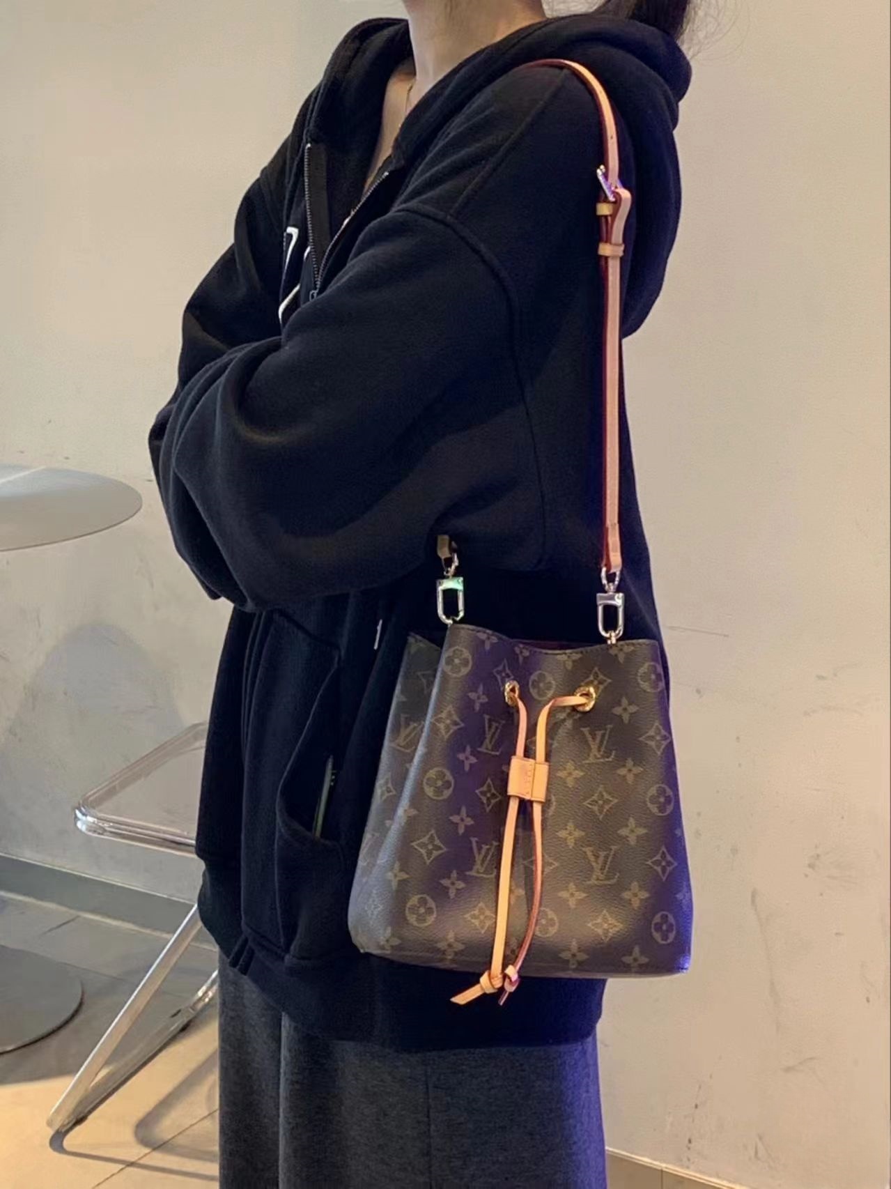 【介绍】 海外原单 电子芯片内码 NéoNoé BB 手袋沿袭路易威登经典的 Noé 水桶包设计,精巧尺寸散发清新活力。Monogram 帆布勾勒柔和线条 与皮革抽绳和饰边共同营造观感和触感的对比。顶部提手可拆卸,缀饰按扣的肩带可调节,打造手提和斜挎造型。