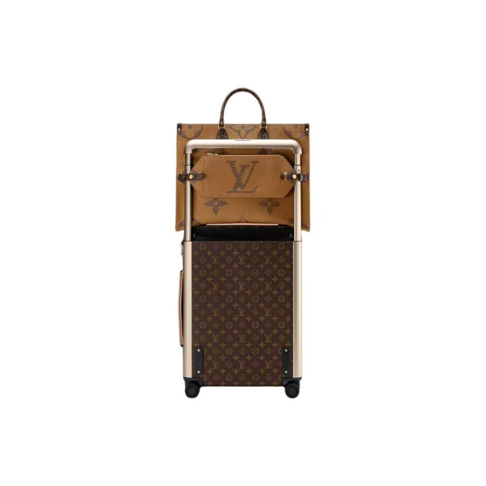 【介绍】 海外原单 电子芯片内码。本款 OnTheGo Voyage 托特包以 Giant Monogram 帆布和 Monogram Reverse 帆布分饰两面,演绎二合一的设计理念:内层的拉链手拿包可巧妙化身腰包,收纳护照与手机。考究设计方便固定于 LV Horizon 行李箱,可拆卸并调节肩带实现自在出行体验。