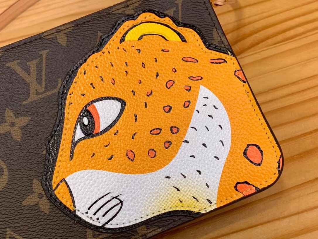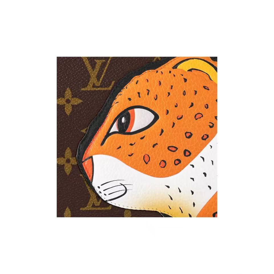 【介绍】 豹子动物麻将包系列 Lexington Ms18手拿包(动物)Nicolas Ghesquière 和艺术家孙一钿的合作系列。Monogram 帆布铺陈粒面牛皮革萌豹贴饰,为玲珑构型融入艺术家的视觉名片。明丽内衬呼应动物形象的原作背景,可拆卸天然皮革肩带再添功能细节。