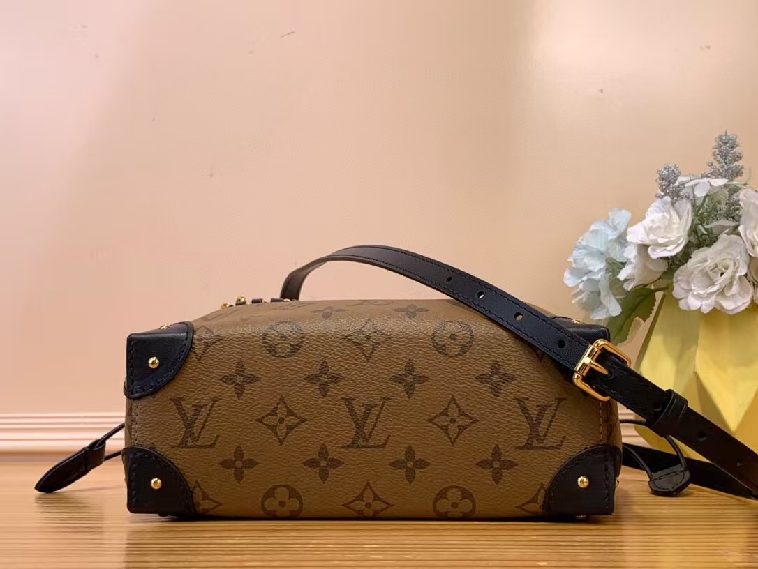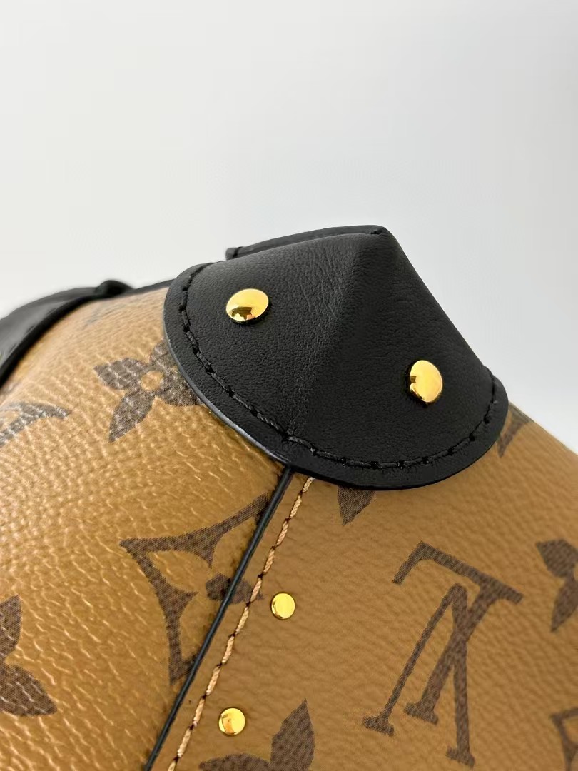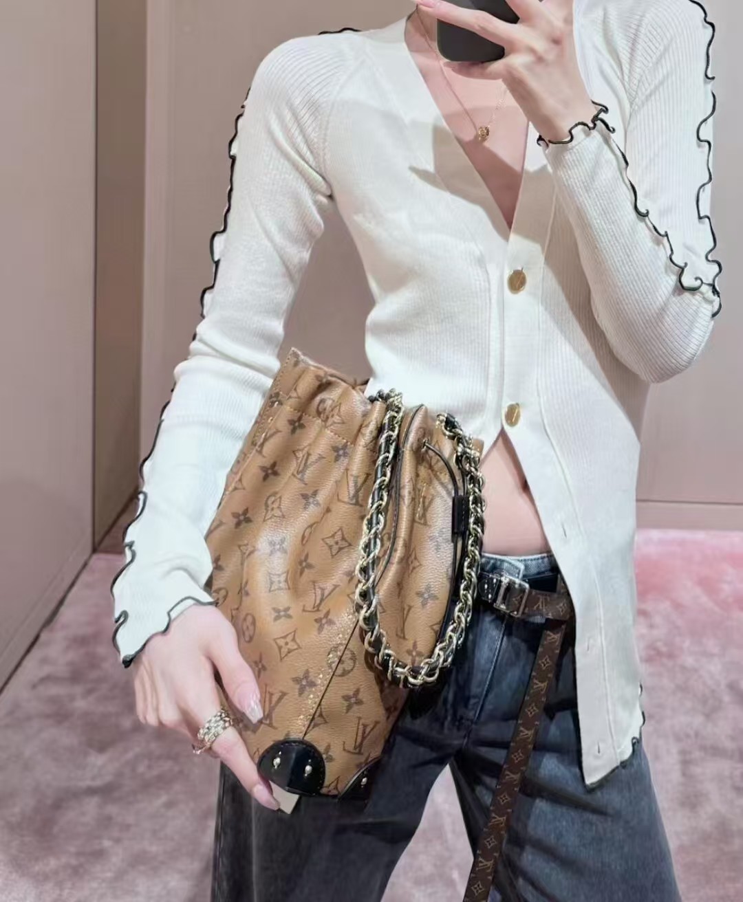 【介绍】 【NOÉ TRUNK 小号手袋 】 黄花/铆钉。2025 Cruise Xl早春系列重绎经典 Noé 手袋,为 Trunk 家族再添新成员。Monogram Reverse 帆布包身配有耀目编织链条,皮革包角和抽绳开合延续标志性细节,手提或斜挎皆可再现秀场造型。
