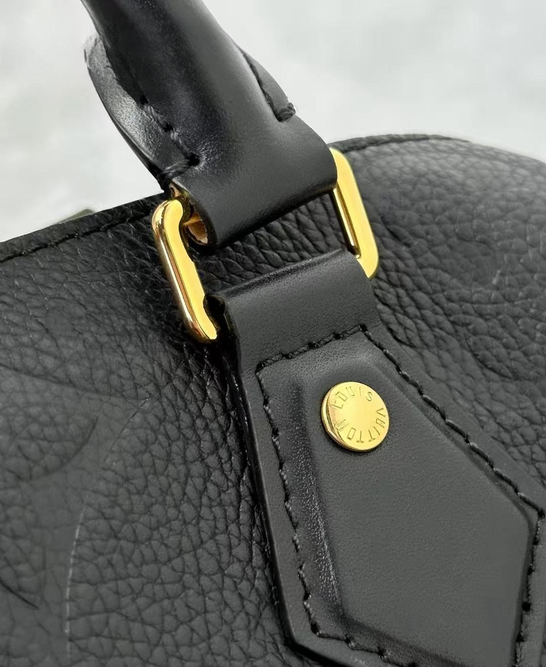 【简介】 Monogram Empreinte 压纹粒面牛皮革,饰有 LV 标识与 Monogram 花卉图案,此款 Speedy Bandoulière 20 手袋堪称摩登经典之作。设计灵感源于 1930 年代的 Speedy 旅行箱系列,还原最初的造型与铰接式手柄。配有皮革金属链包带,便于肩背和斜挎。