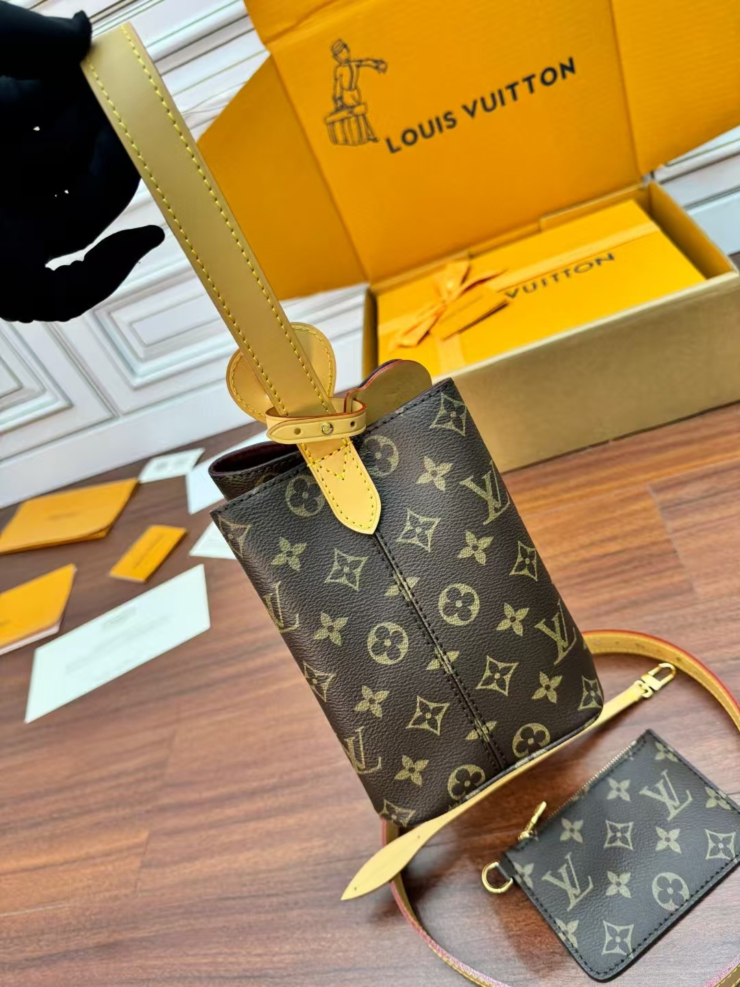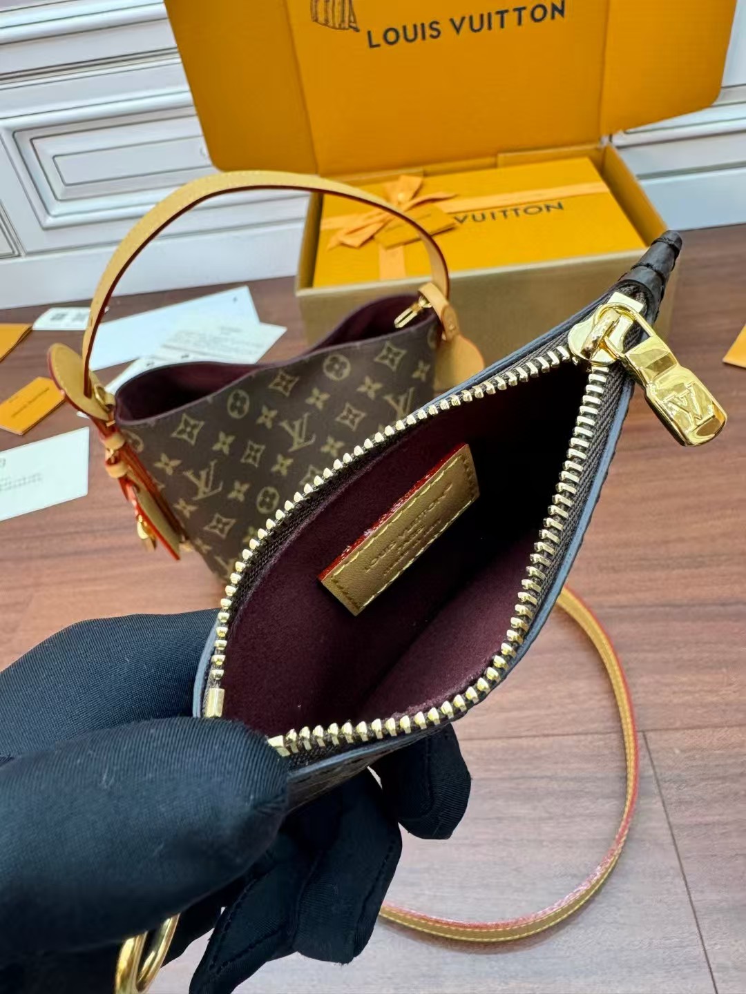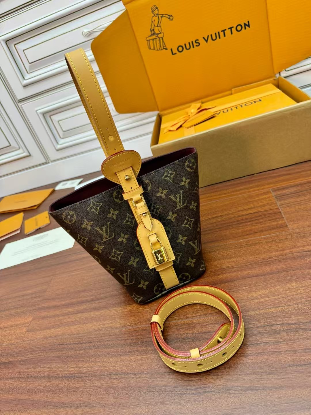 【包装】本款 All In BB 手袋为 Monogram 帆布搭配亮泽金属件,以标志性挂锁和名牌彰显经典格调。可调节肩带延续品牌制箱传承,皮革肩带增添斜挎和肩背选择。可折叠设计实现廓形的自如收放,充裕空间成就日常佳选。