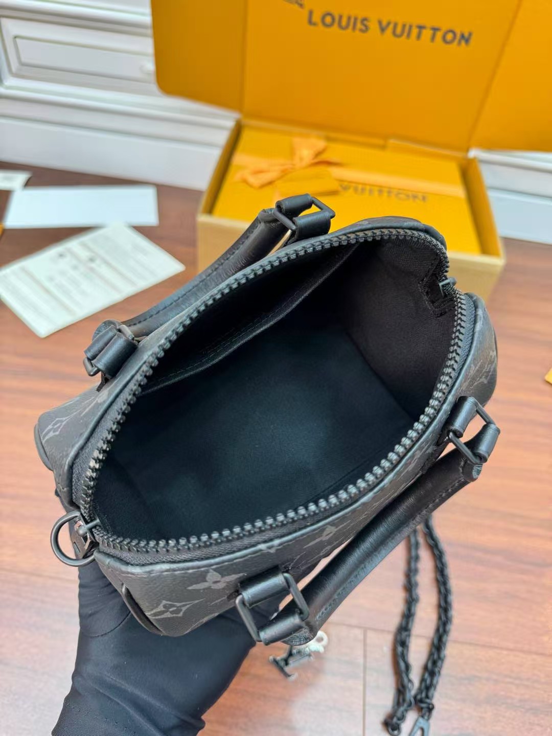 收到包包就打开包装,全方位拍照看看有没有瑕疵,品相完美,感谢!