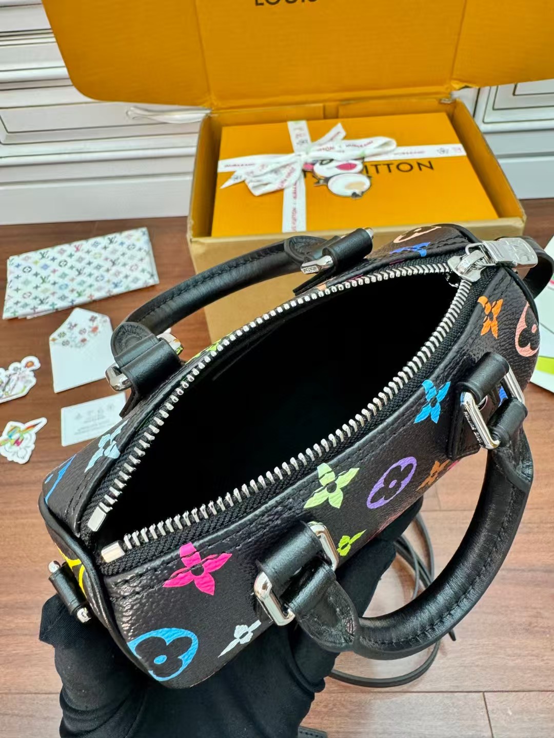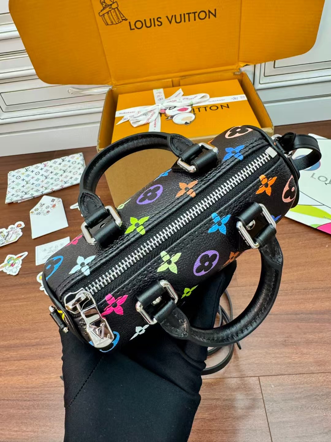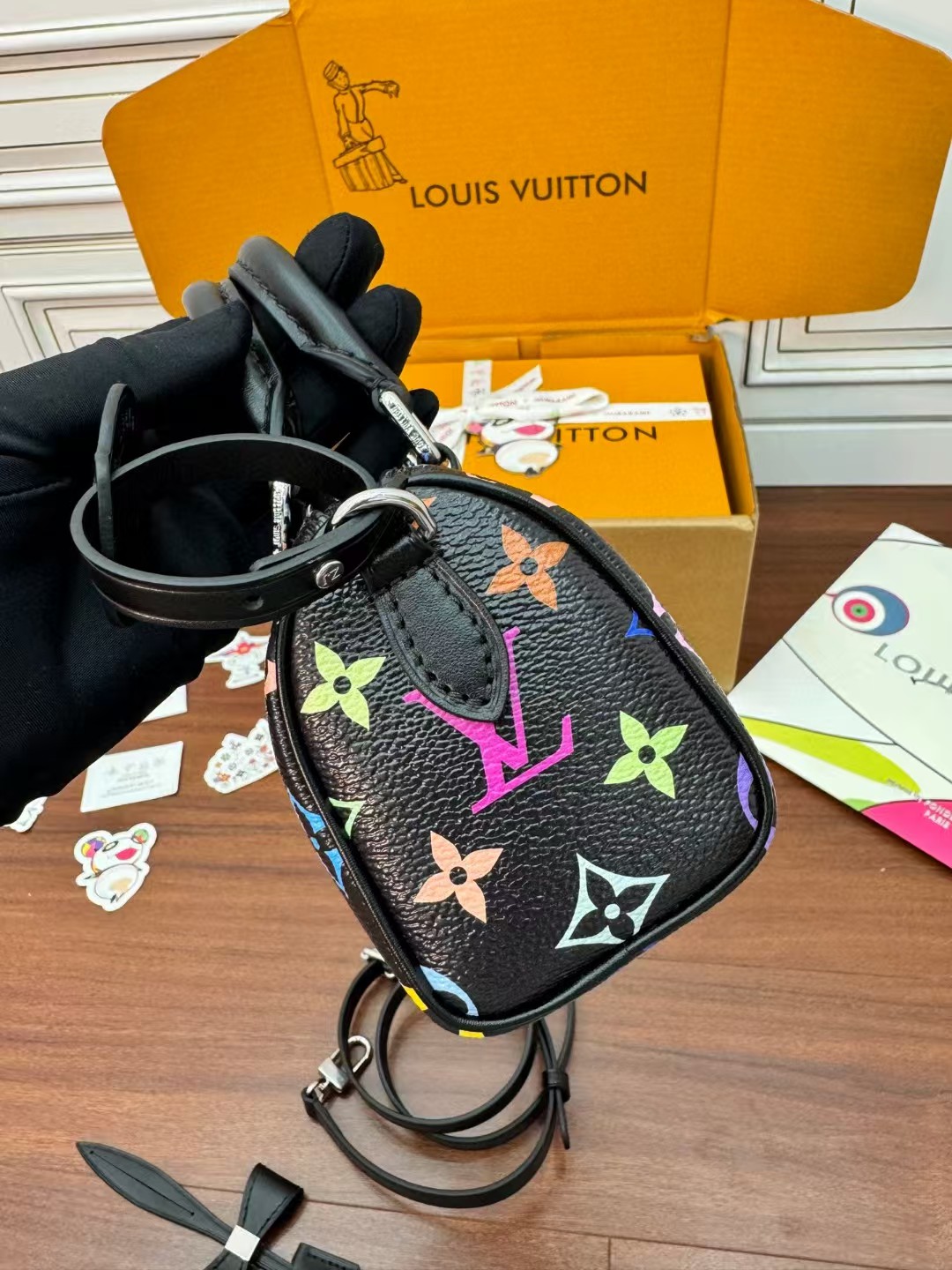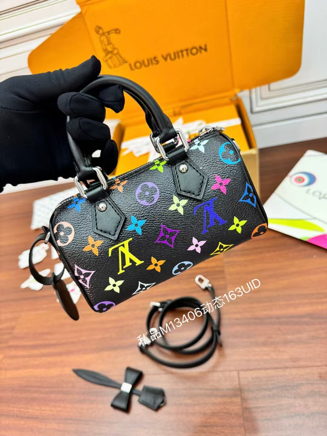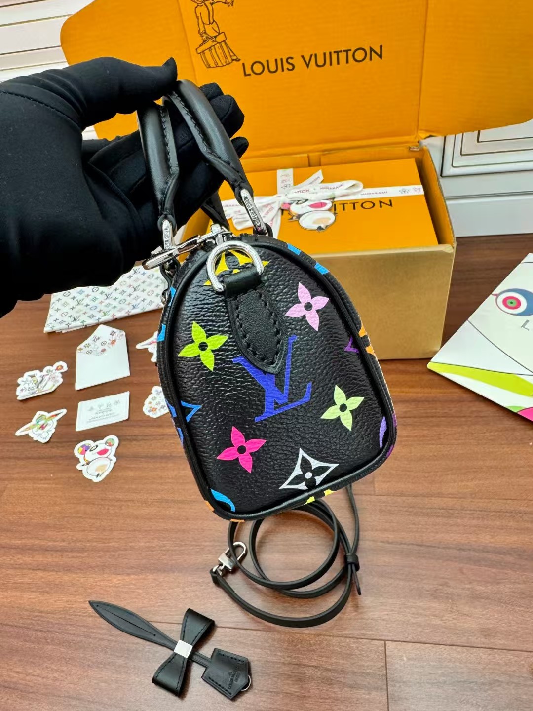 LOUIS VUITT0N x Takashi Murakami村上隆联名款 黑三彩 波士顿斜挎手提包 情侣款